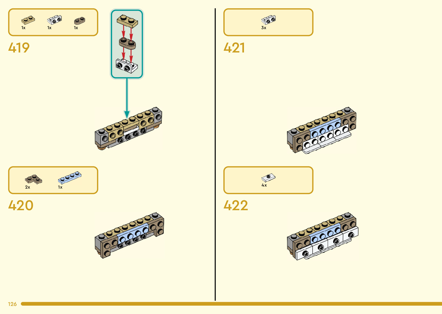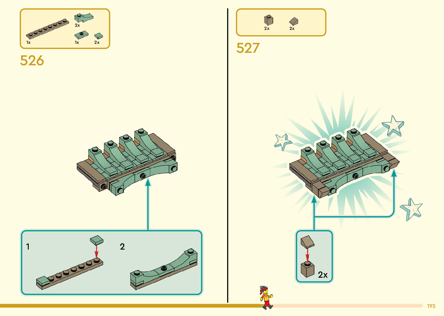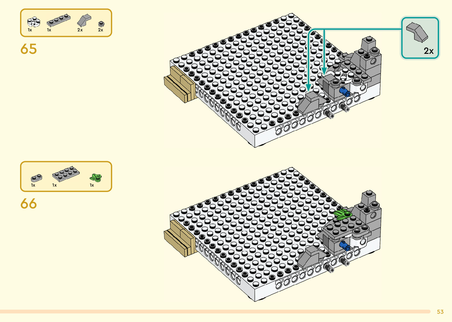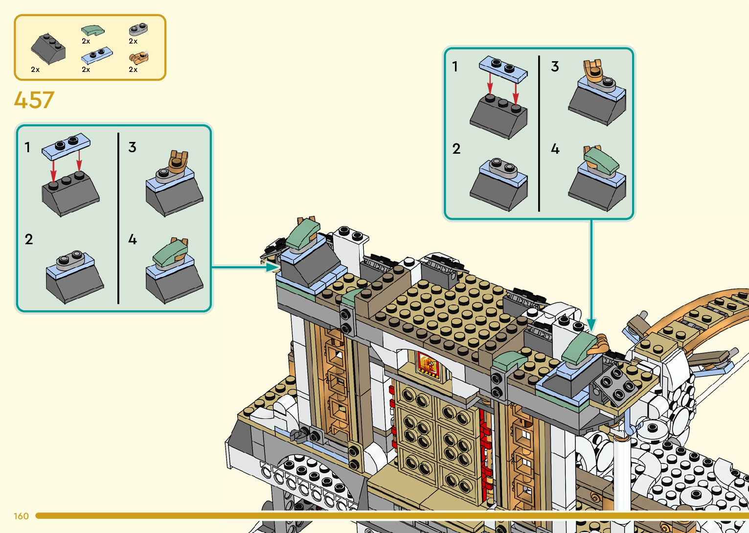 The assembly guide is prepared in a very understandable way for children and adult LEGO enthusiasts. A total of 452 picture galleries are shown, explaining the step-by-step construction stages for 2 different structures.