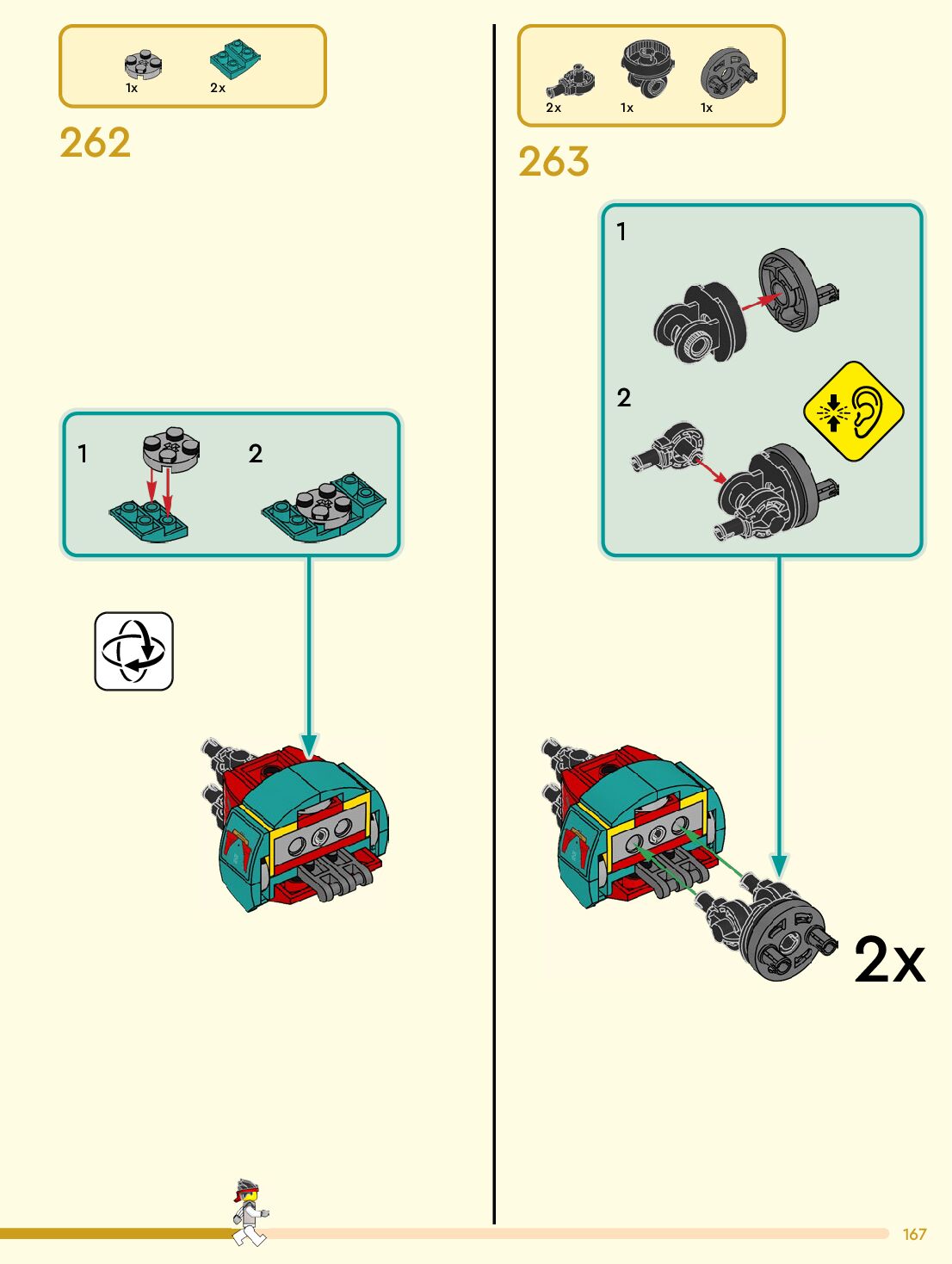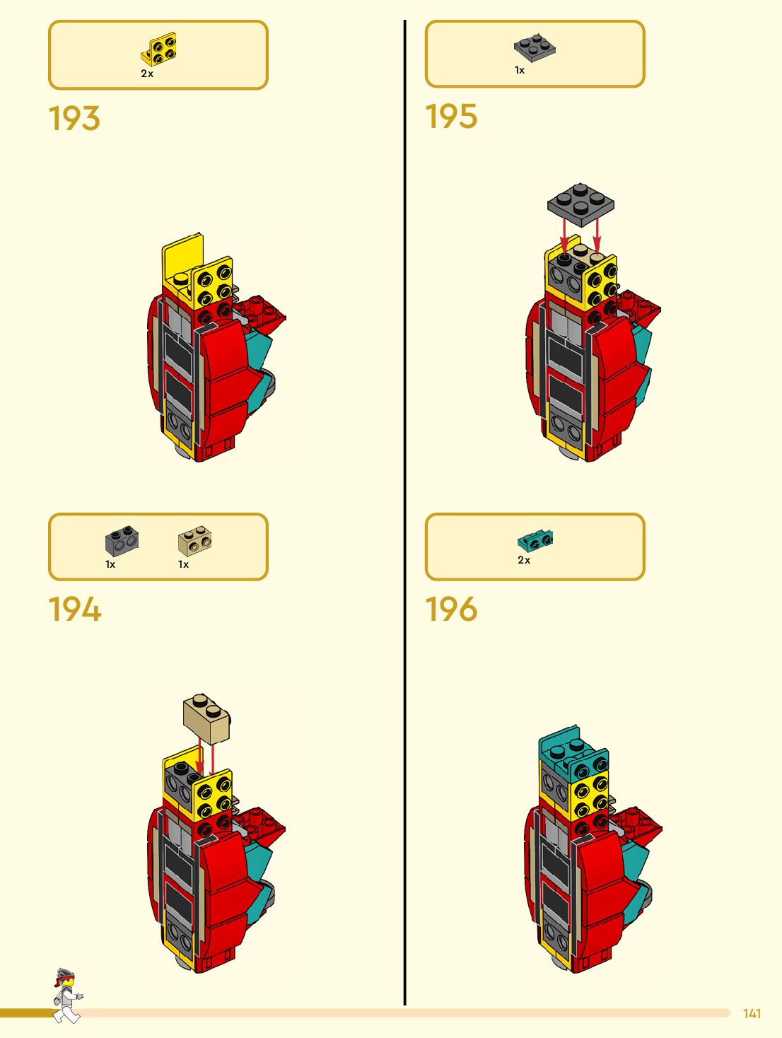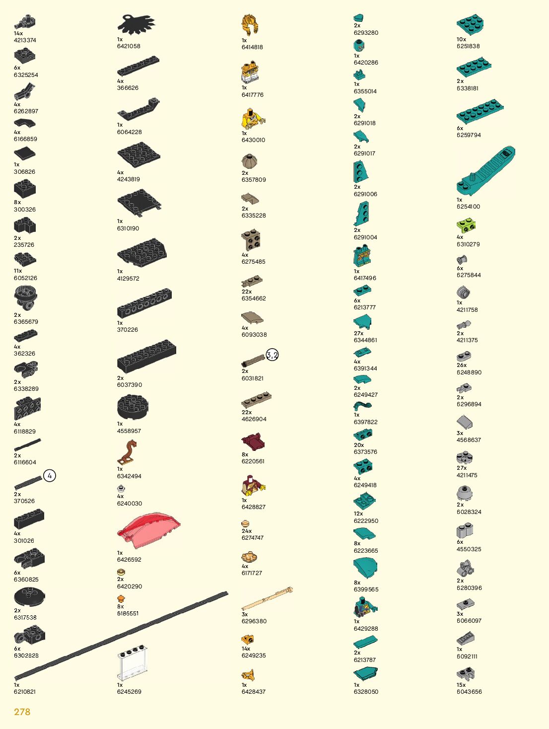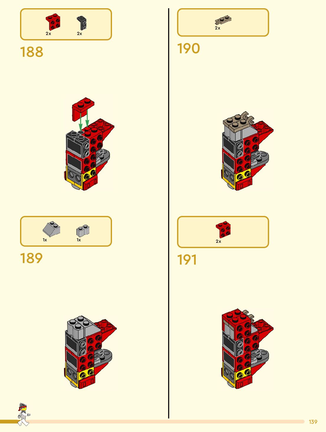 The assembly guide is prepared in a very understandable way for children and adult LEGO enthusiasts. A total of 280 picture galleries are shown, explaining the step-by-step construction stages for 1 different structures.