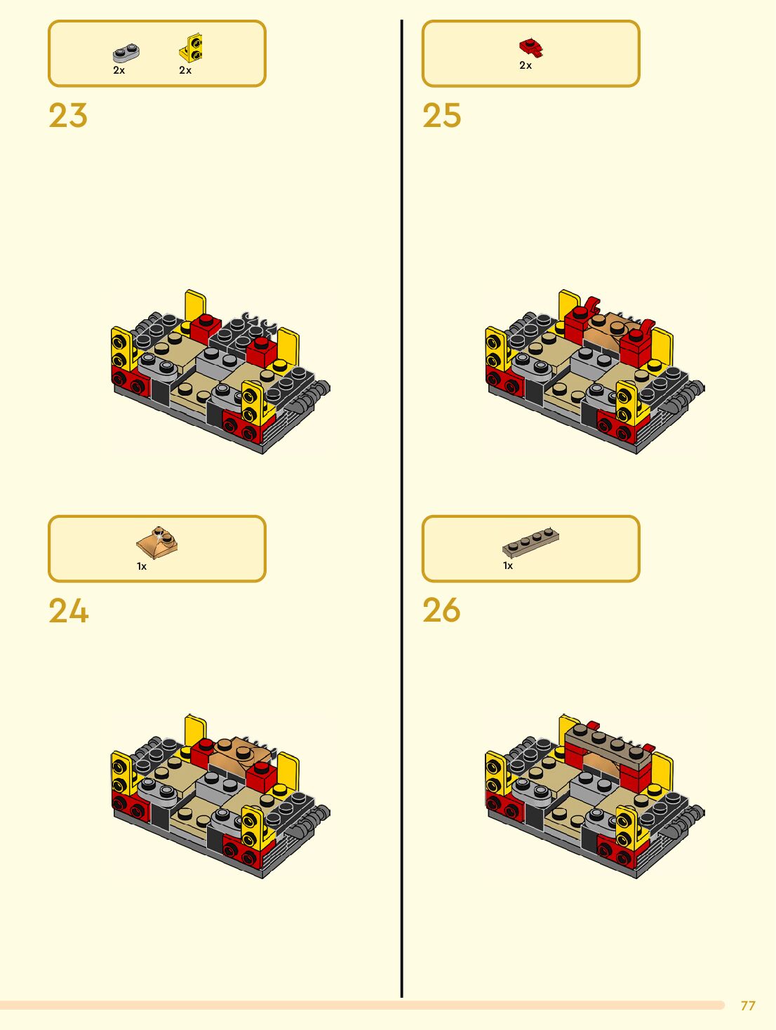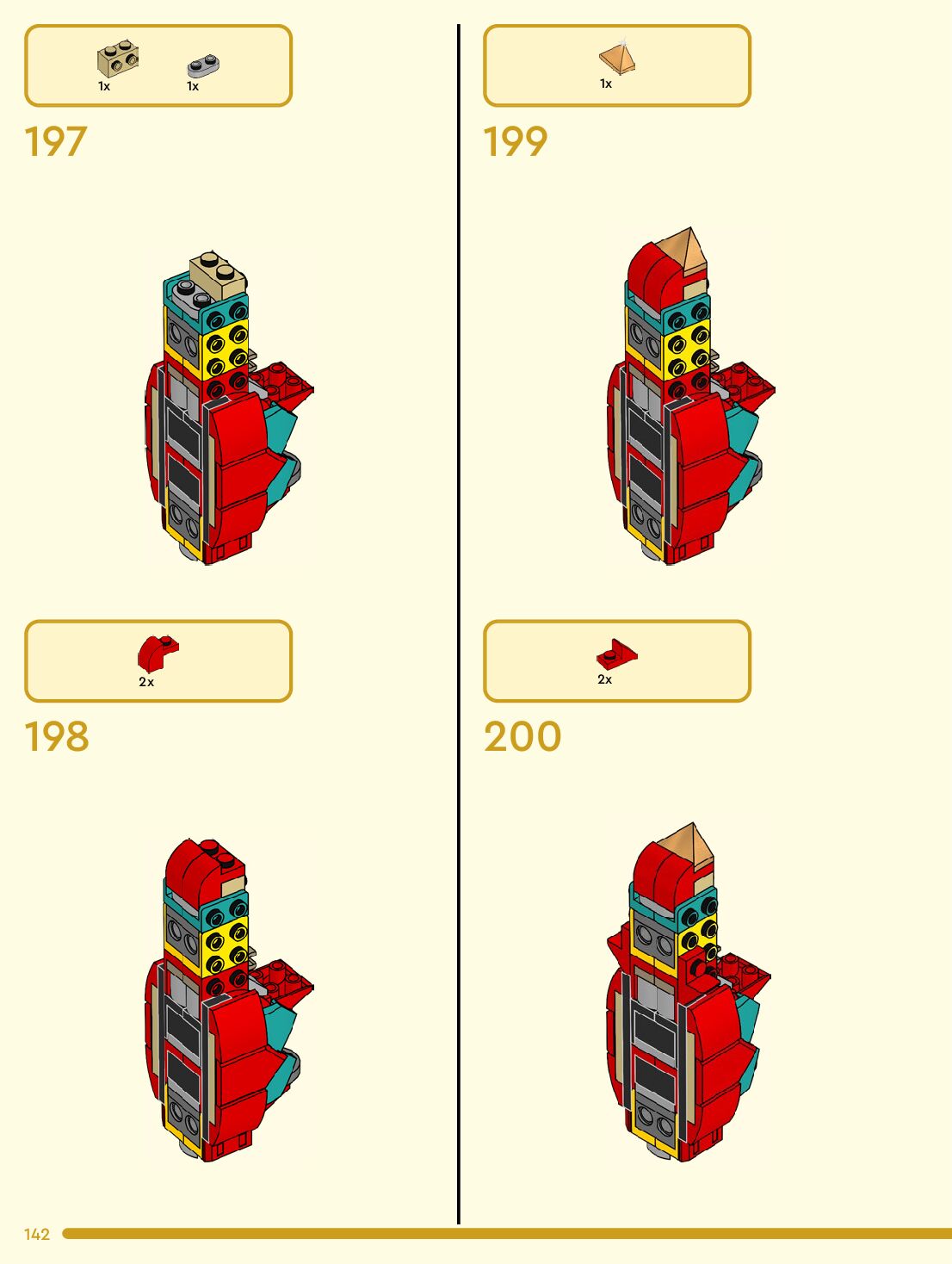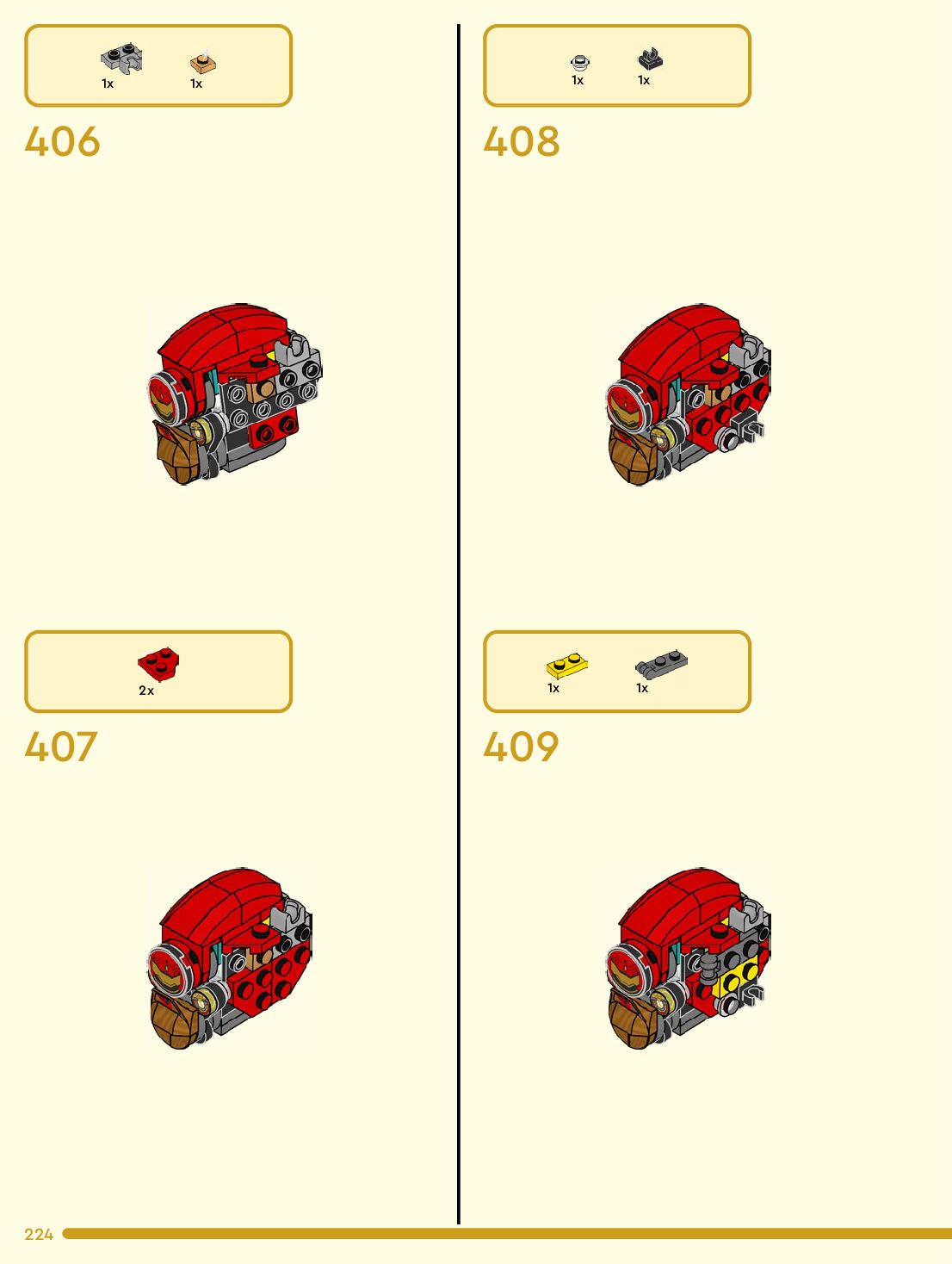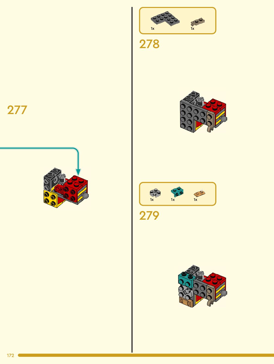 The assembly guide is prepared in a very understandable way for children and adult LEGO enthusiasts. A total of 280 picture galleries are shown, explaining the step-by-step construction stages for 1 different structures.