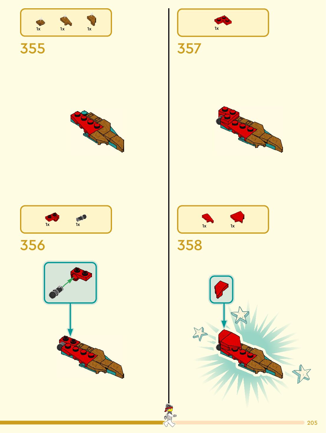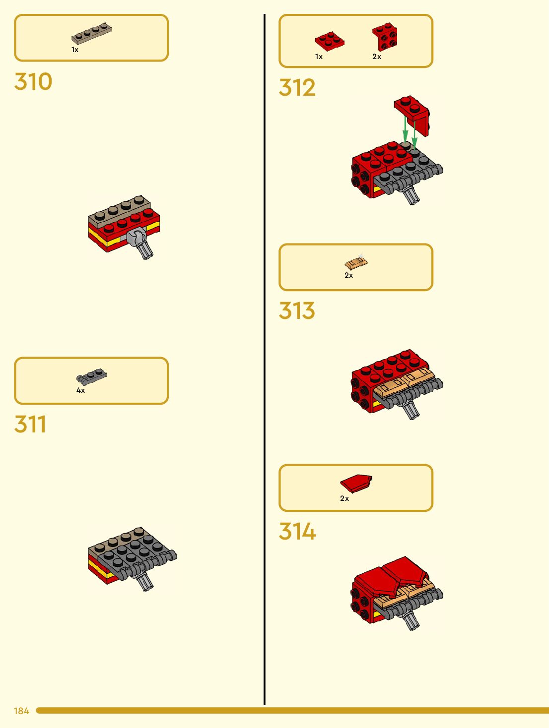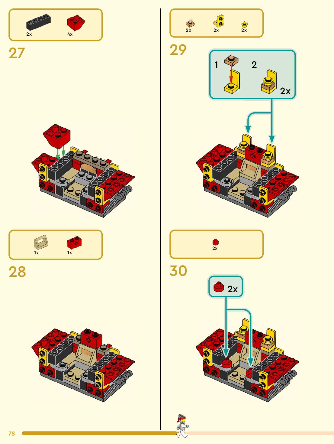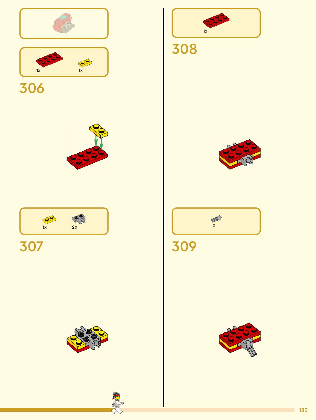 The assembly guide is prepared in a very understandable way for children and adult LEGO enthusiasts. A total of 280 picture galleries are shown, explaining the step-by-step construction stages for 1 different structures.