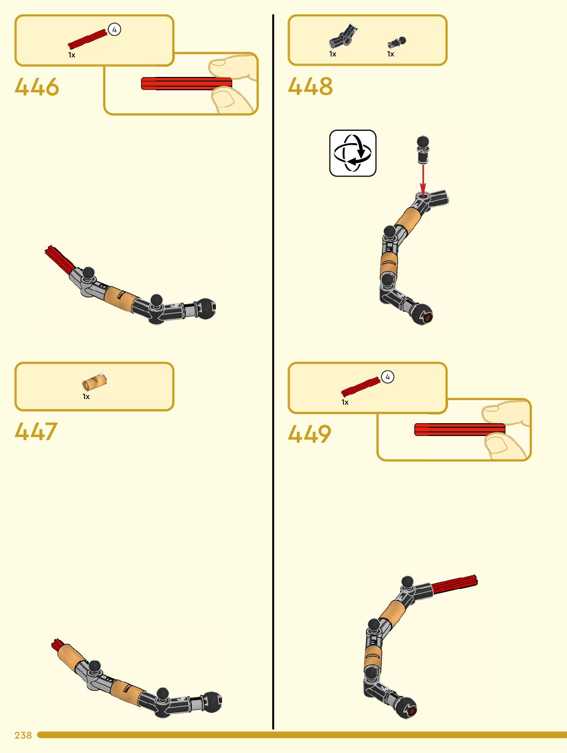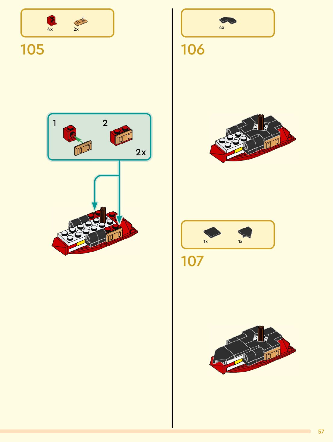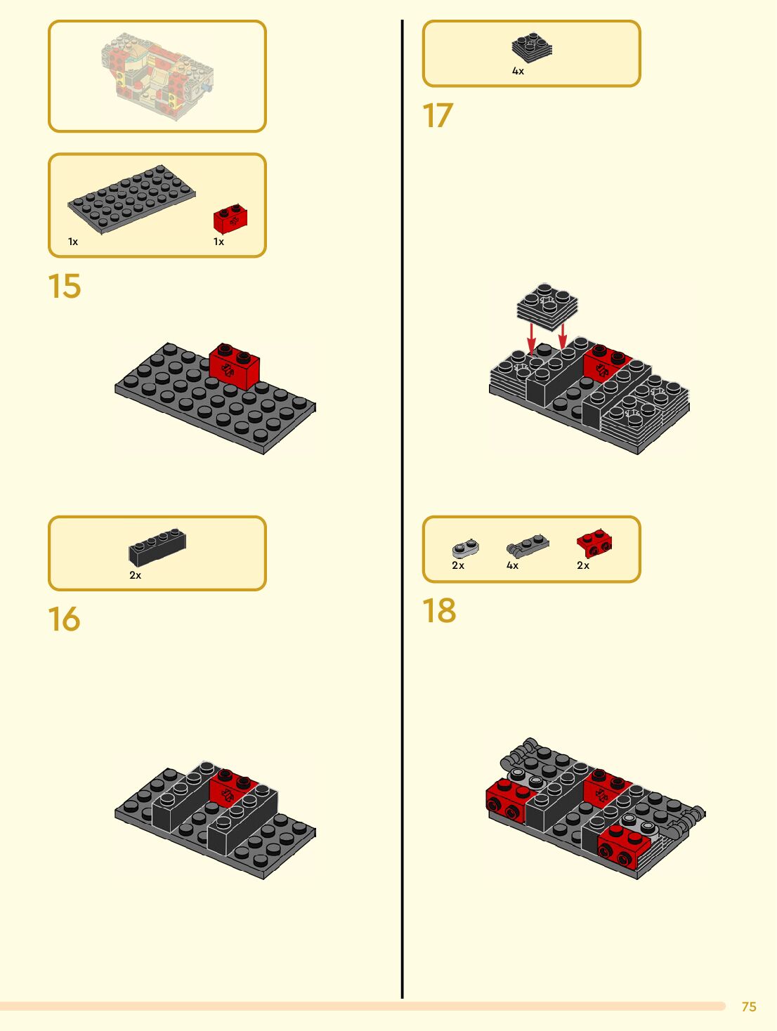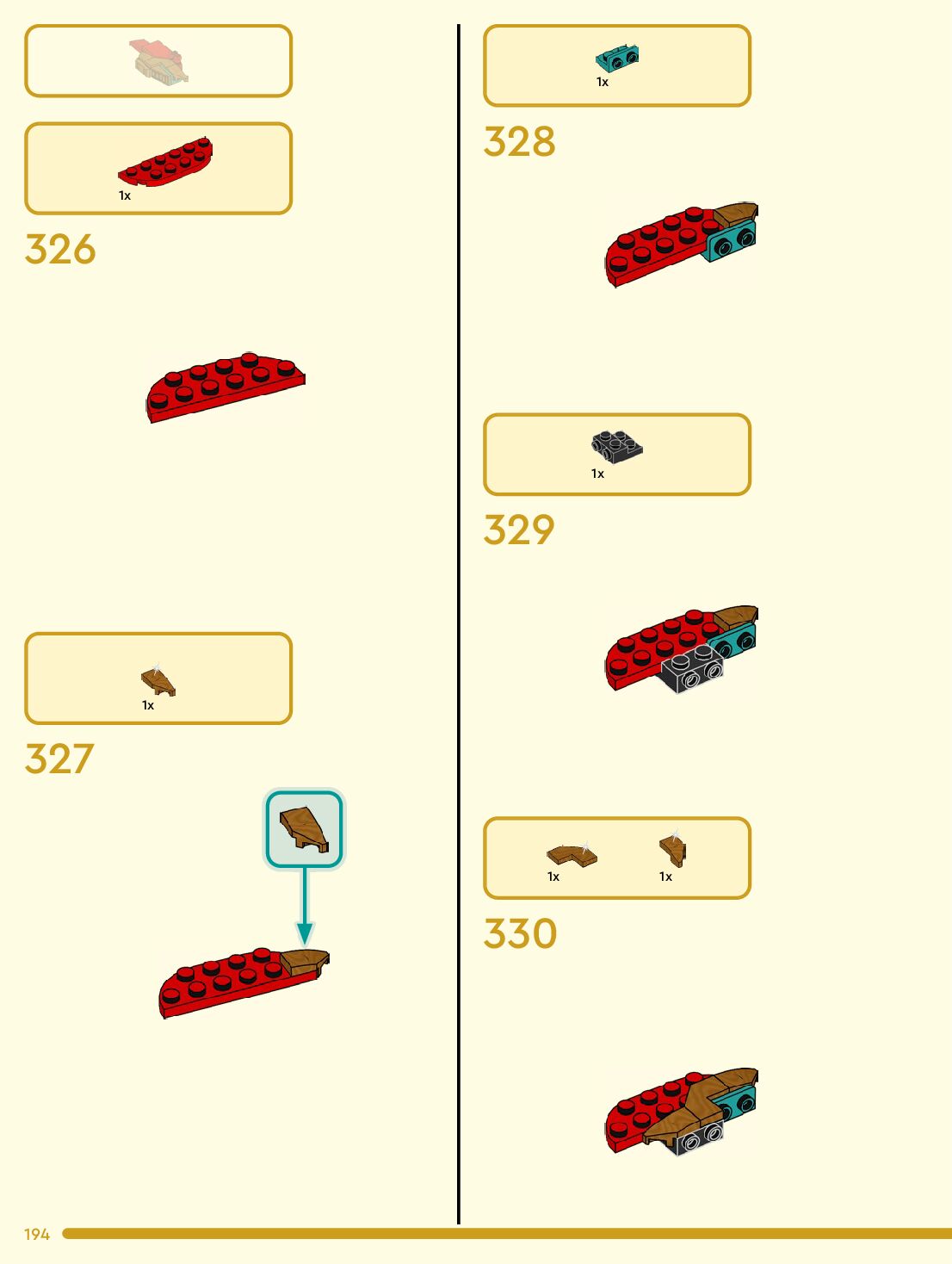 The assembly guide is prepared in a very understandable way for children and adult LEGO enthusiasts. A total of 280 picture galleries are shown, explaining the step-by-step construction stages for 1 different structures.