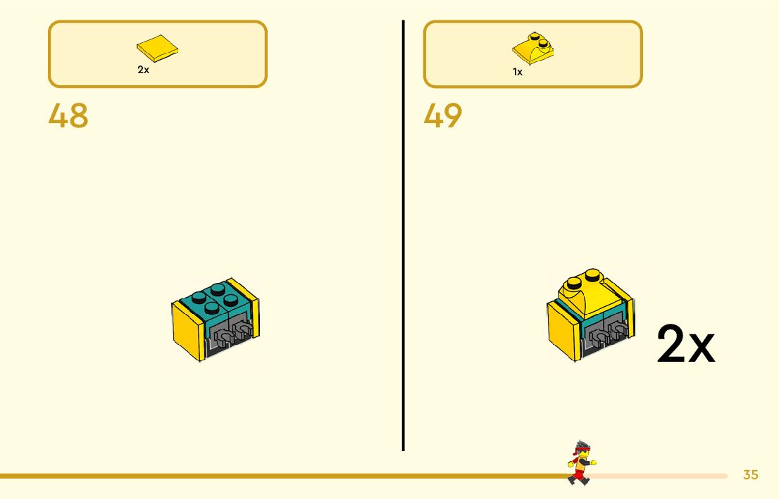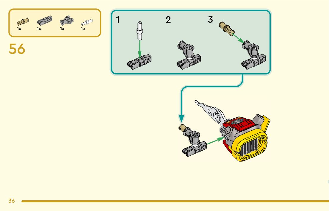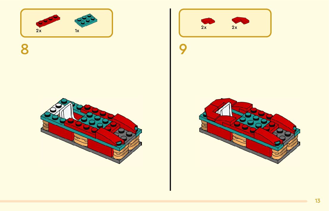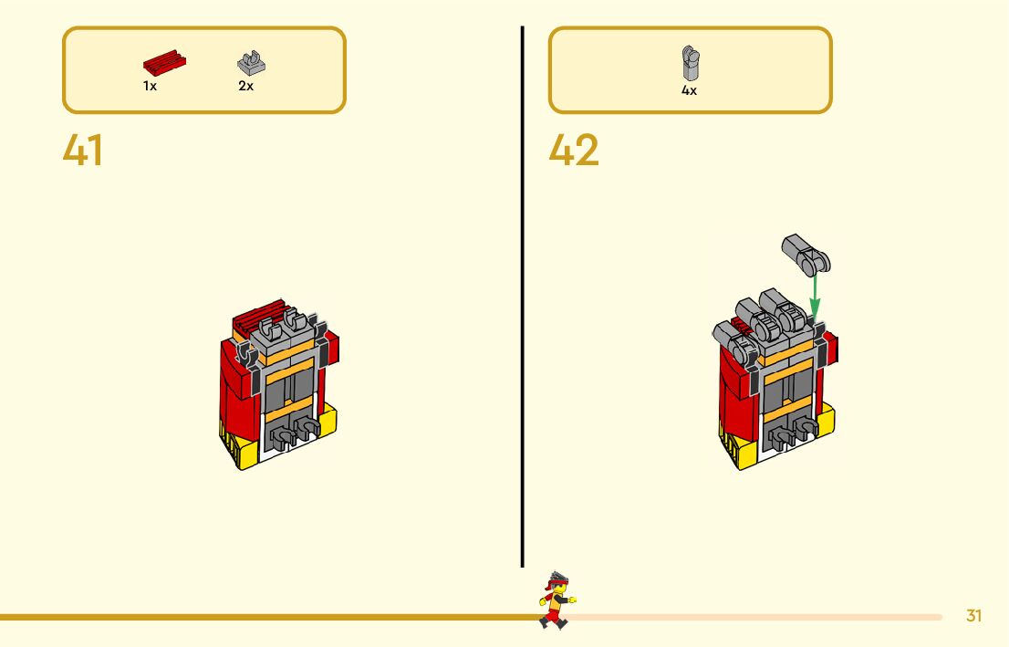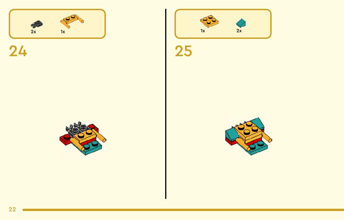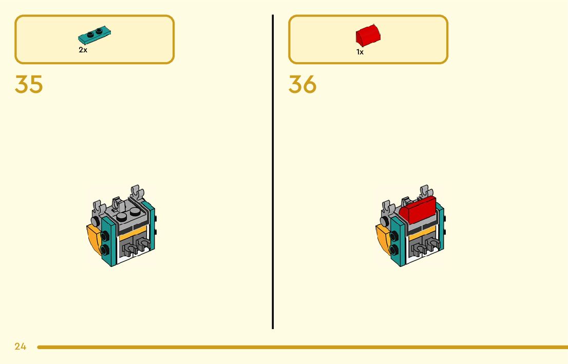 The assembly guide is prepared in a very understandable way for children and adult LEGO enthusiasts. A total of 144 picture galleries are shown, explaining the step-by-step construction stages for 3 different structures.