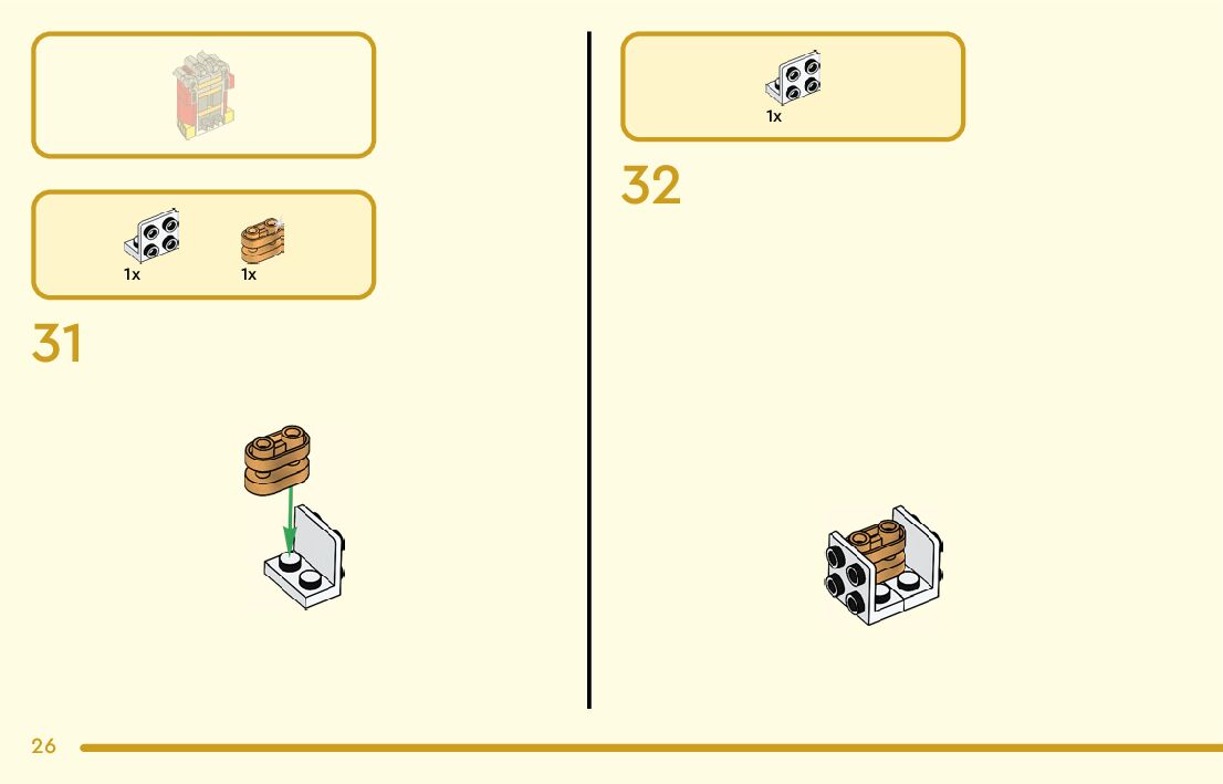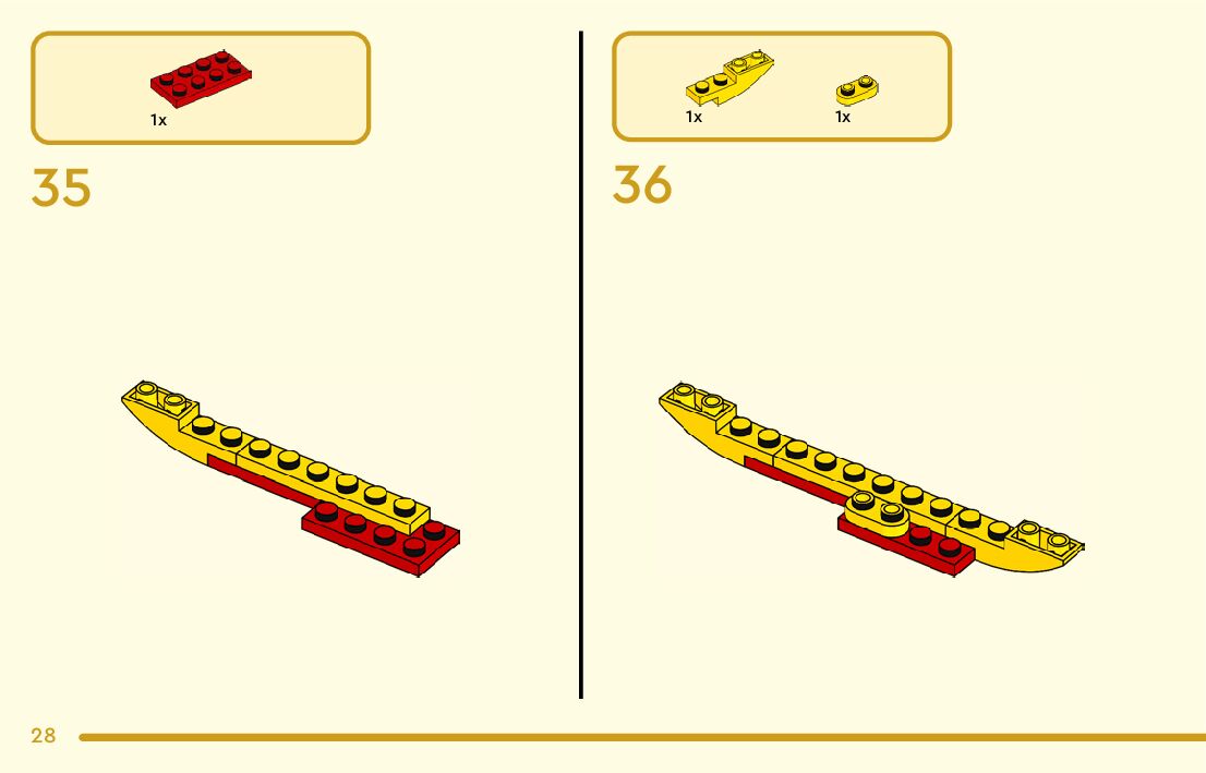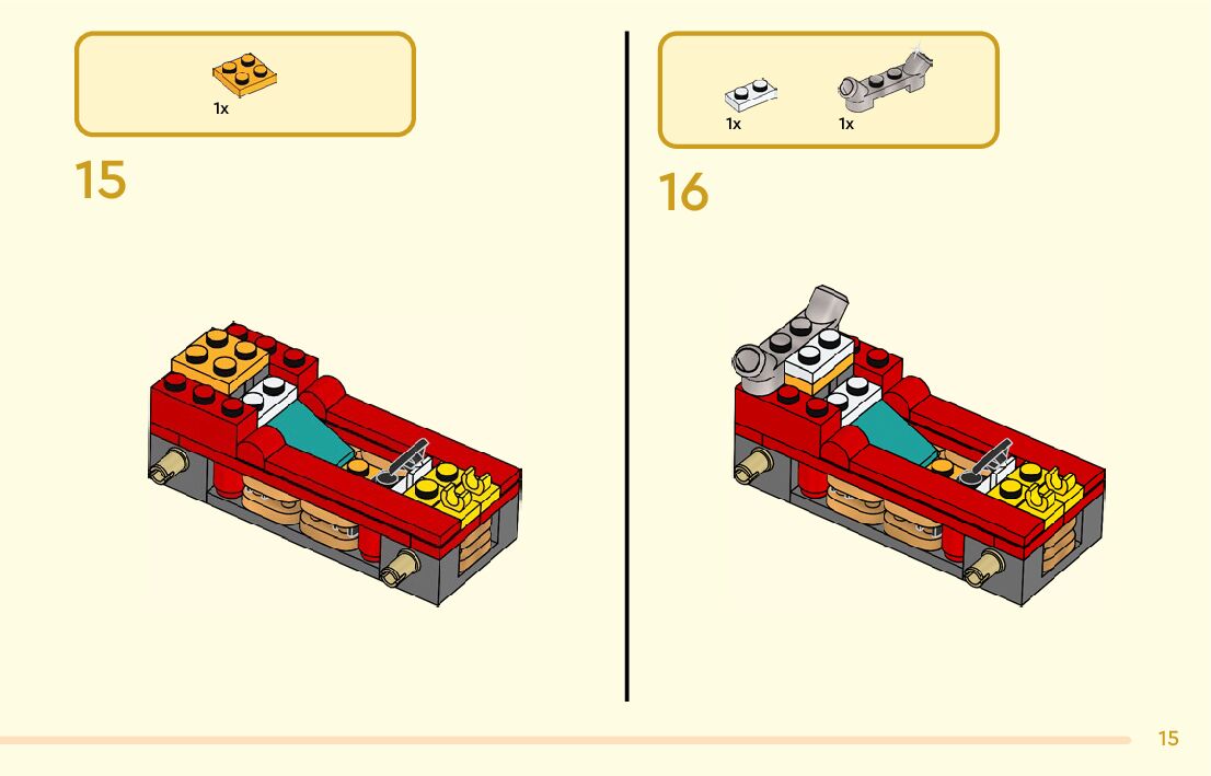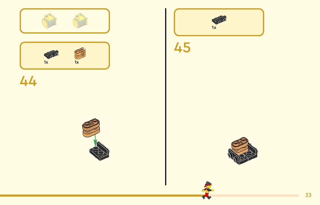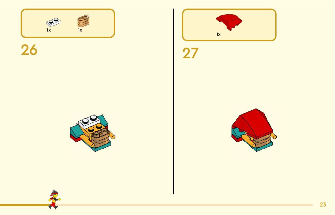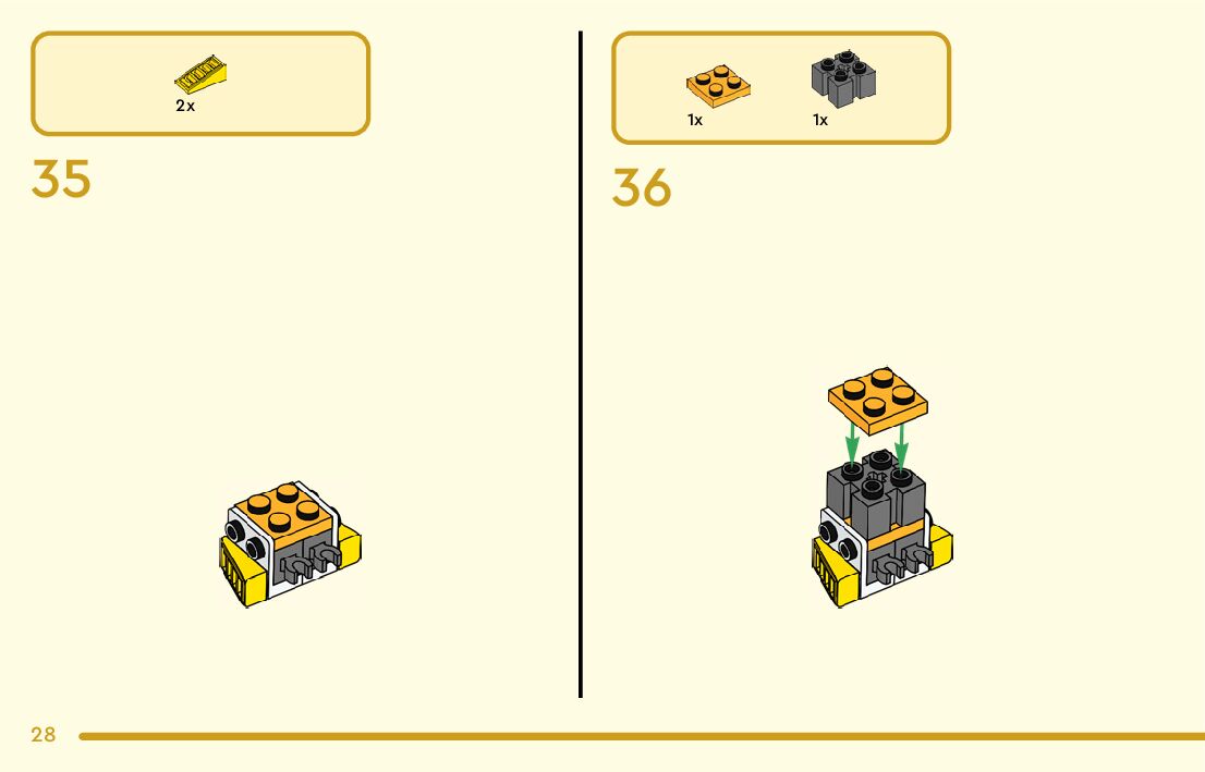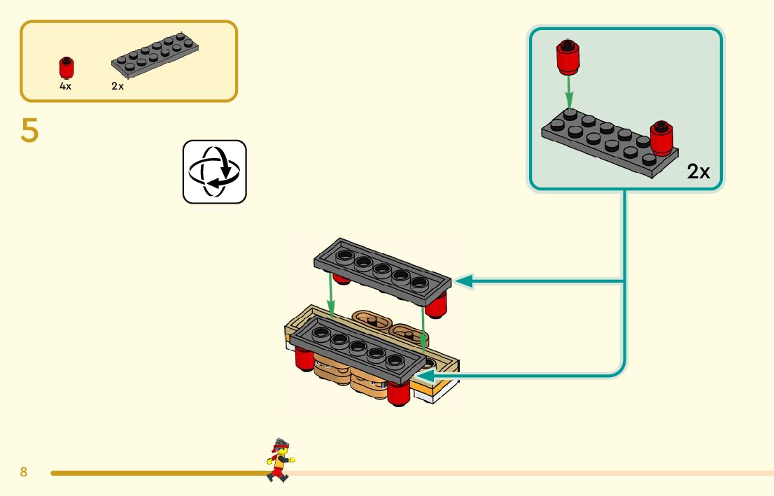 The assembly guide is prepared in a very understandable way for children and adult LEGO enthusiasts. A total of 144 picture galleries are shown, explaining the step-by-step construction stages for 3 different structures.