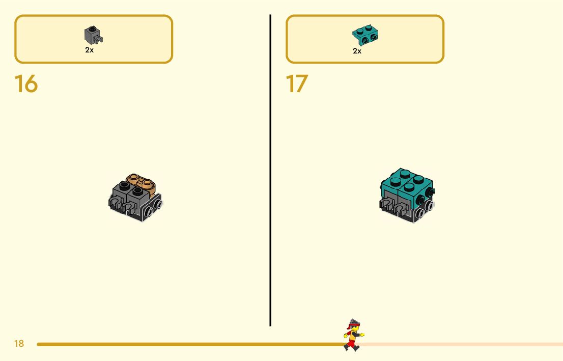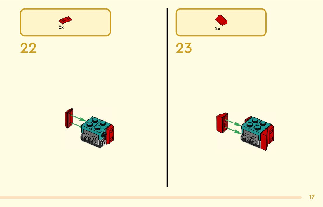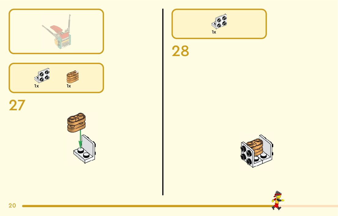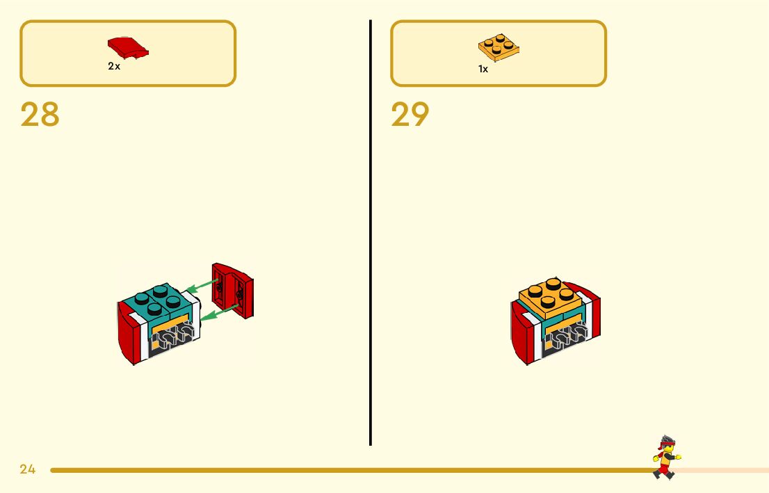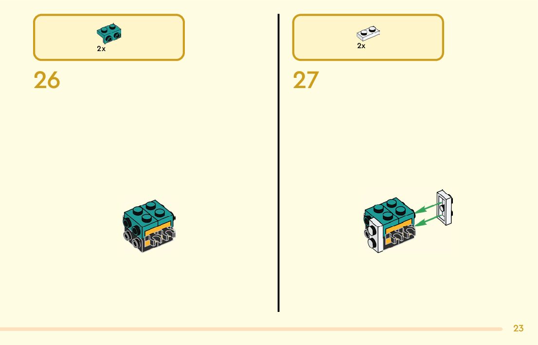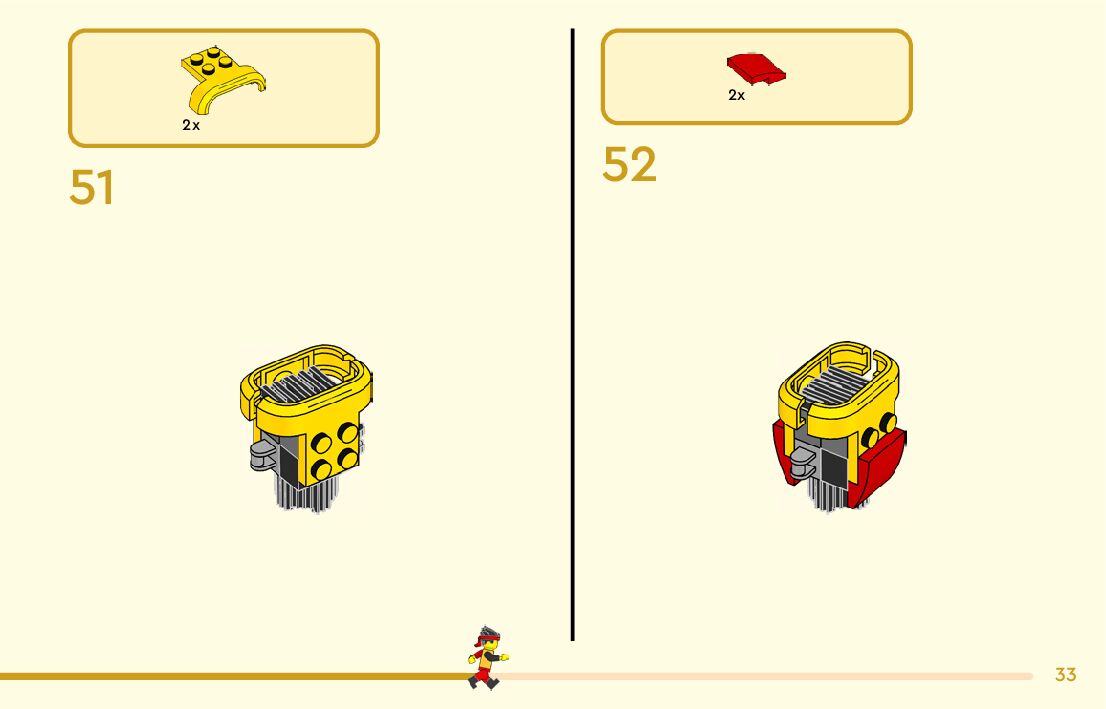 The assembly guide is prepared in a very understandable way for children and adult LEGO enthusiasts. A total of 144 picture galleries are shown, explaining the step-by-step construction stages for 3 different structures.