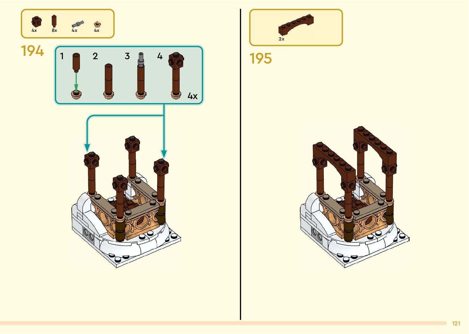 The assembly guide is prepared in a very understandable way for children and adult LEGO enthusiasts. A total of 496 picture galleries are shown, explaining the step-by-step construction stages for 2 different structures.