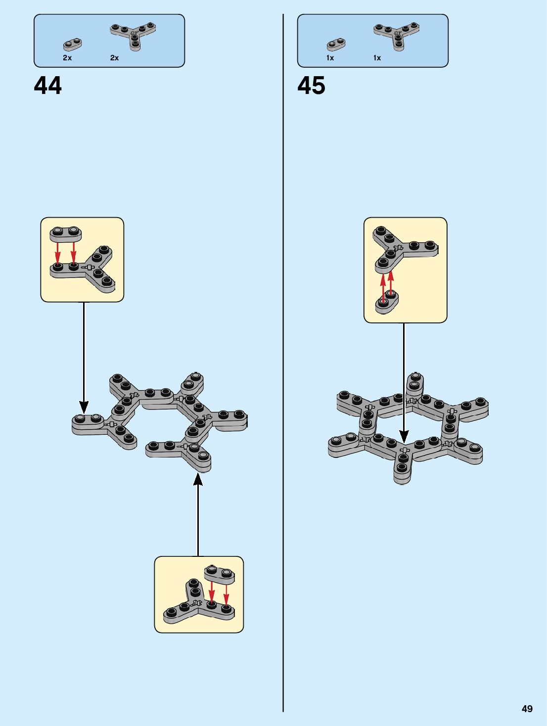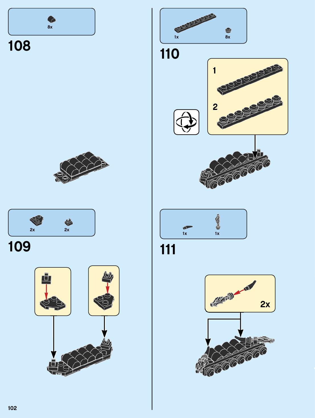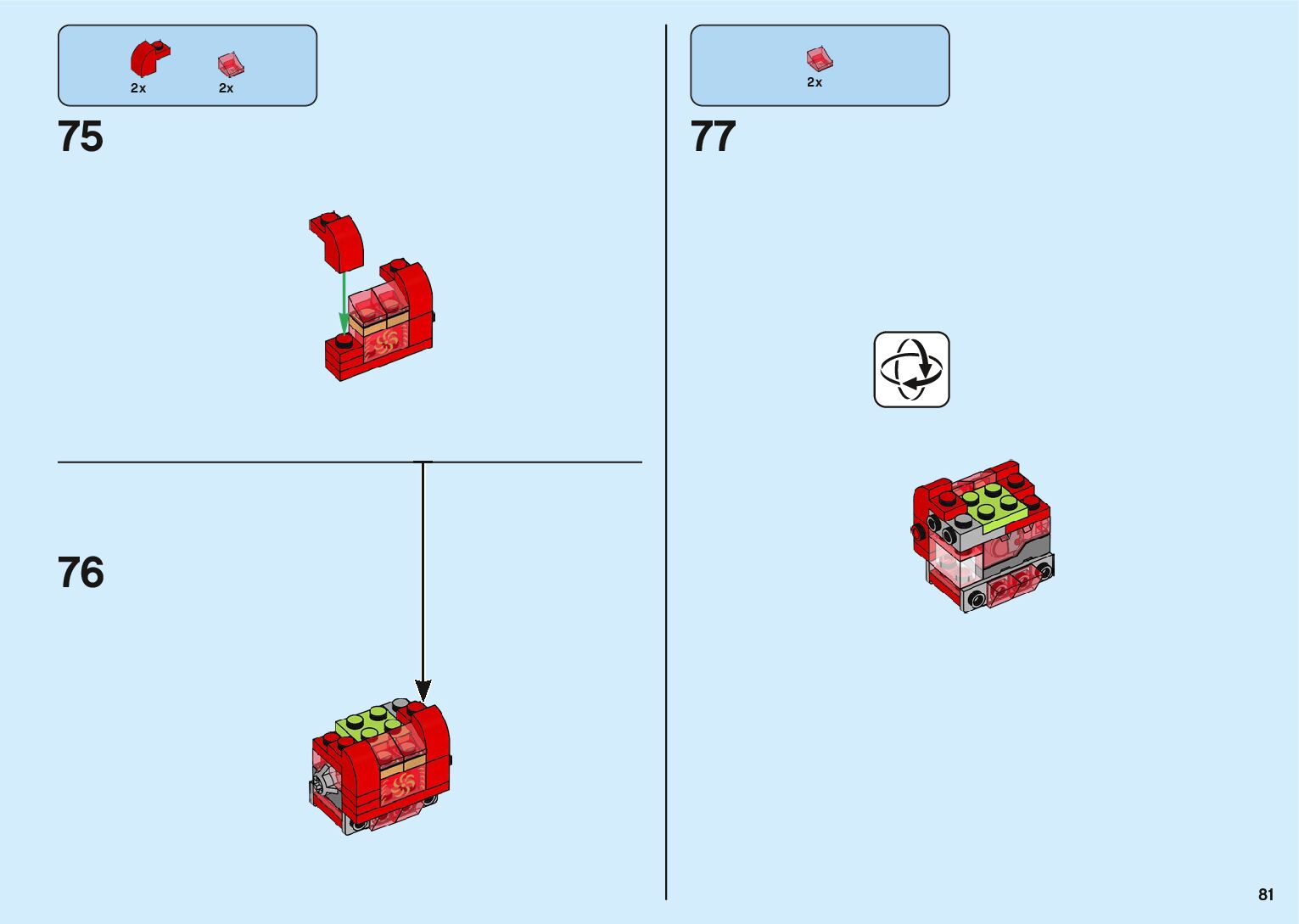The assembly guide is prepared in a very understandable way for children and adult LEGO enthusiasts. A total of 280 picture galleries are shown, explaining the step-by-step construction stages for 2 different structures.
