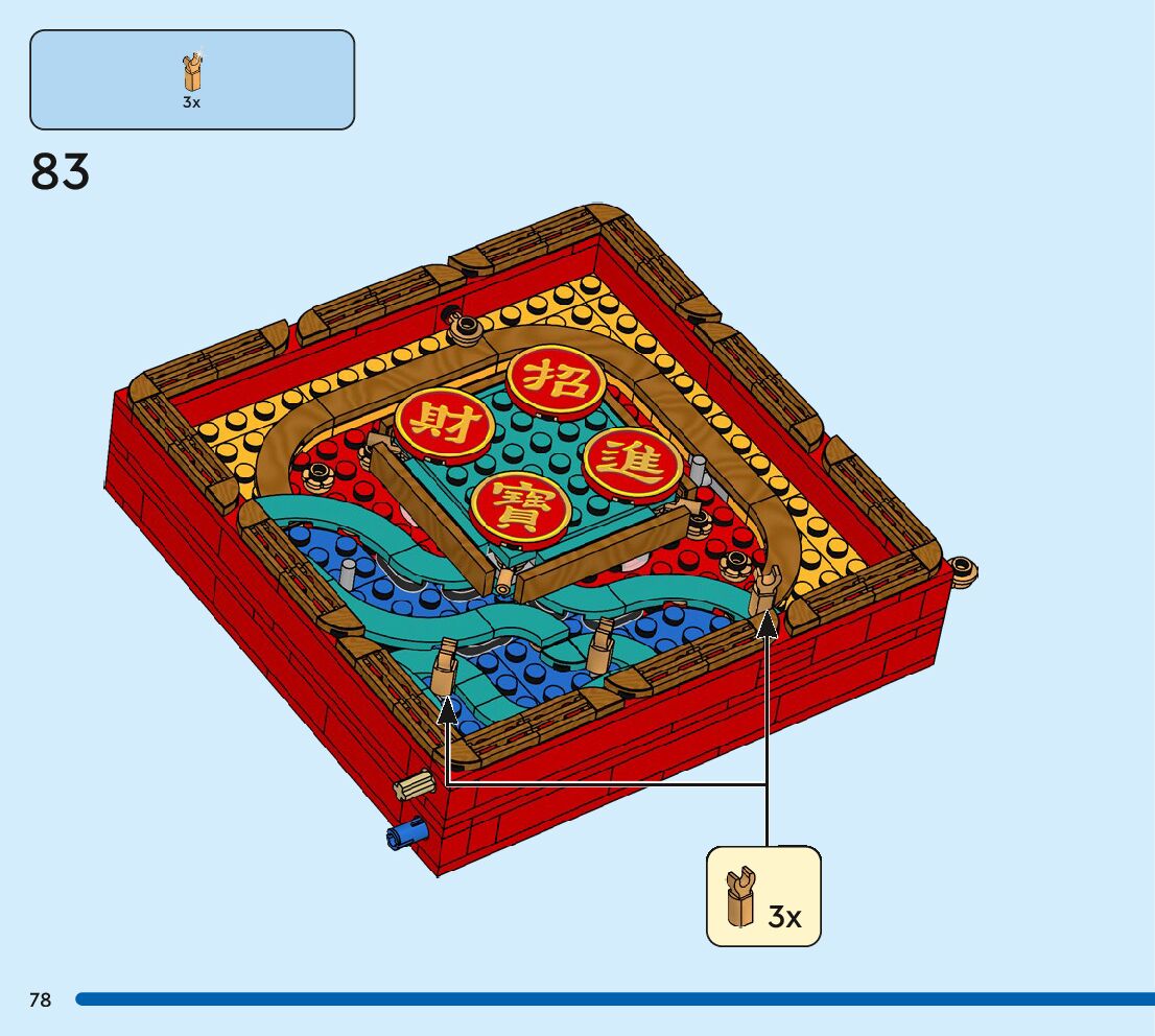This page shares information about LEGO 80110 Lunar New Year Display manual, LEGO 80110 PDF instructions, LEGO 80110 Lunar New Year Display building guide online, How to build 80110 Lunar New Year Display LEGO.