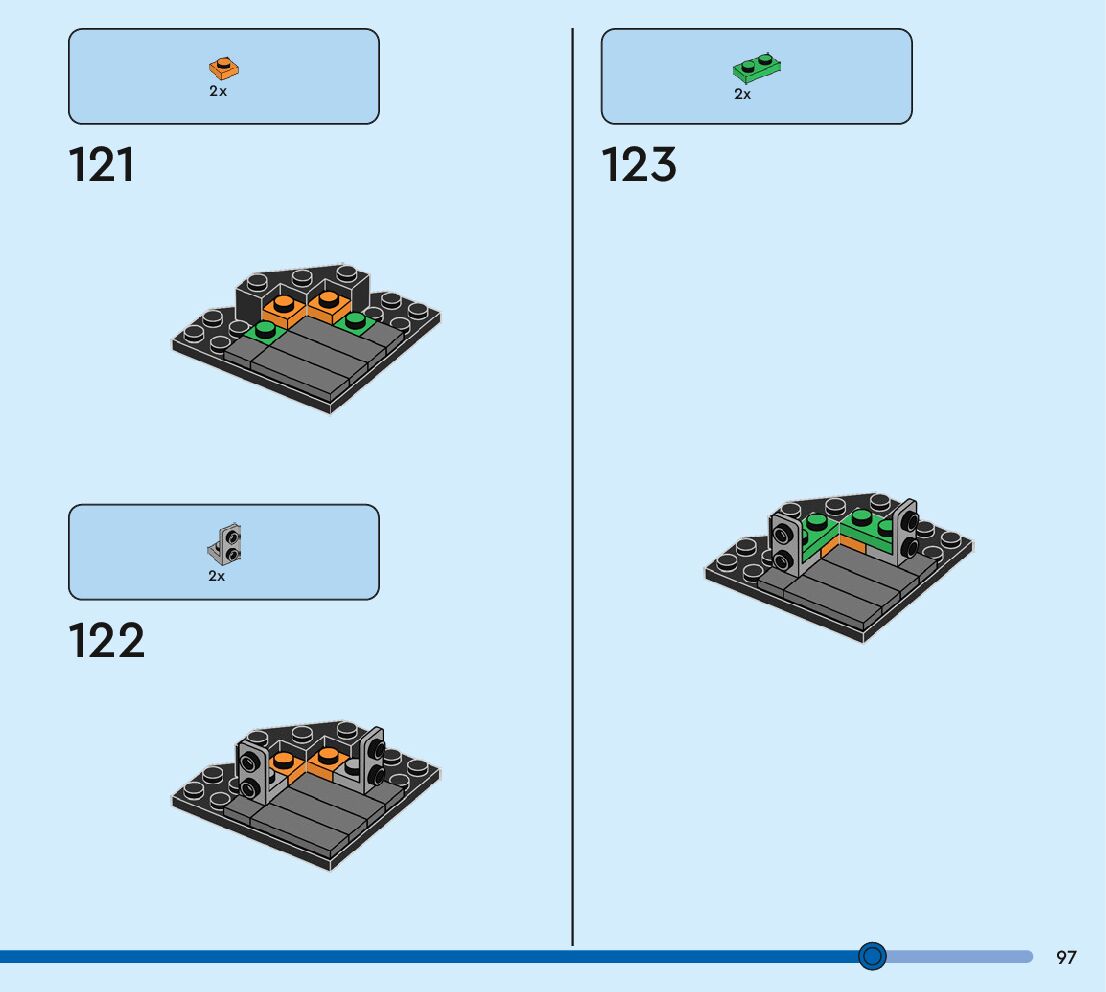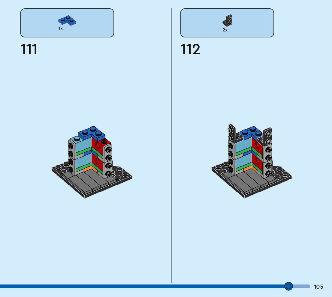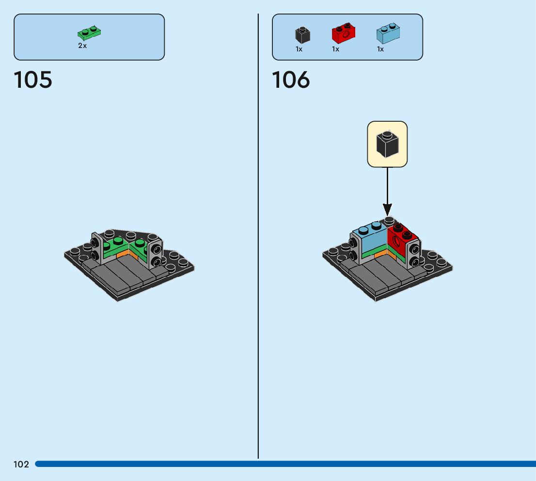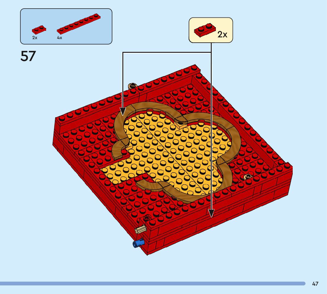 The assembly guide is prepared in a very understandable way for children and adult LEGO enthusiasts. A total of 2016 picture galleries are shown, explaining the step-by-step construction stages for 2 different structures.