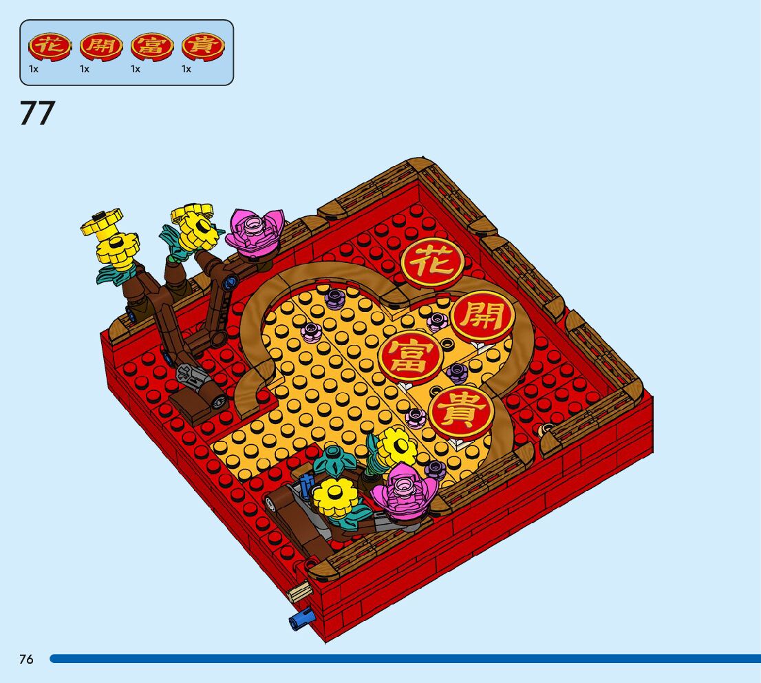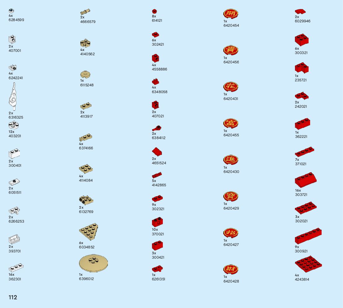 On this page you can find the original construction manual for the LEGO 80110 set. With the assembly manual you can easily learn how to build the 80110 Lunar New Year Display step by step. The set was released in 2022.