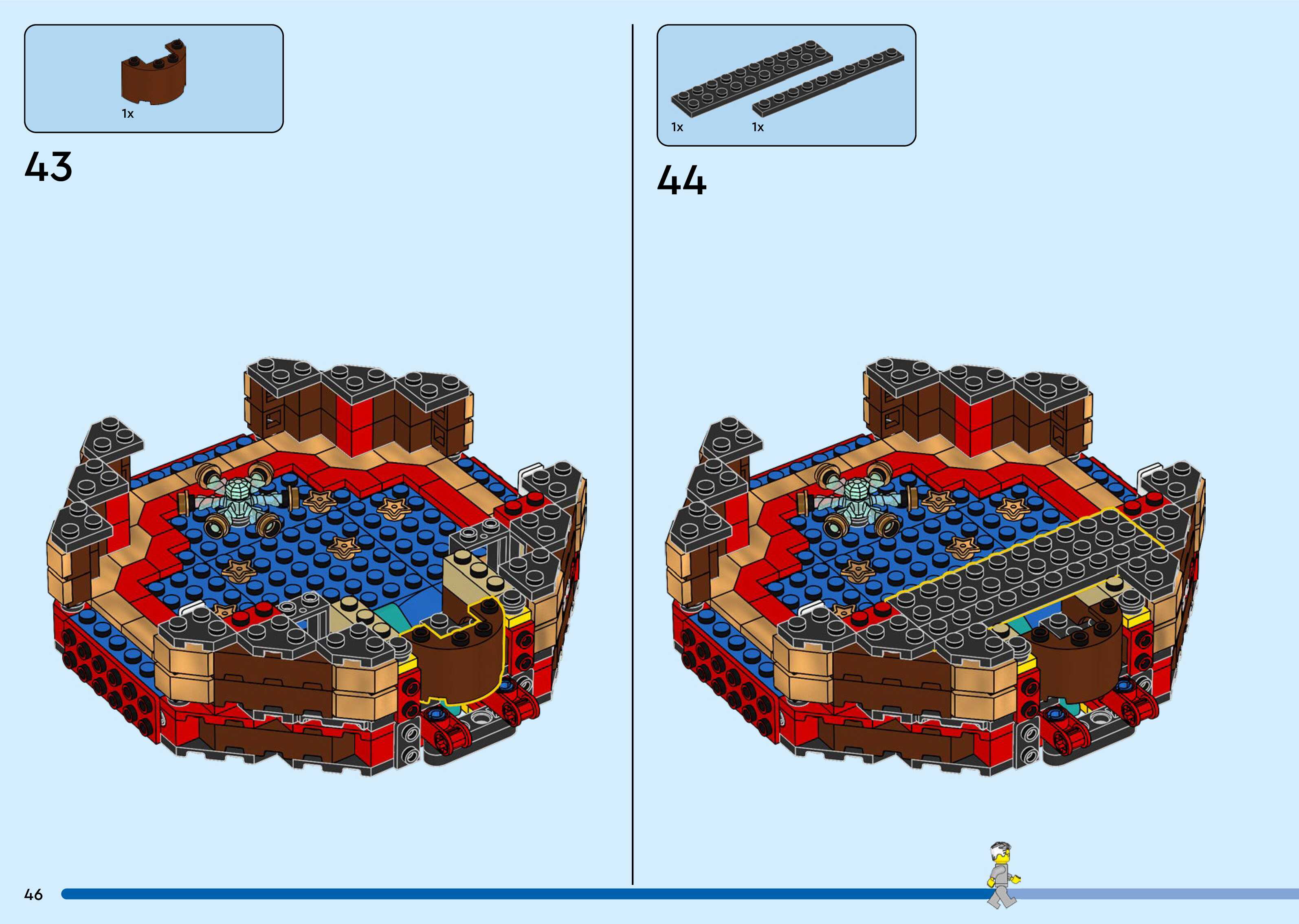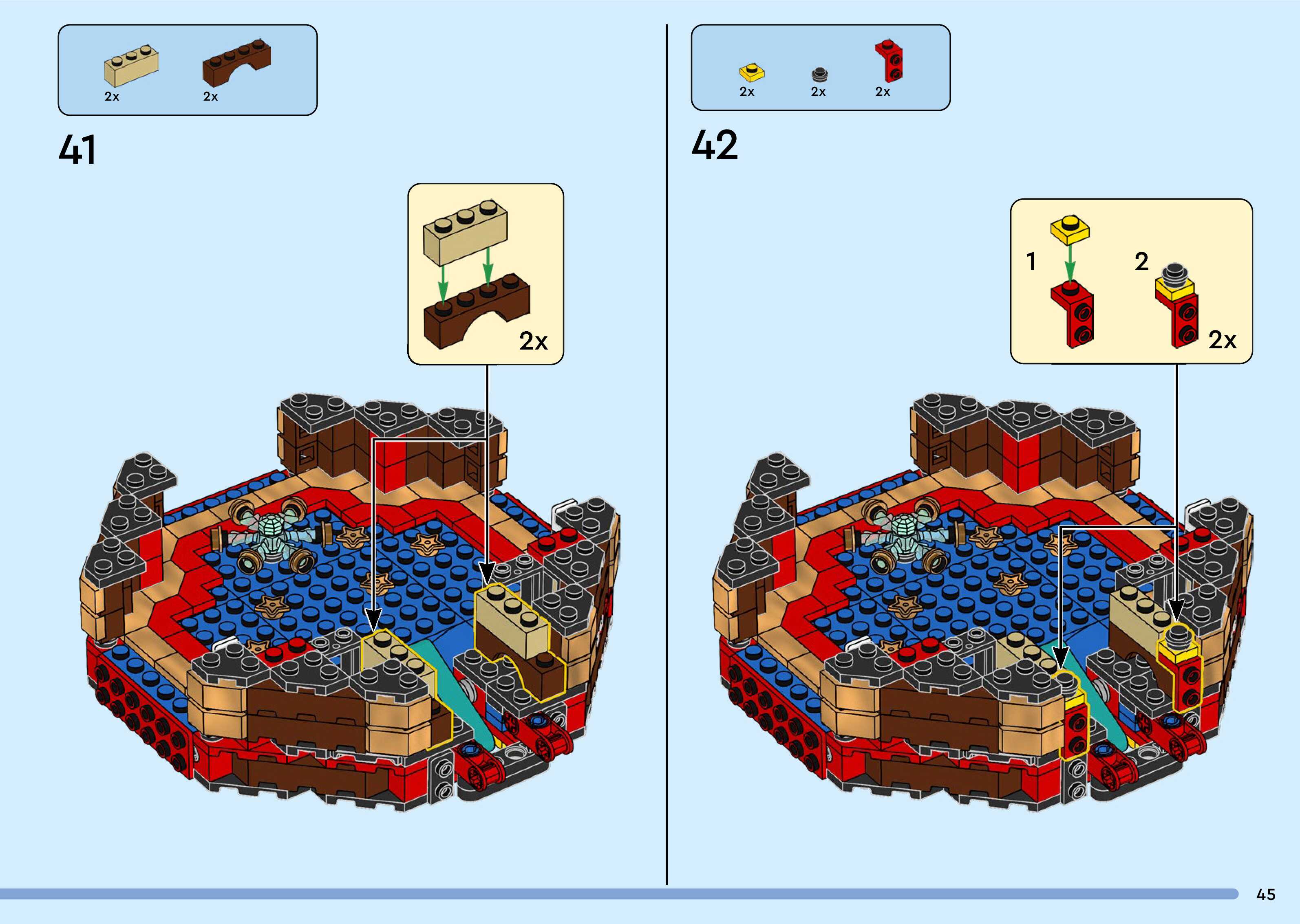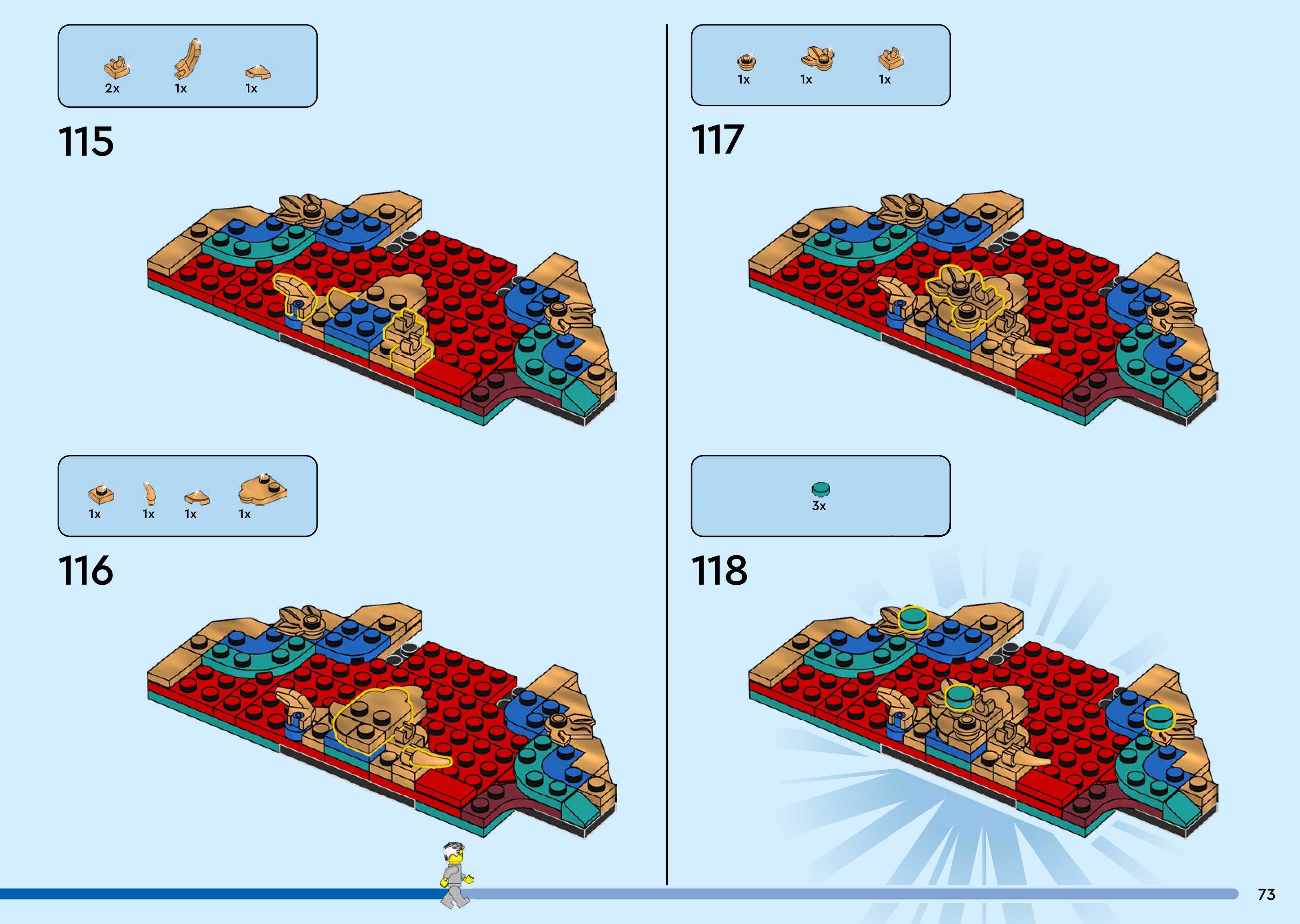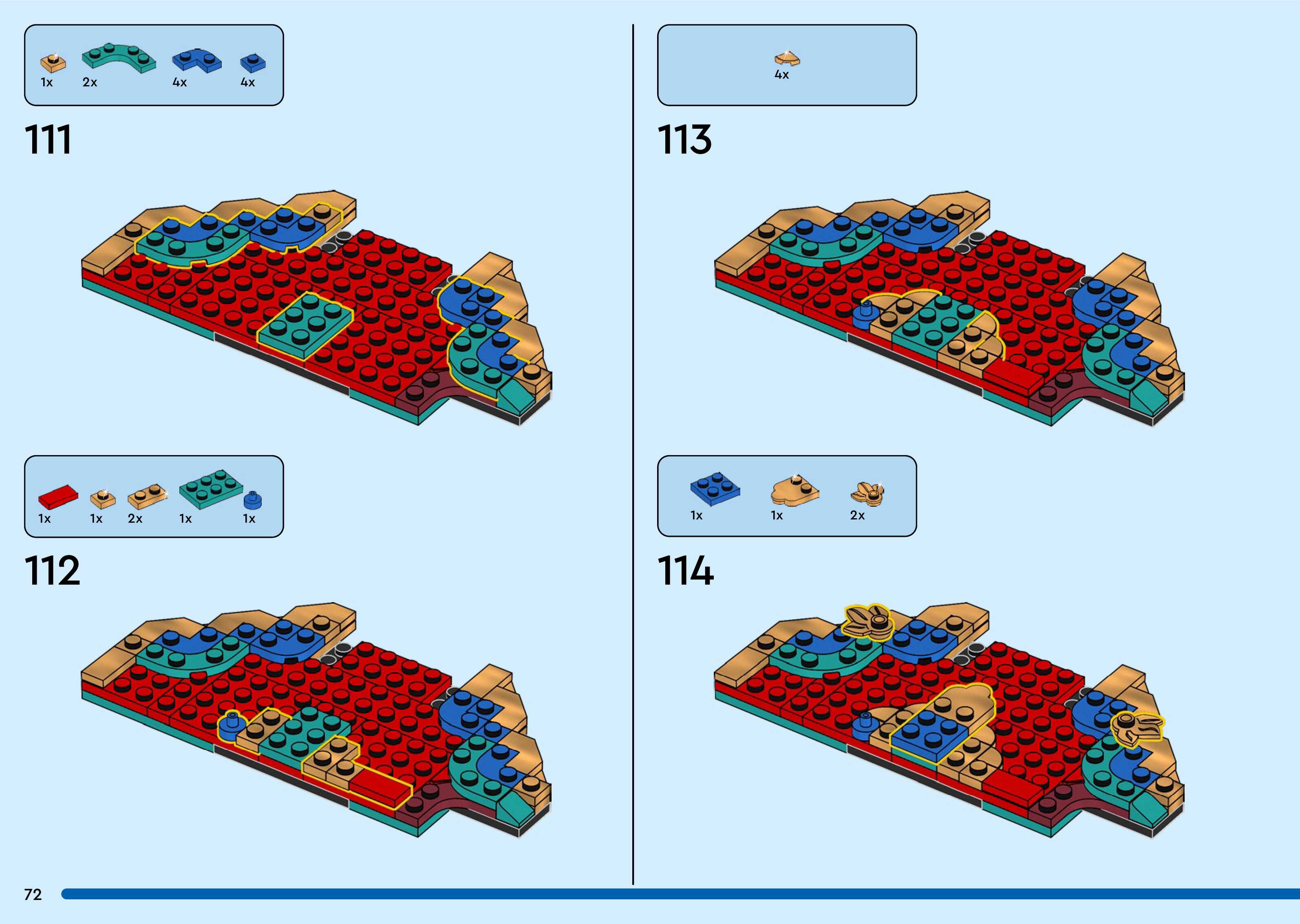 The assembly guide is prepared in a very understandable way for children and adult LEGO enthusiasts. A total of 112 picture galleries are shown, explaining the step-by-step construction stages for 2 different structures.