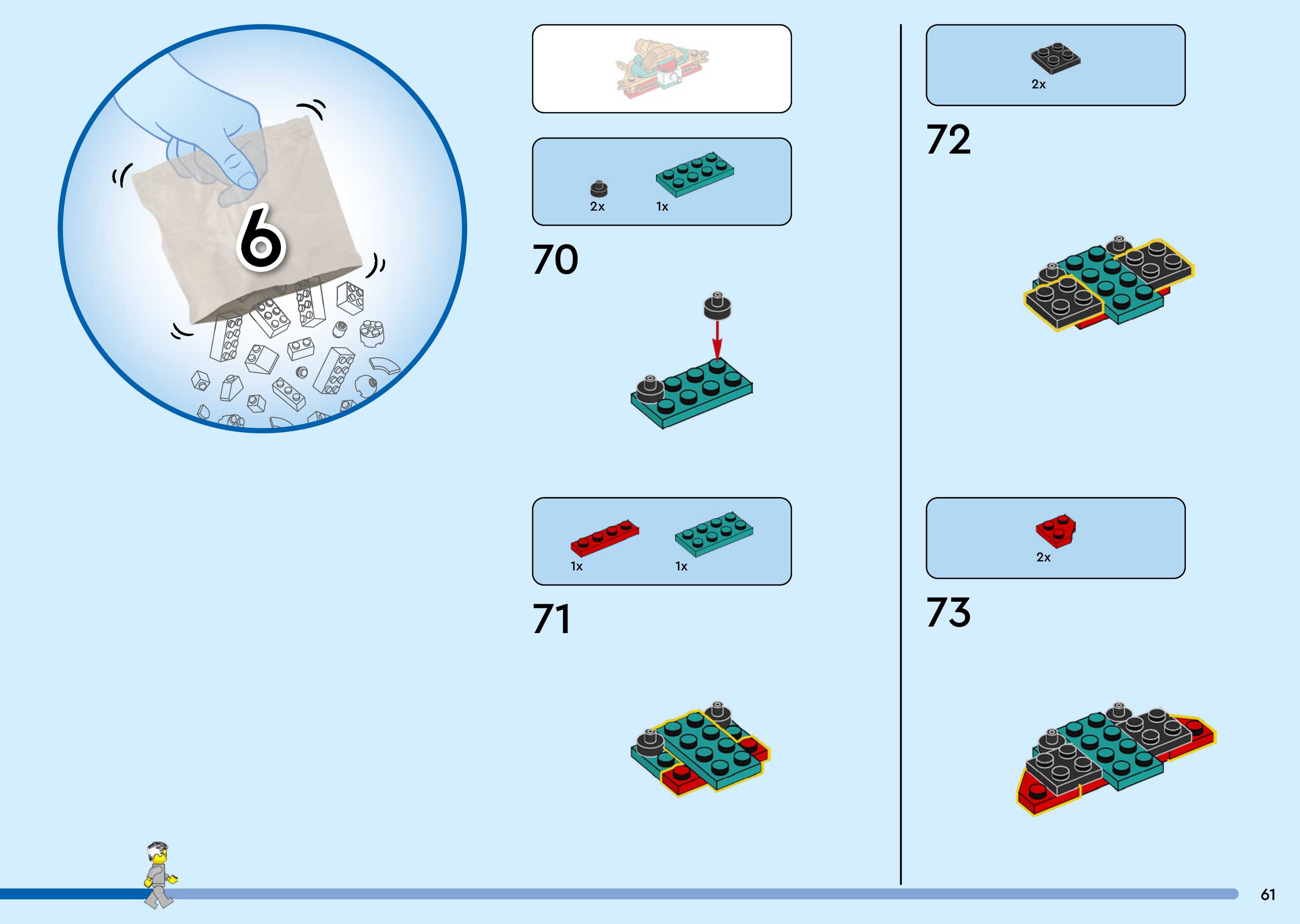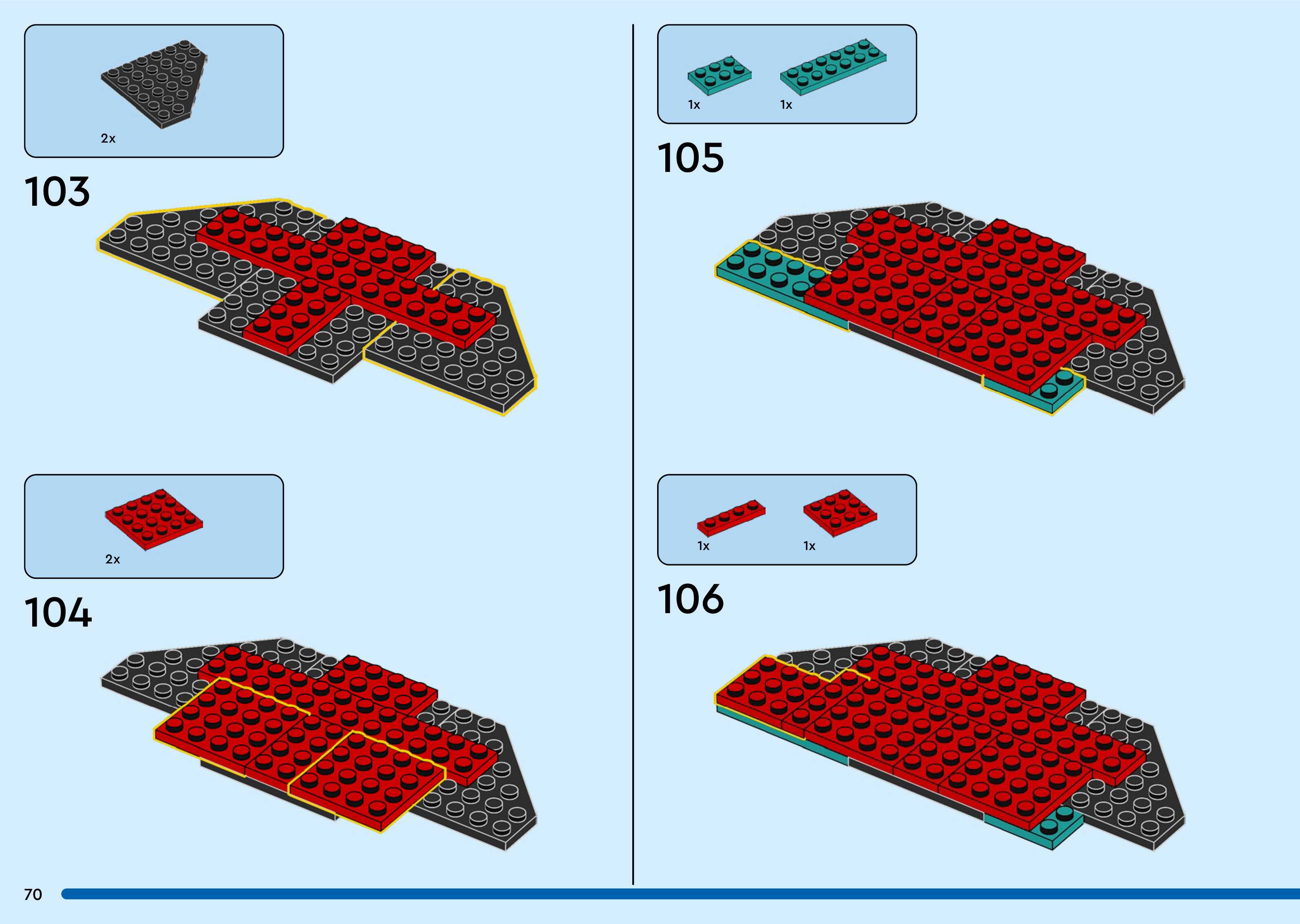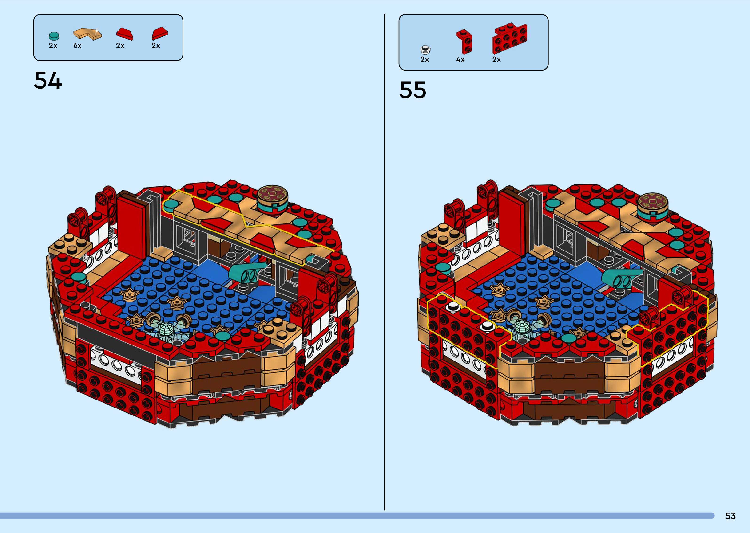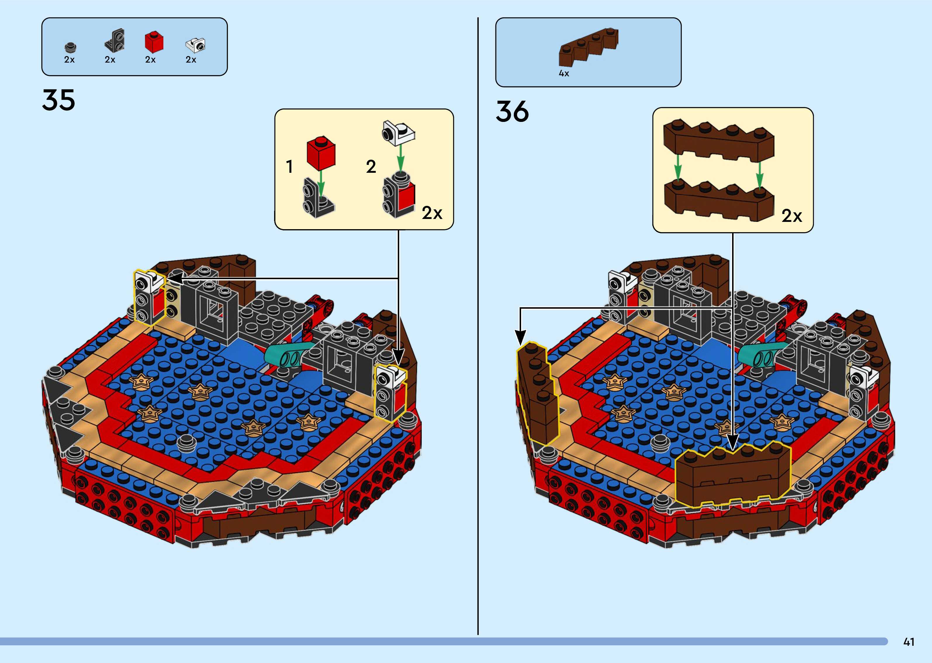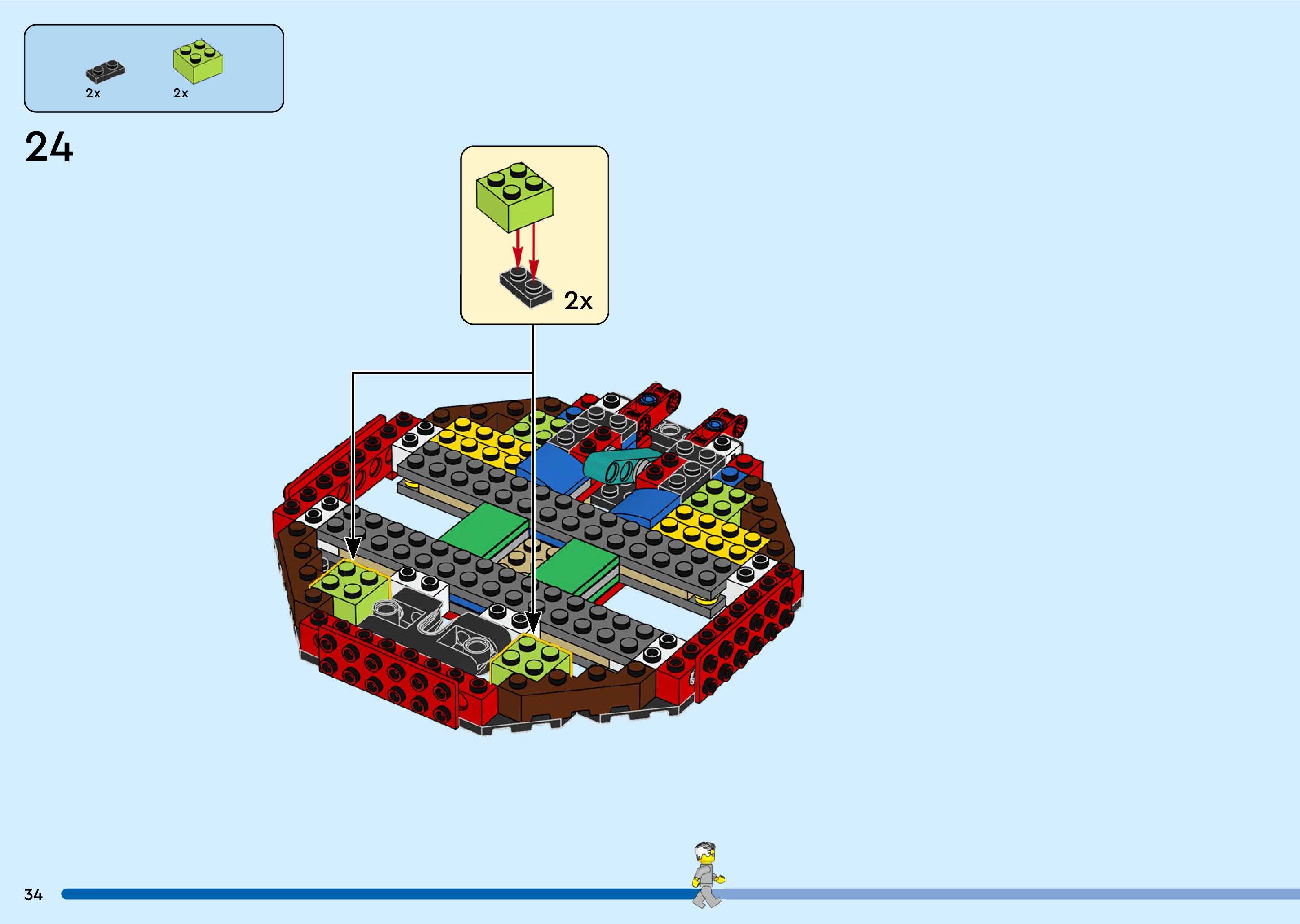 The assembly guide is prepared in a very understandable way for children and adult LEGO enthusiasts. A total of 112 picture galleries are shown, explaining the step-by-step construction stages for 2 different structures.