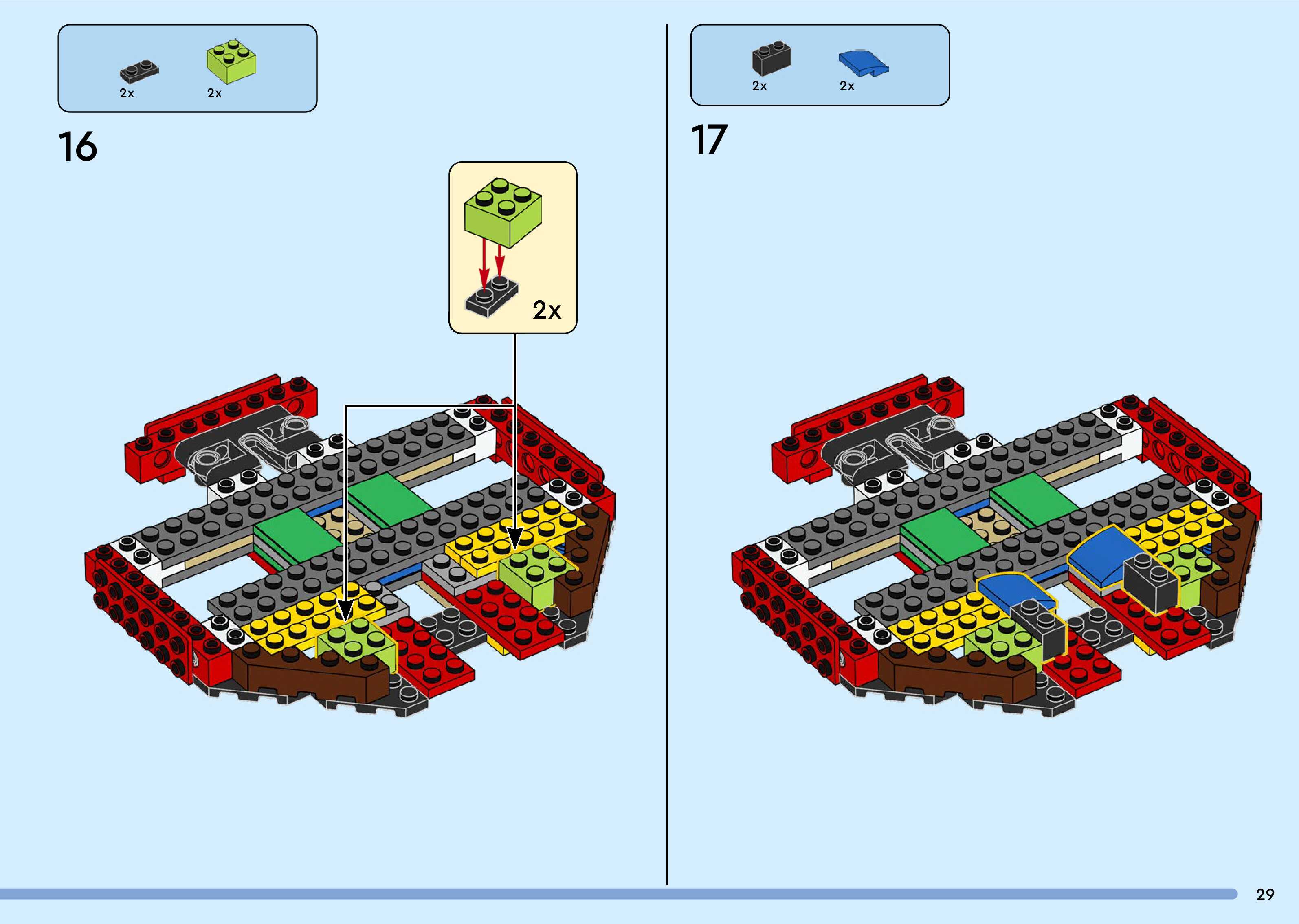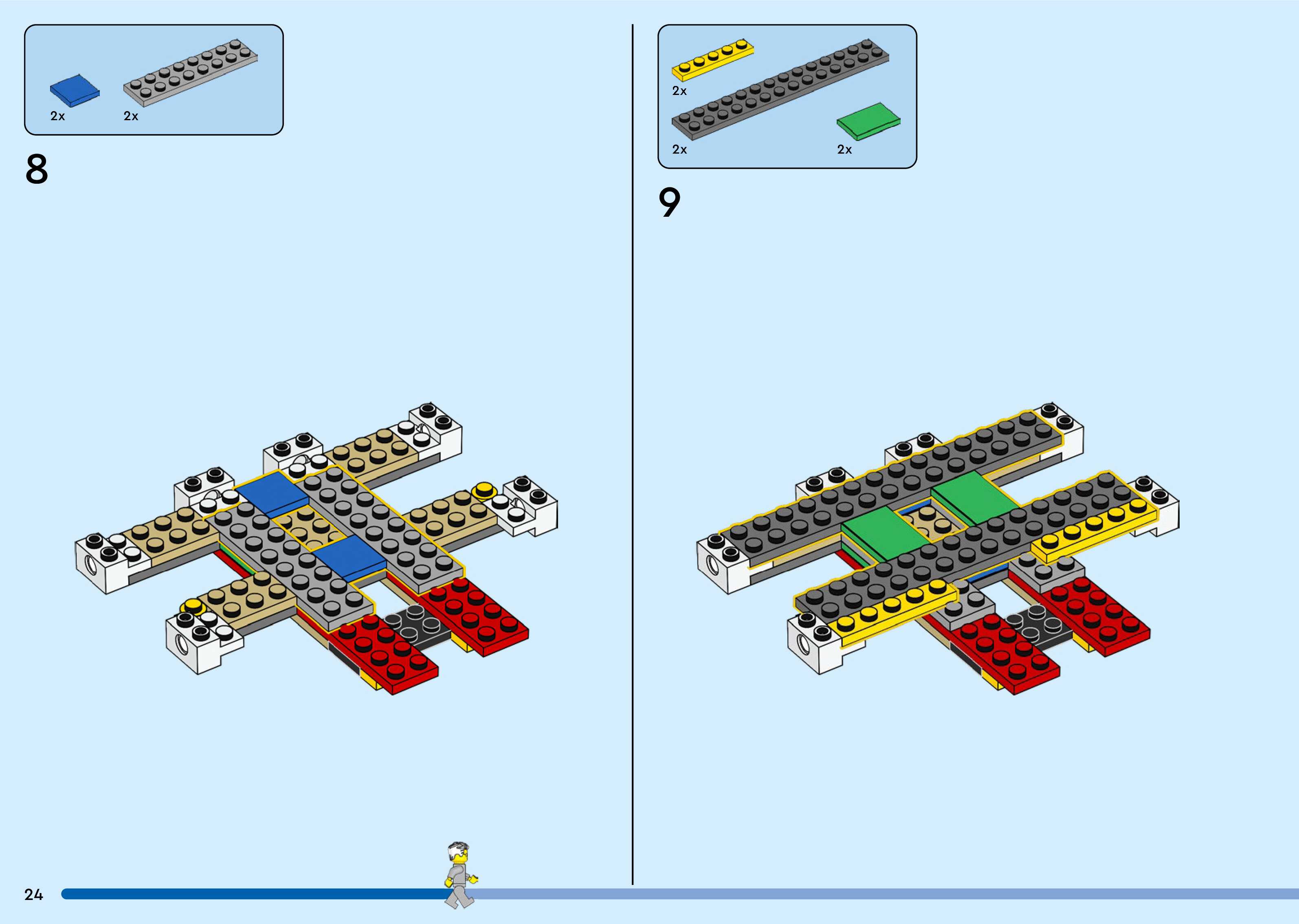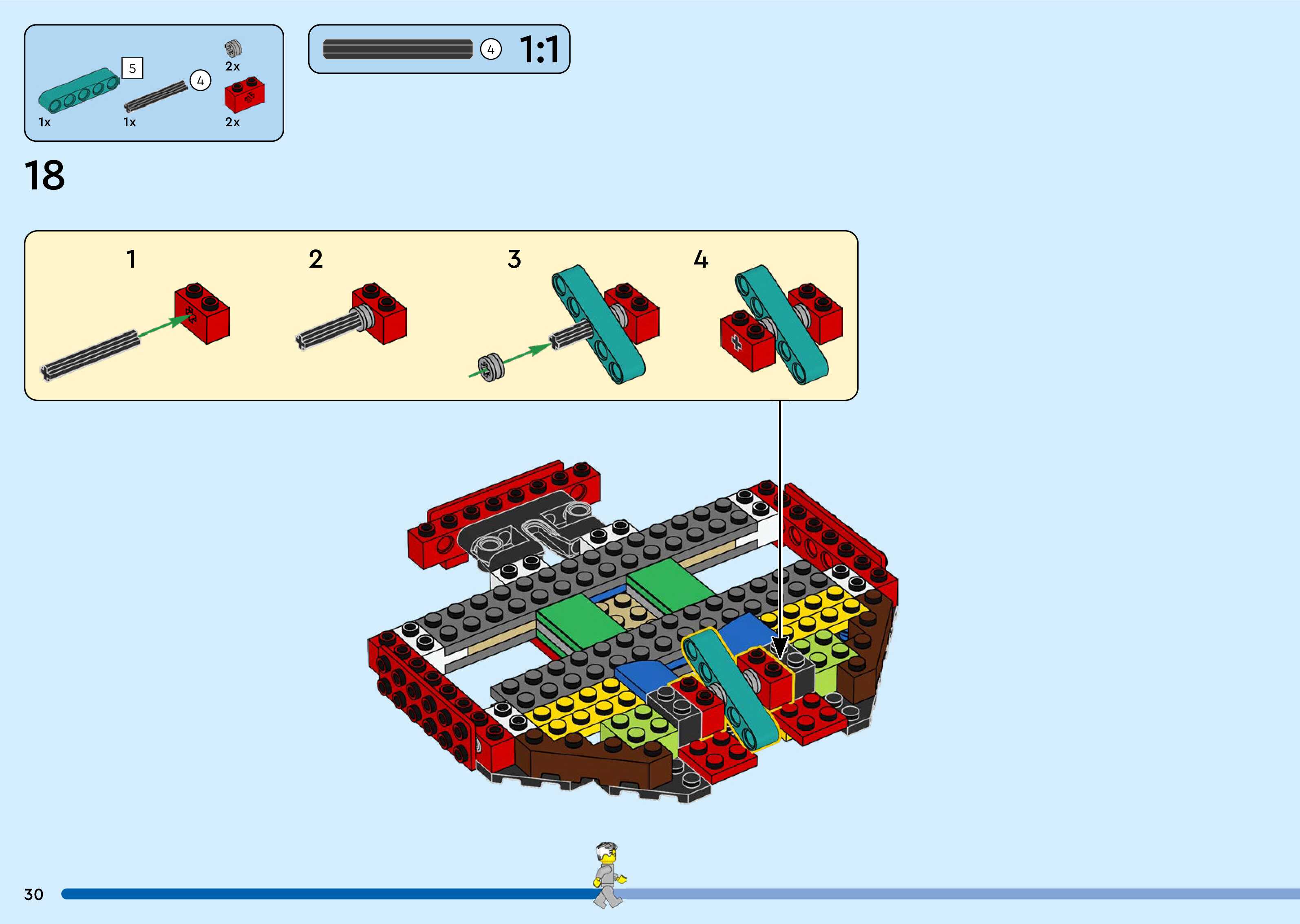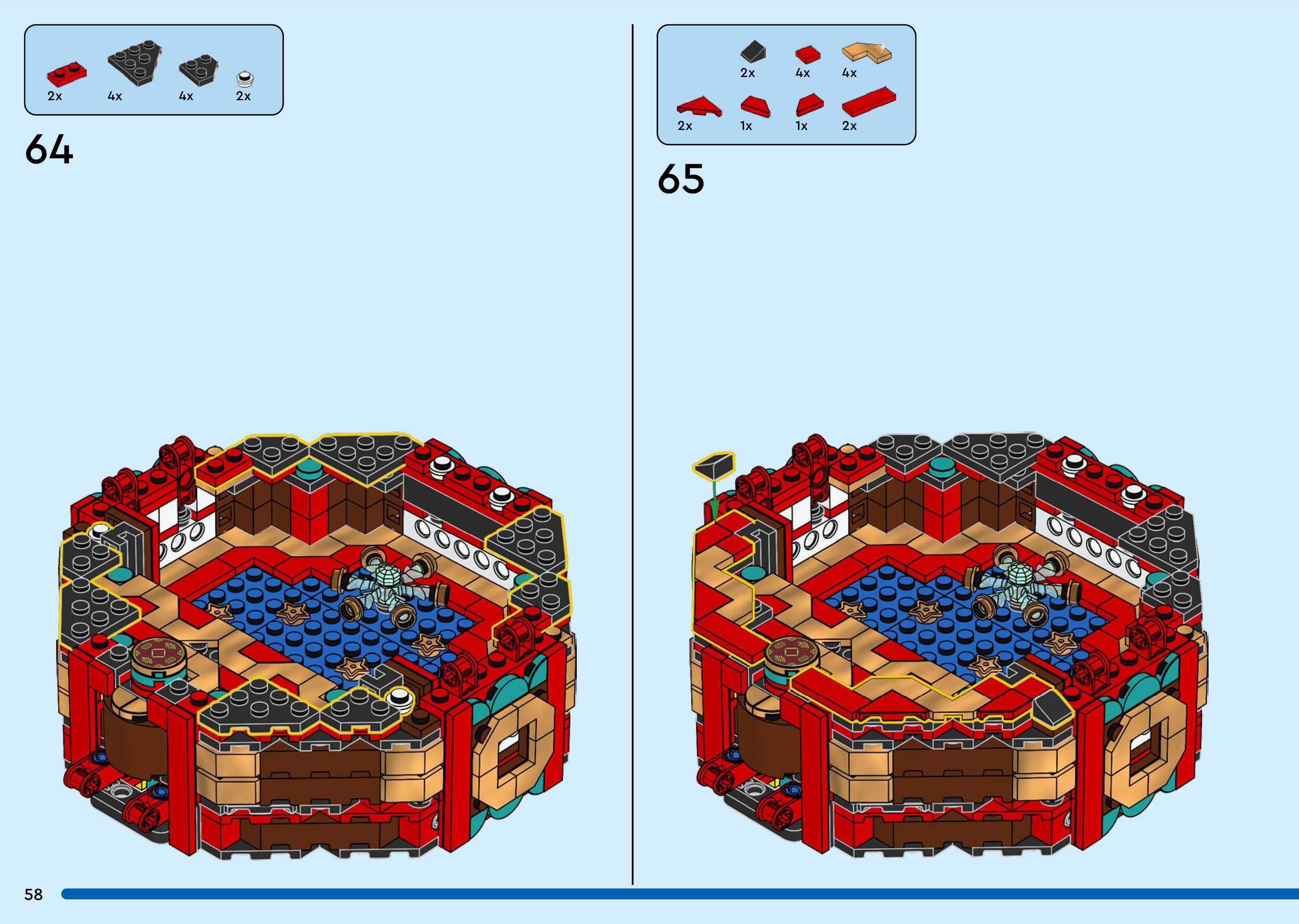 The assembly guide is prepared in a very understandable way for children and adult LEGO enthusiasts. A total of 112 picture galleries are shown, explaining the step-by-step construction stages for 2 different structures.