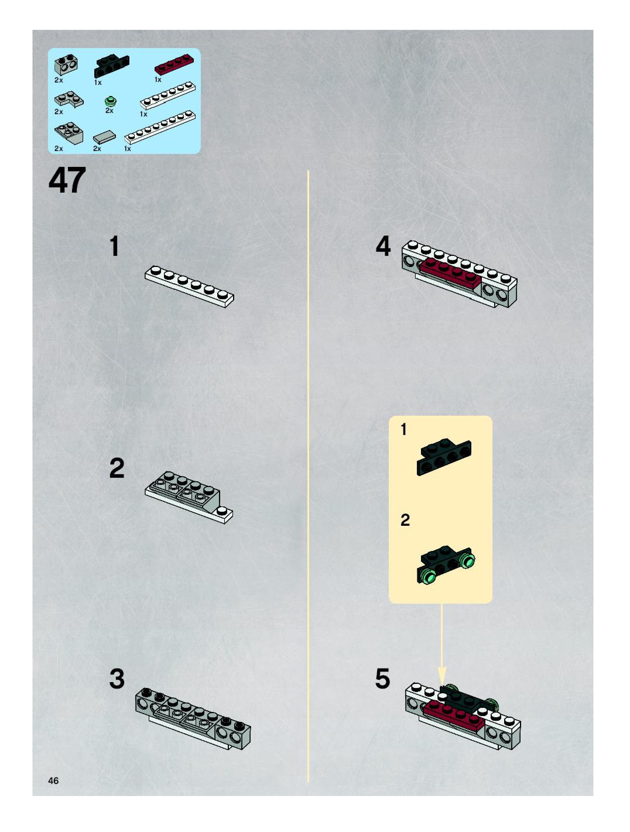 The assembly guide is prepared in a very understandable way for children and adult LEGO enthusiasts. A total of 104 picture galleries are shown, explaining the step-by-step construction stages for 2 different structures.