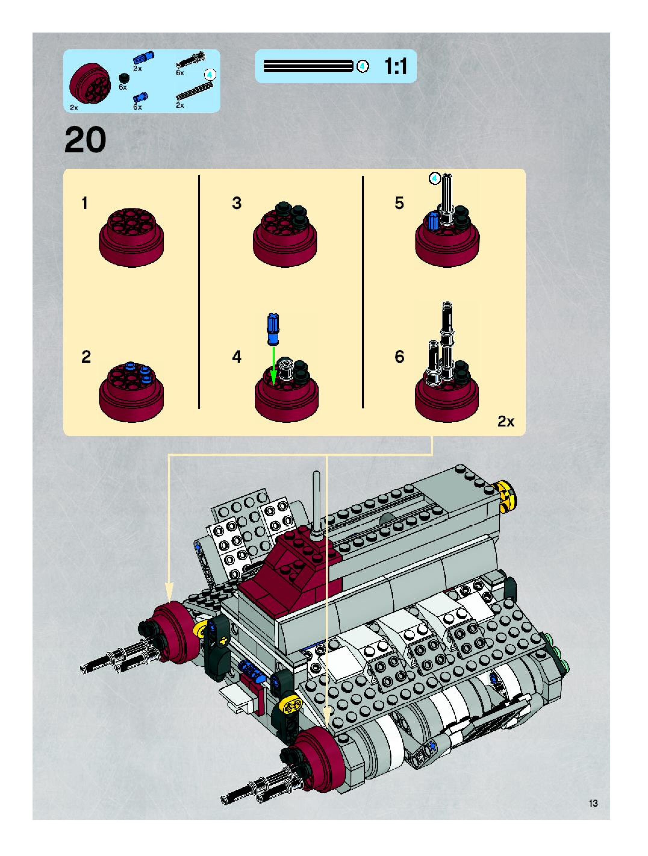On this page you can find the original construction manual for the LEGO 8019 set. With the assembly manual you can easily learn how to build the 8019 Republic Attack Shuttle step by step. The set was released in 2009.