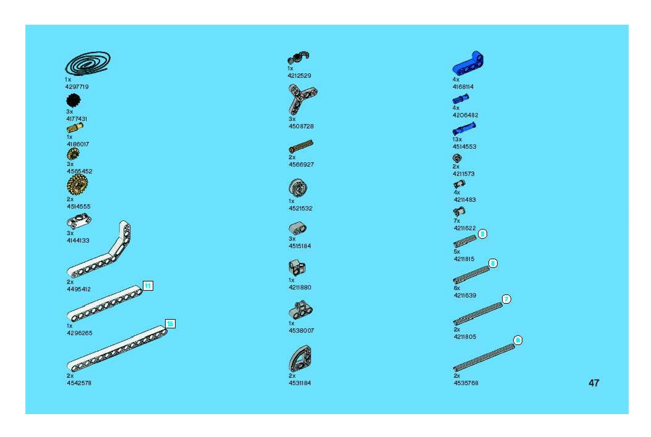 The assembly guide is prepared in a very understandable way for children and adult LEGO enthusiasts. A total of 100 picture galleries are shown, explaining the step-by-step construction stages for 2 different structures.