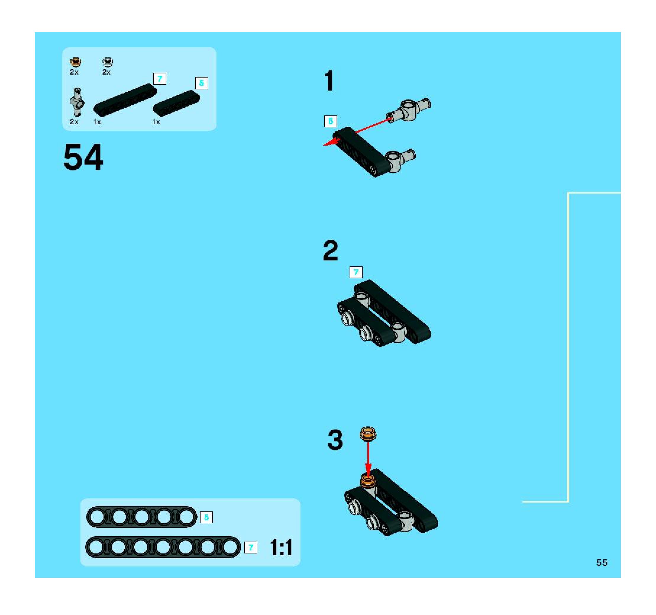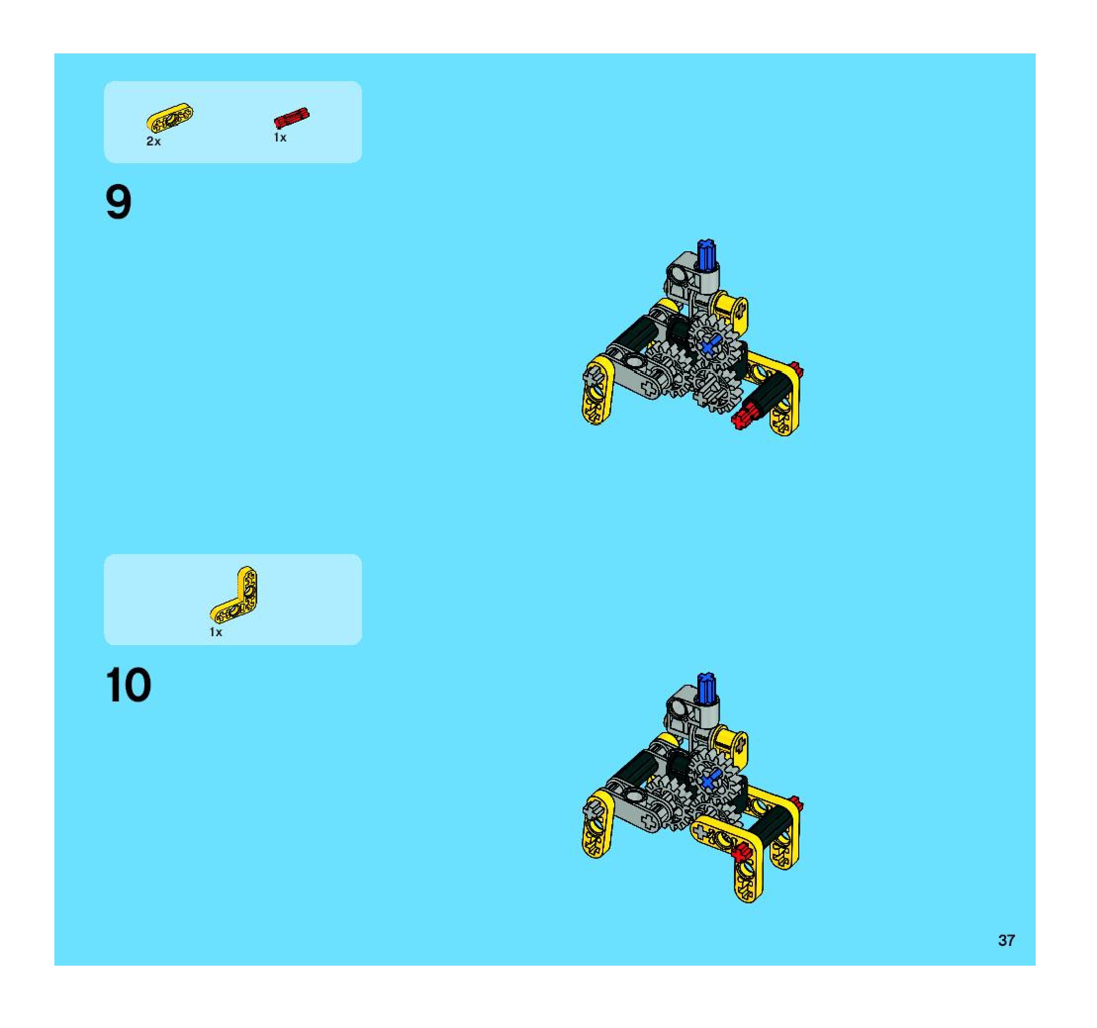 The assembly guide is prepared in a very understandable way for children and adult LEGO enthusiasts. A total of 104 picture galleries are shown, explaining the step-by-step construction stages for 2 different structures.