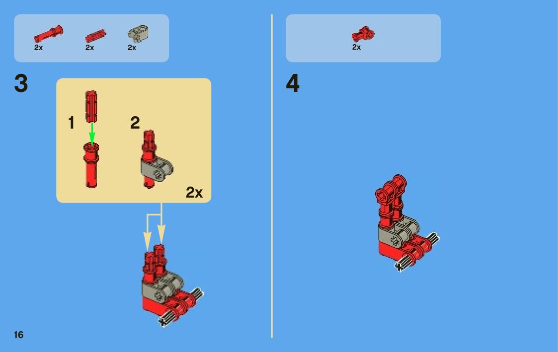 The assembly guide is prepared in a very understandable way for children and adult LEGO enthusiasts. A total of 120 picture galleries are shown, explaining the step-by-step construction stages for 4 different structures.