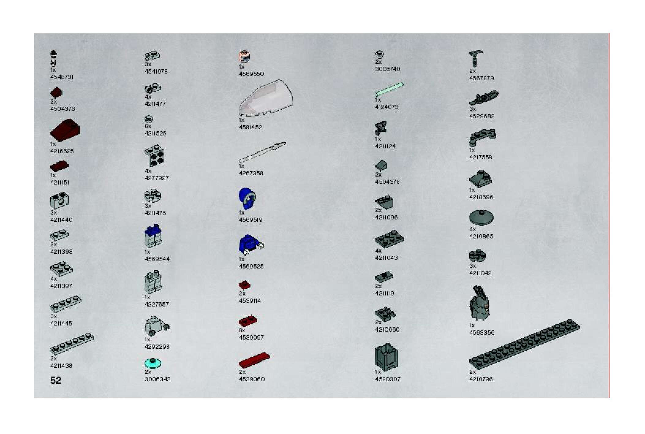 The assembly guide is prepared in a very understandable way for children and adult LEGO enthusiasts. A total of 56 picture galleries are shown, explaining the step-by-step construction stages for 1 different structures.
