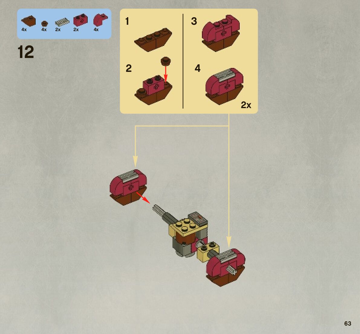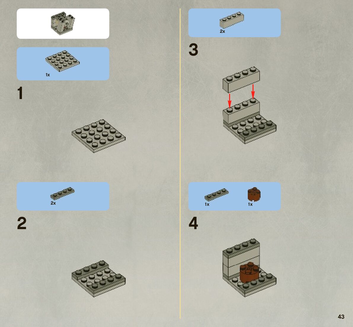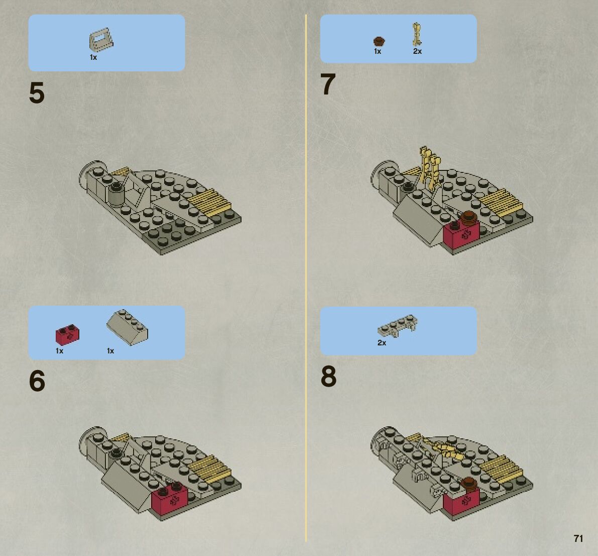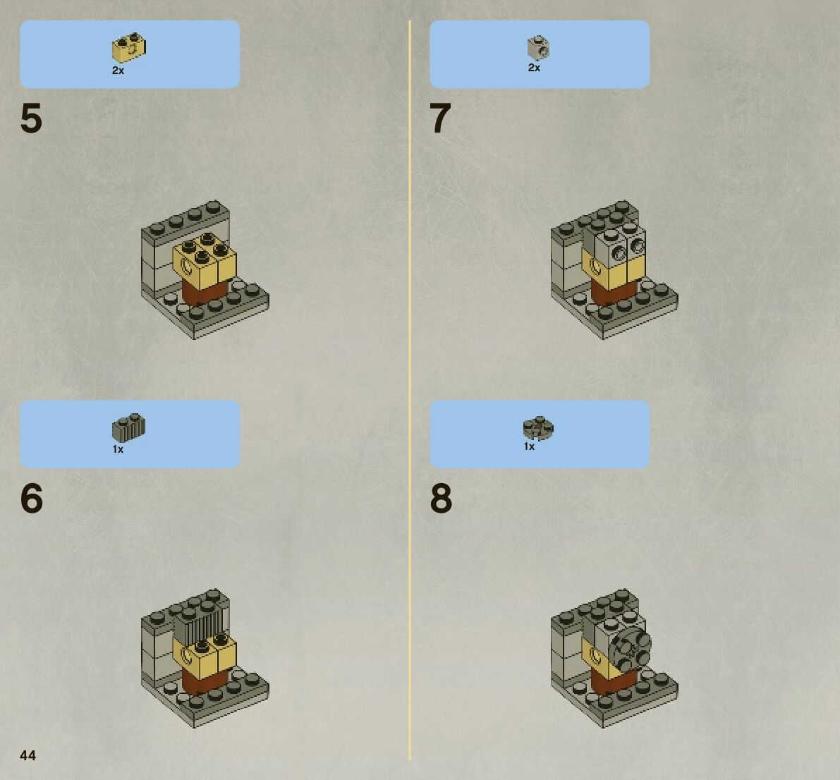 The assembly guide is prepared in a very understandable way for children and adult LEGO enthusiasts. A total of 140 picture galleries are shown, explaining the step-by-step construction stages for 2 different structures.