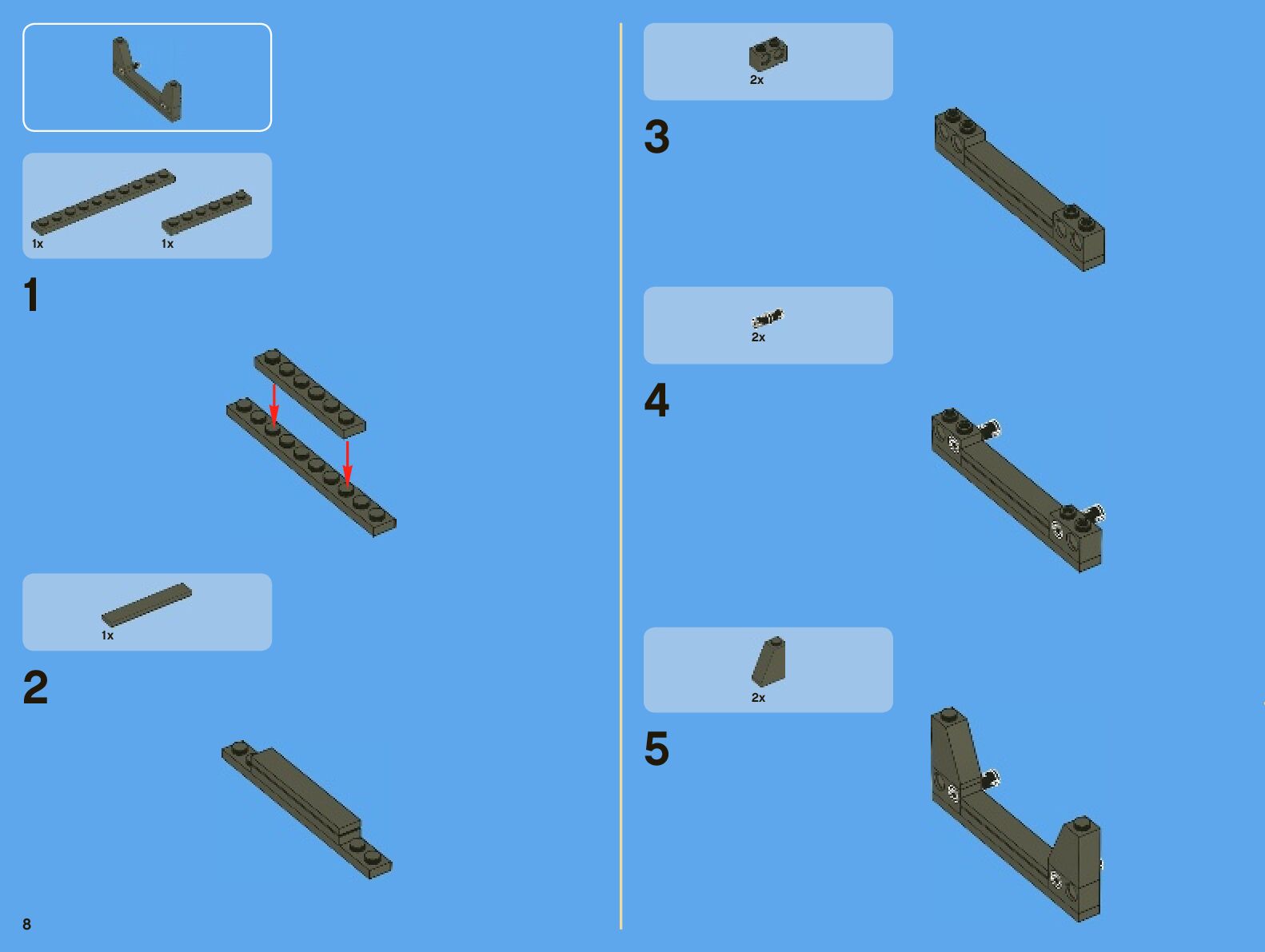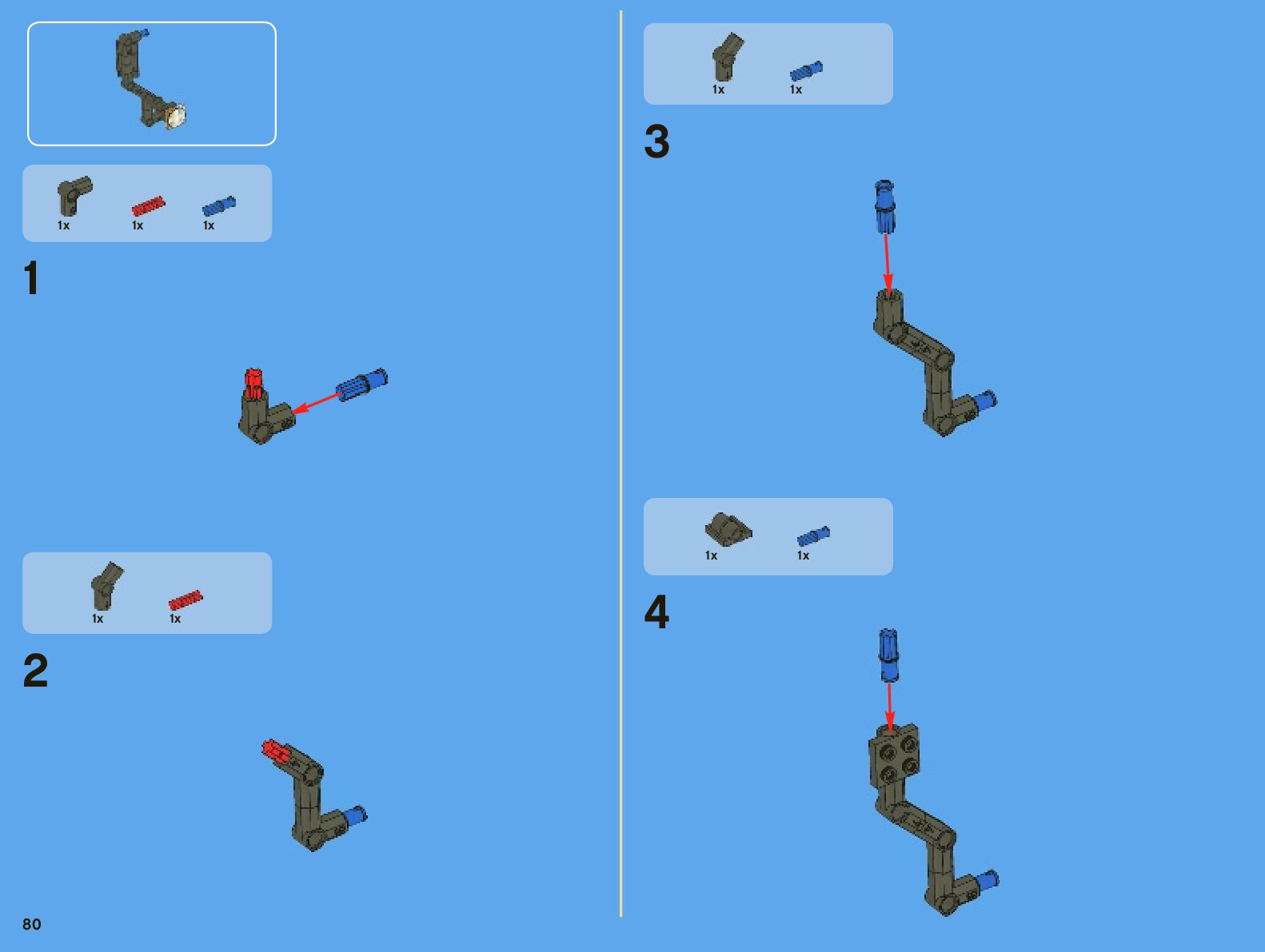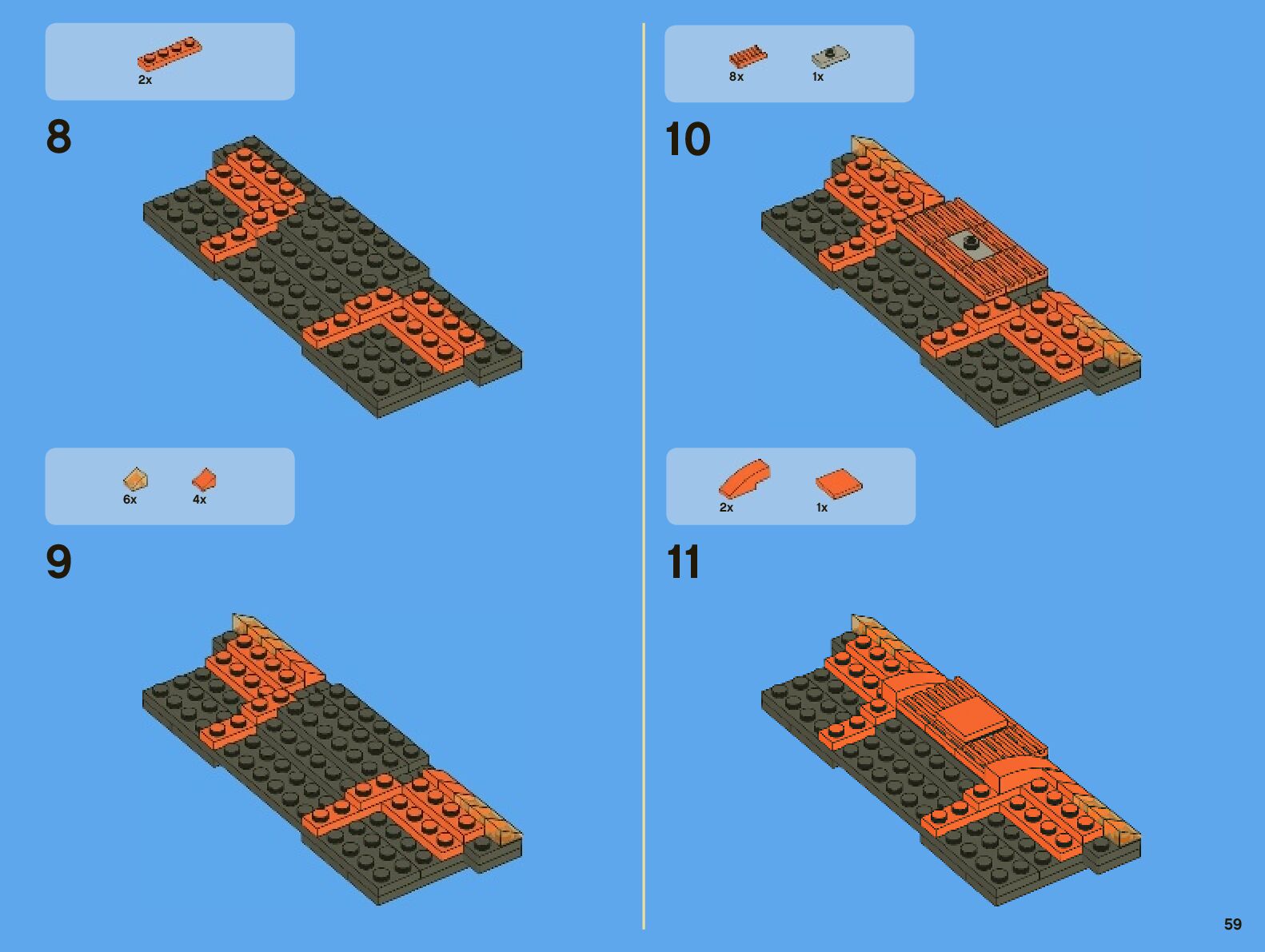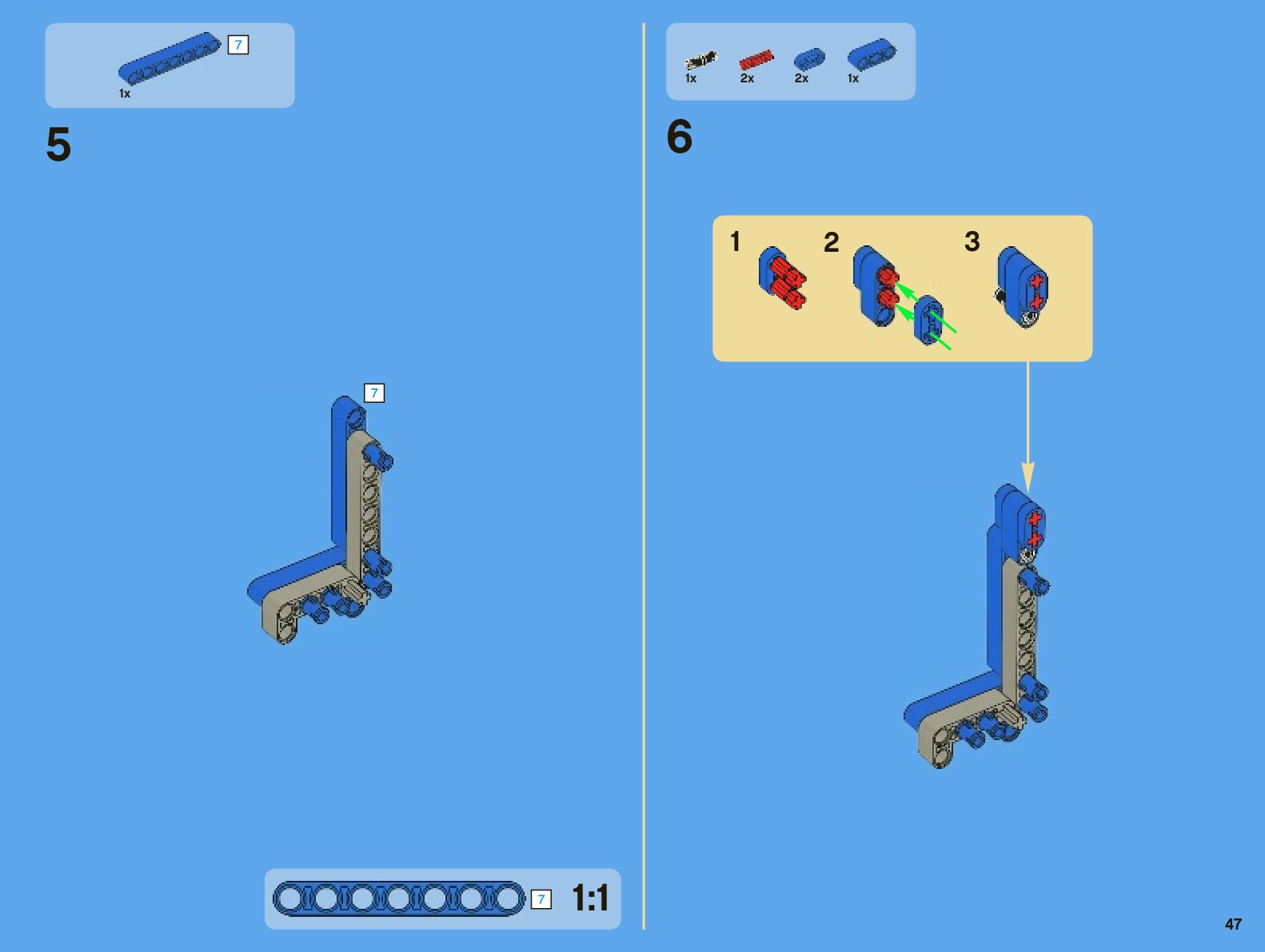 The assembly guide is prepared in a very understandable way for children and adult LEGO enthusiasts. A total of 442 picture galleries are shown, explaining the step-by-step construction stages for 7 different structures.