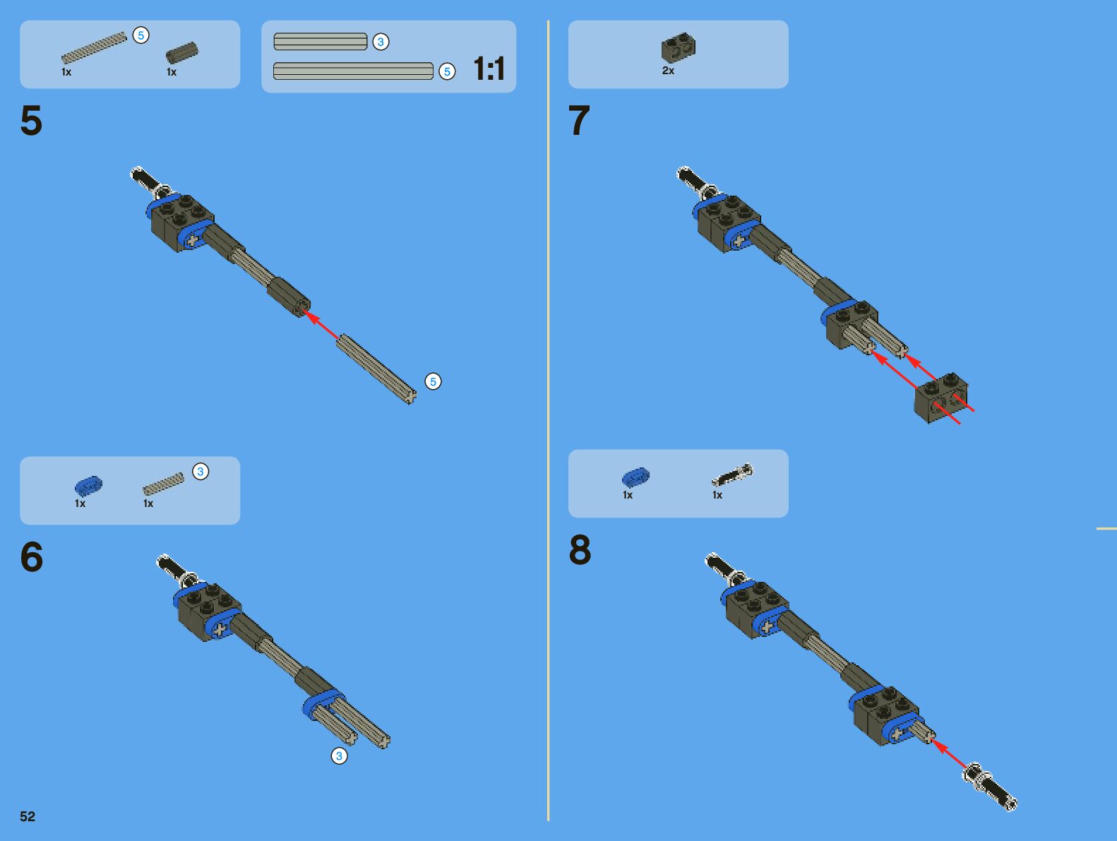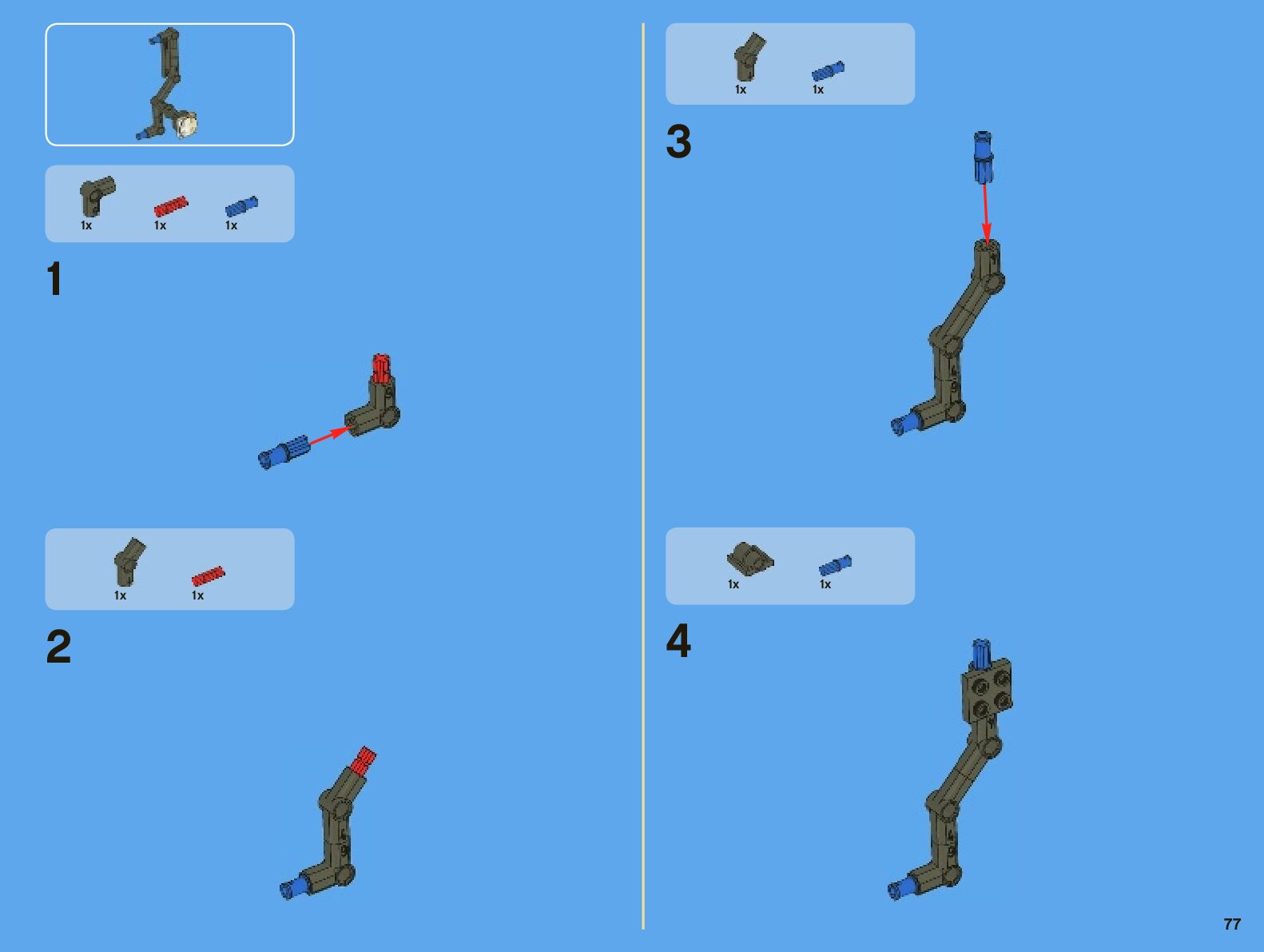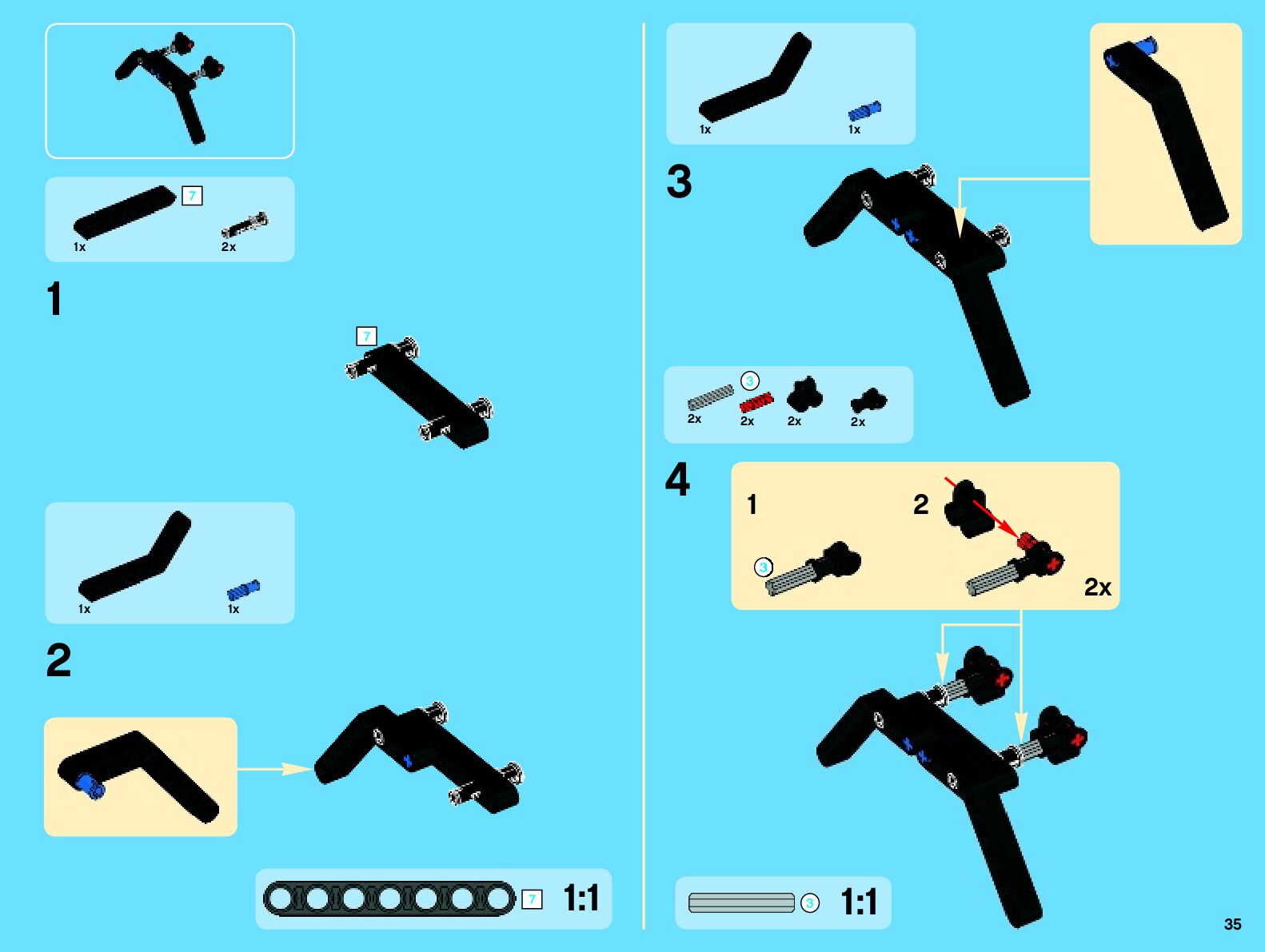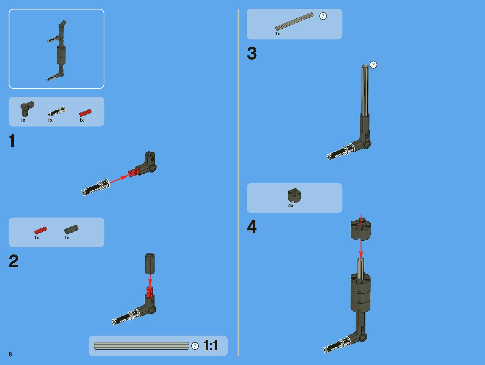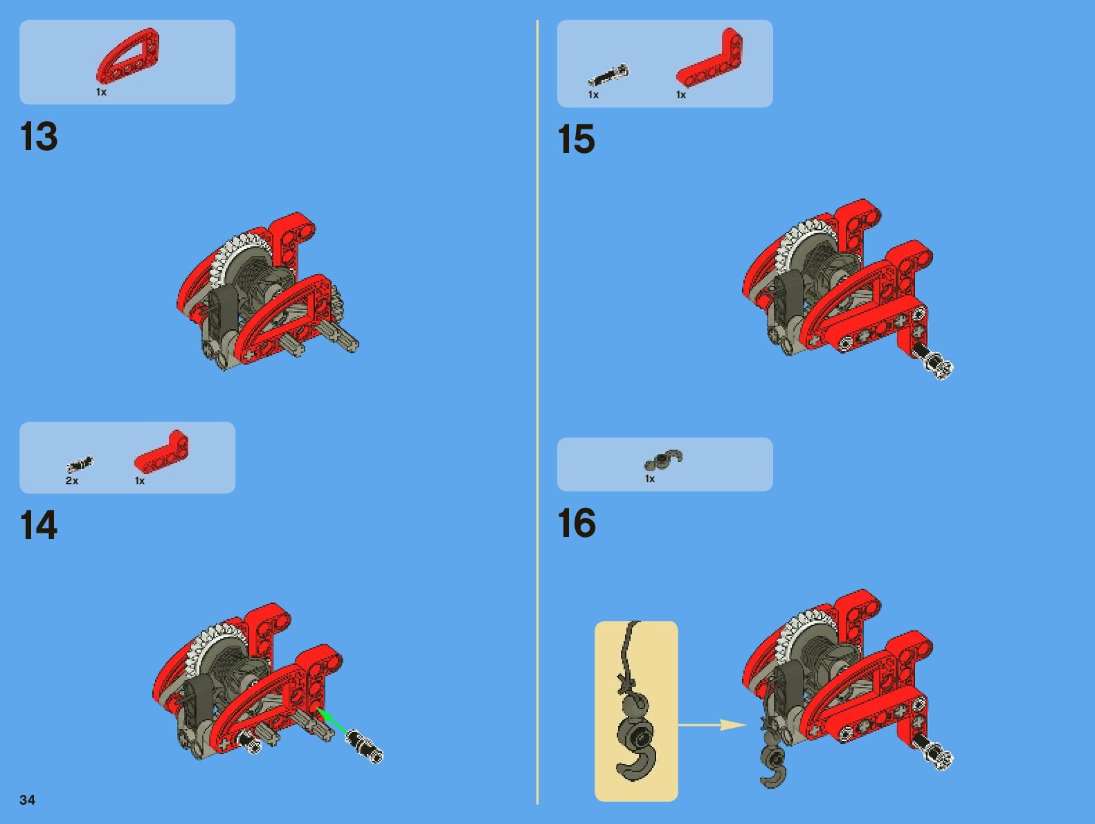 The assembly guide is prepared in a very understandable way for children and adult LEGO enthusiasts. A total of 442 picture galleries are shown, explaining the step-by-step construction stages for 7 different structures.