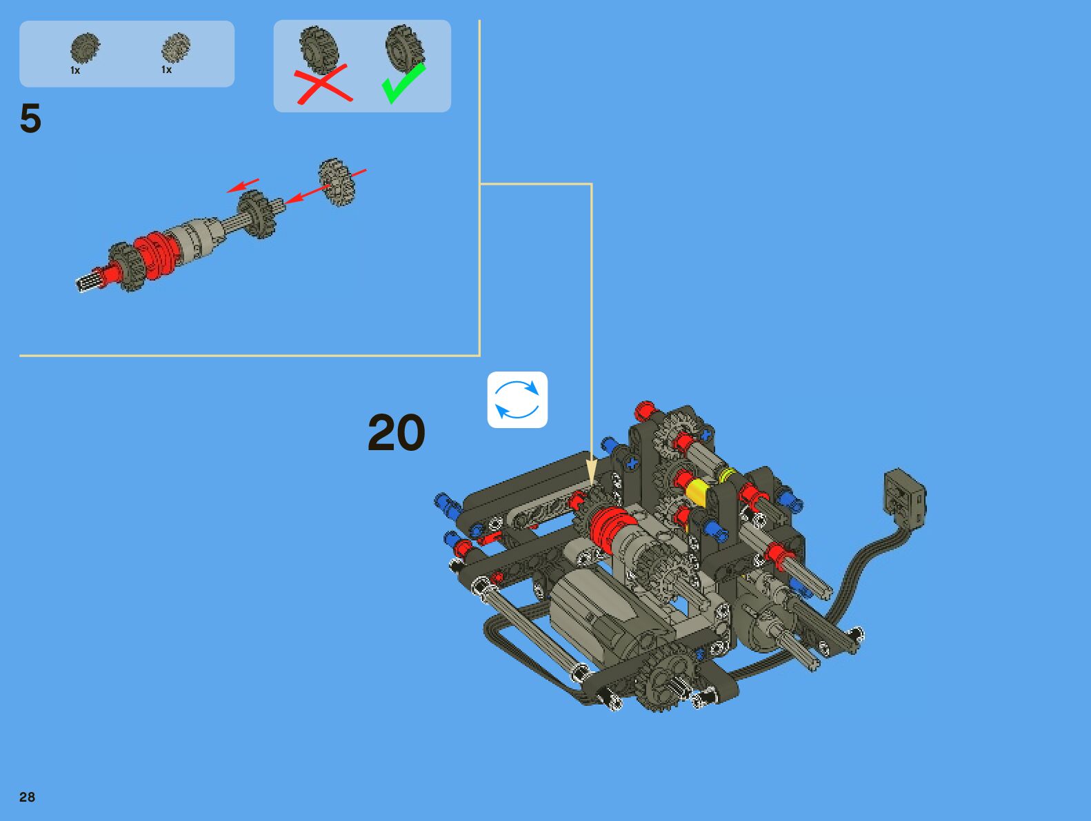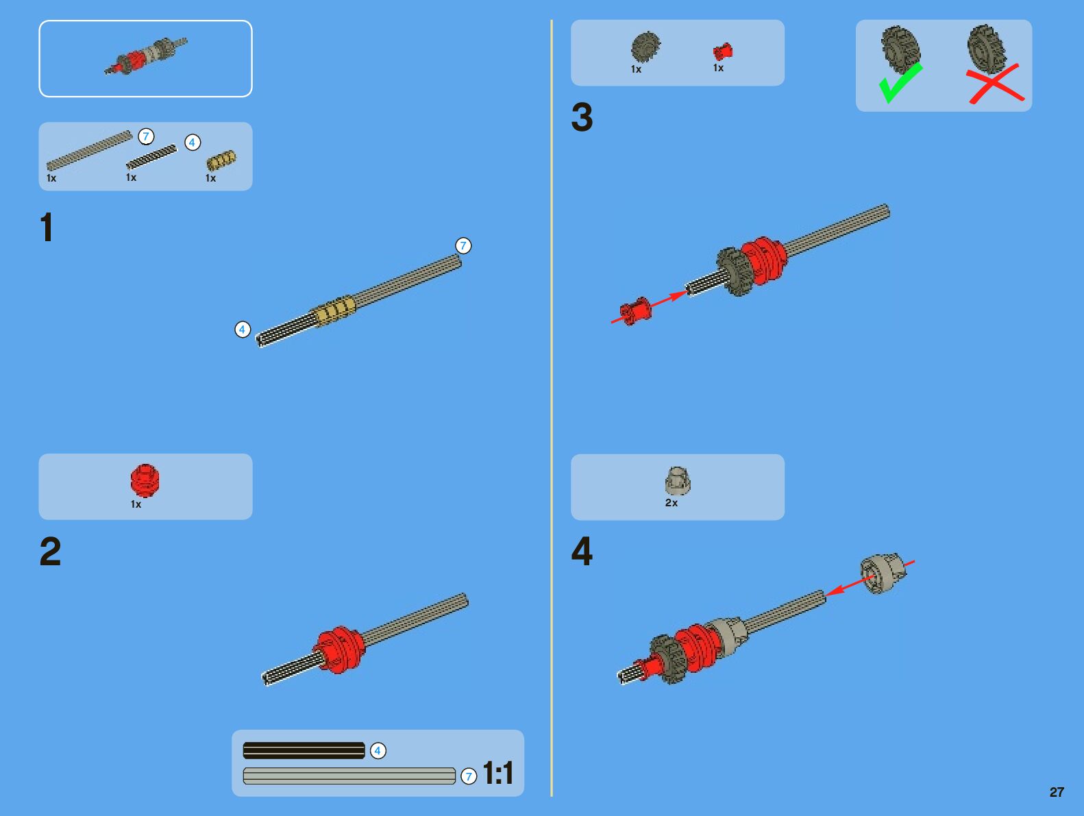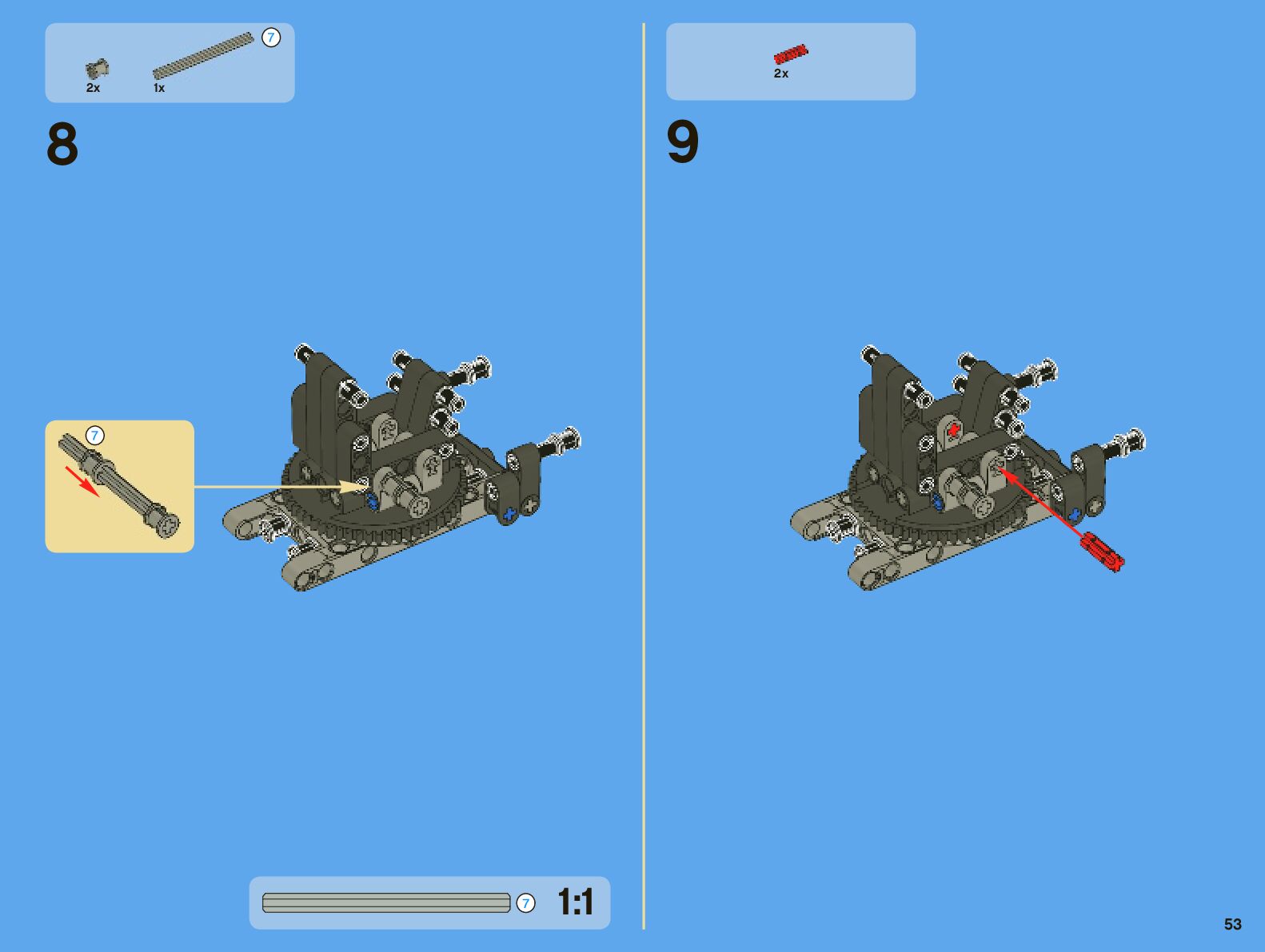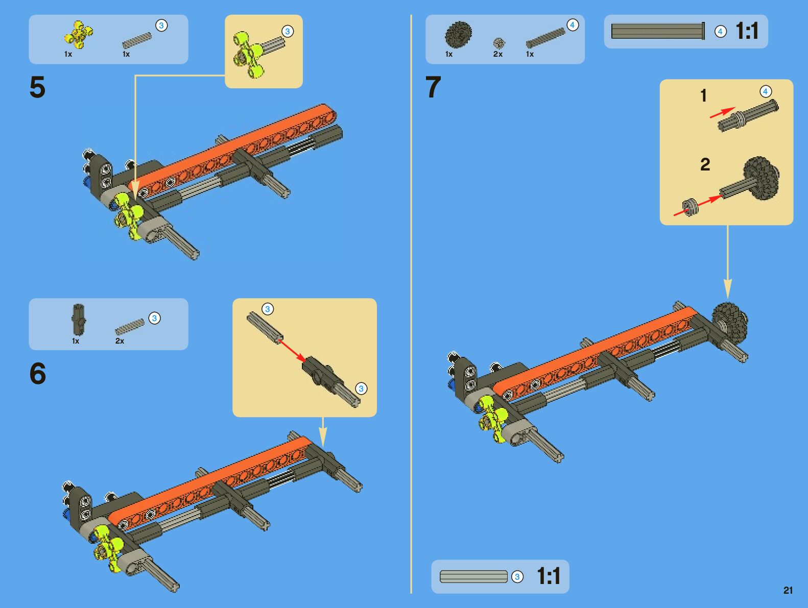 The assembly guide is prepared in a very understandable way for children and adult LEGO enthusiasts. A total of 442 picture galleries are shown, explaining the step-by-step construction stages for 7 different structures.