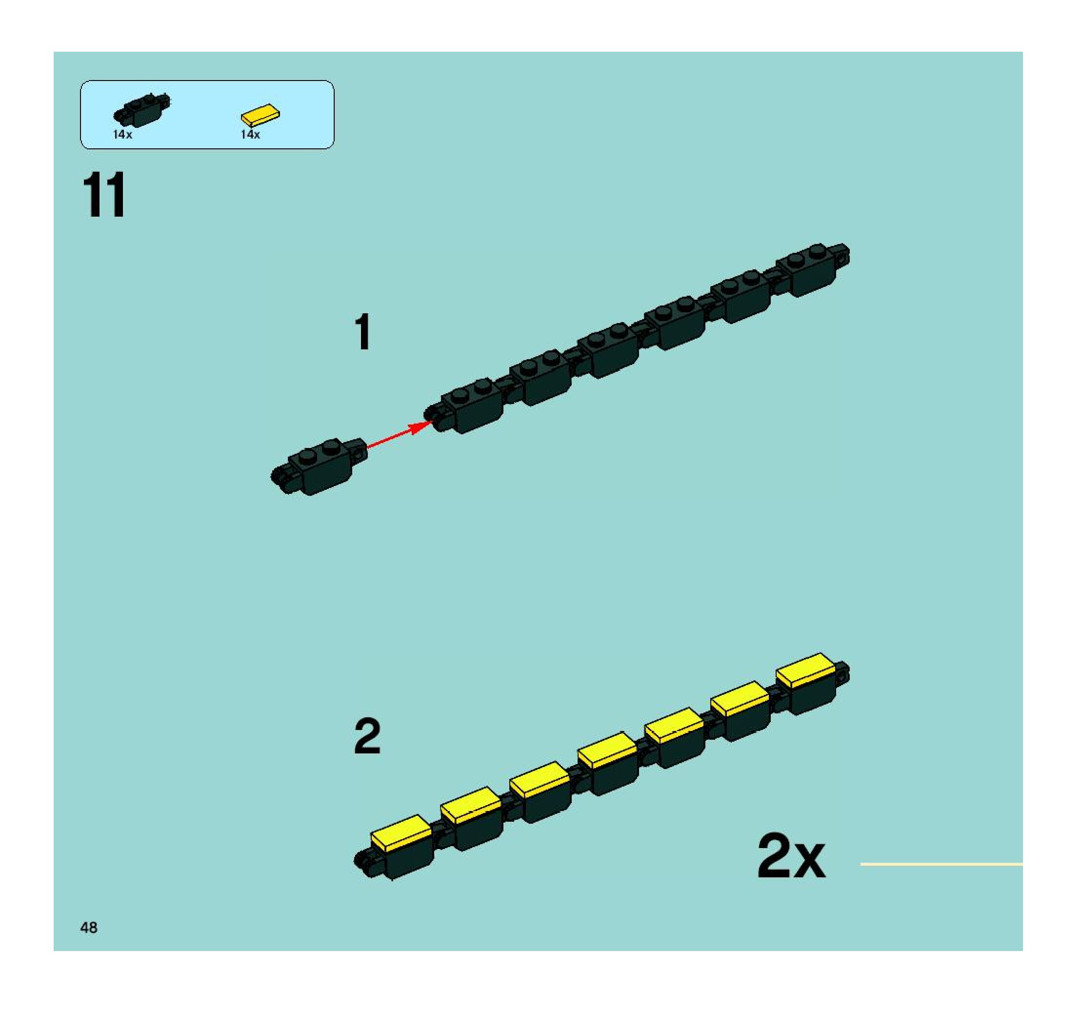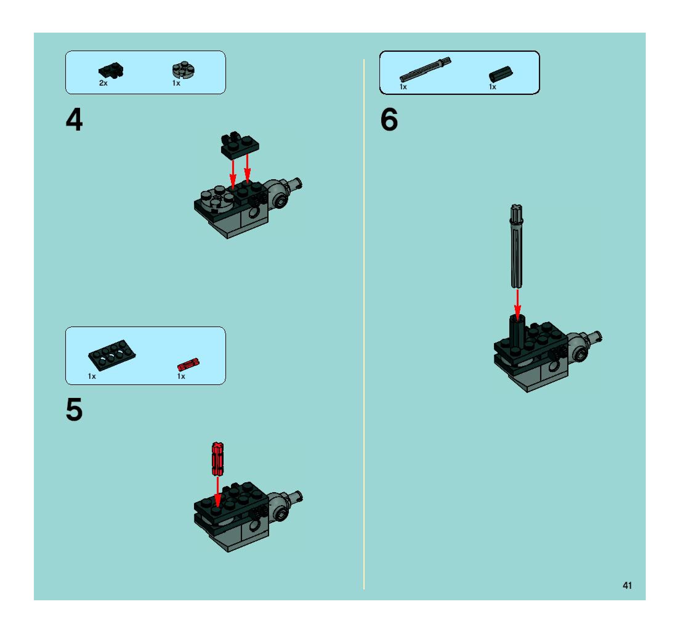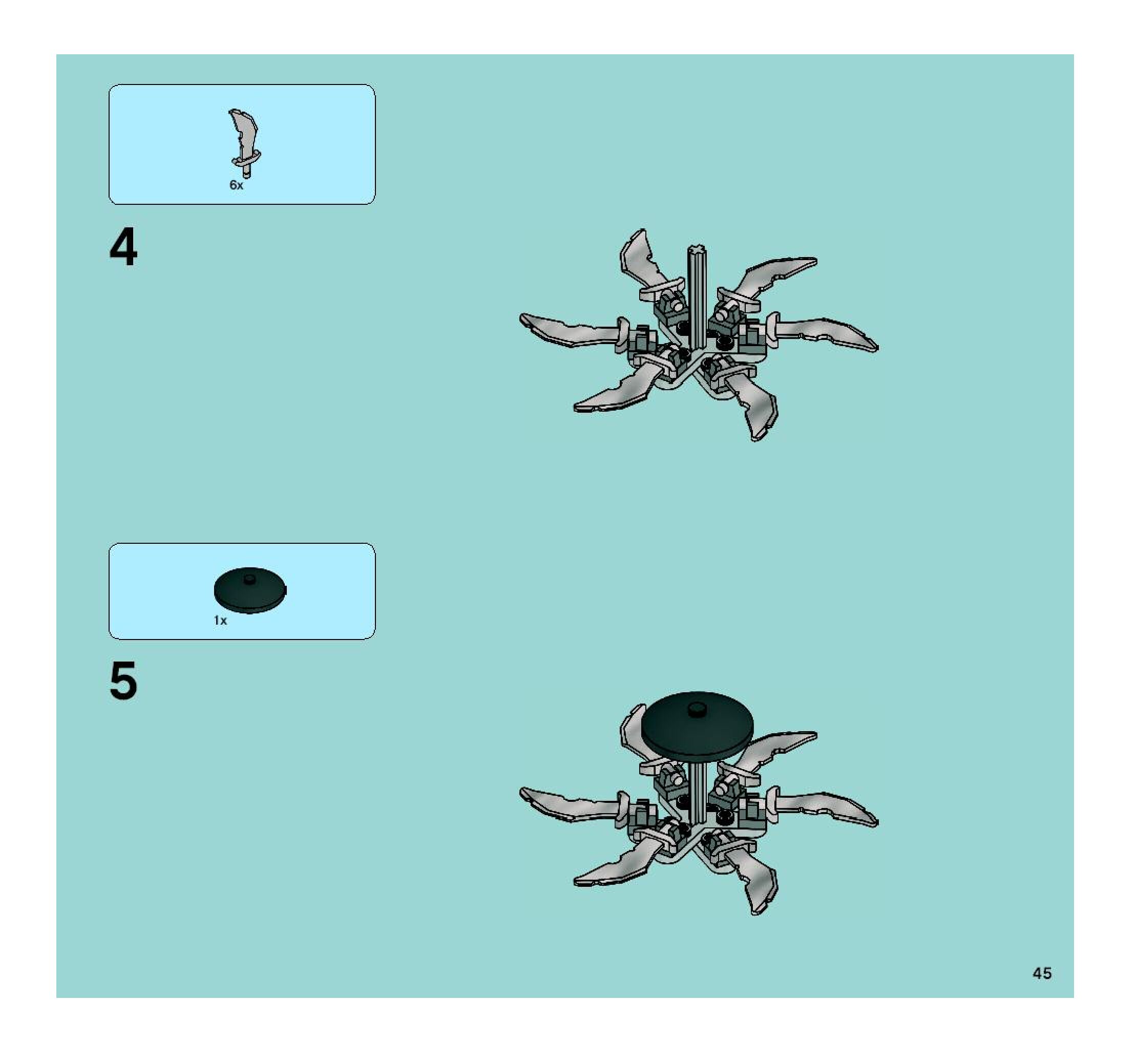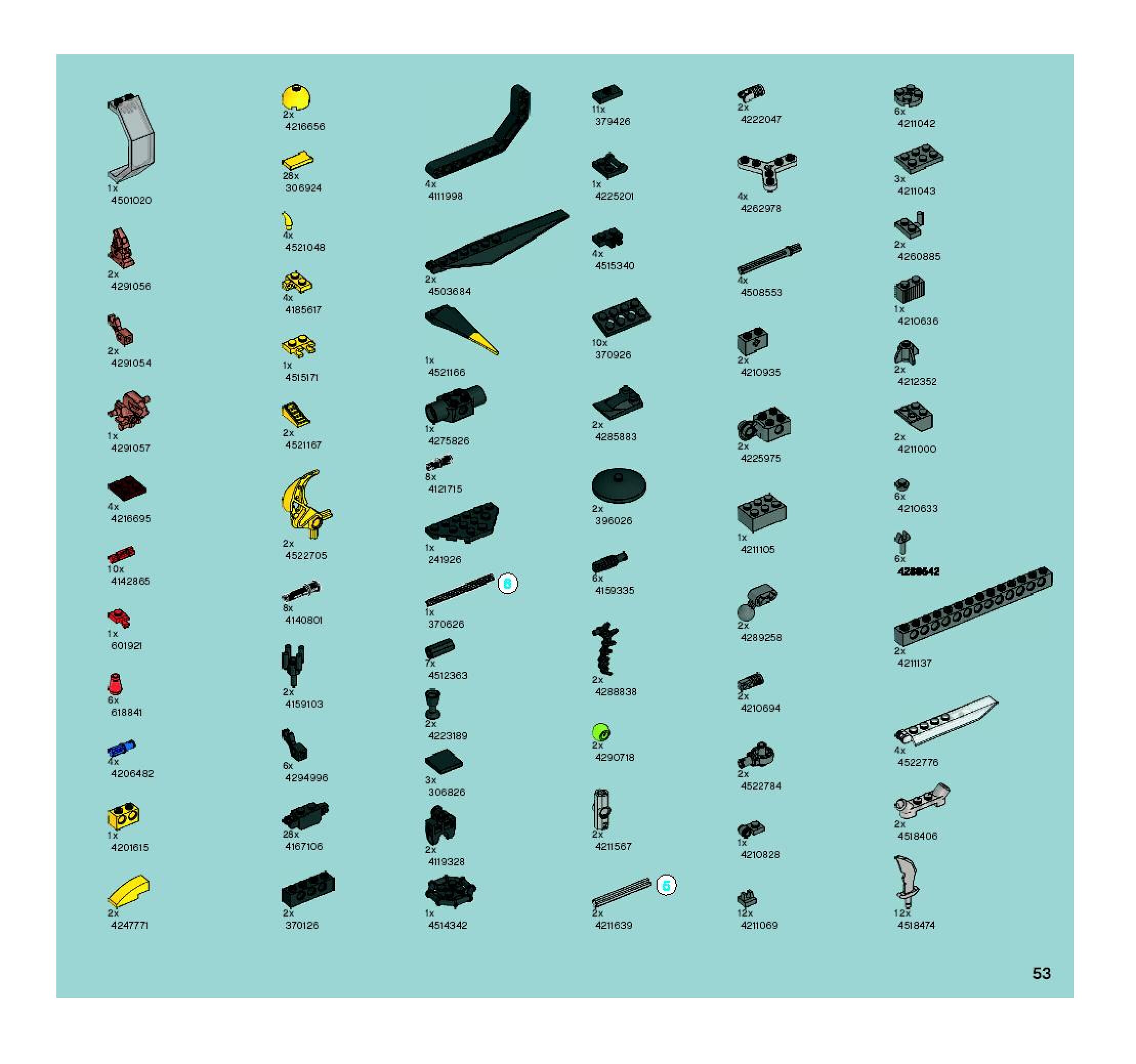 The assembly guide is prepared in a very understandable way for children and adult LEGO enthusiasts. A total of 130 picture galleries are shown, explaining the step-by-step construction stages for 2 different structures.