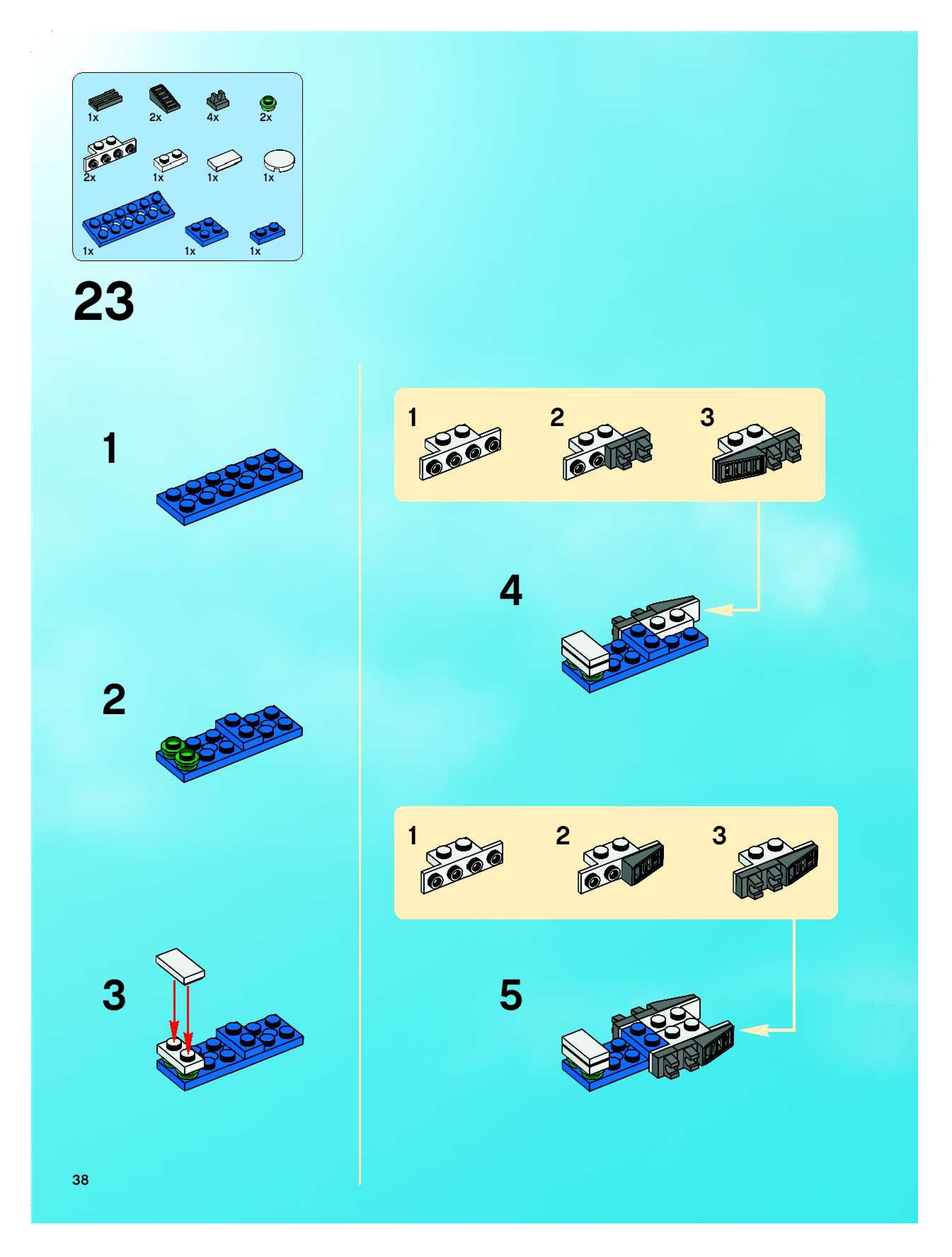 The assembly guide is prepared in a very understandable way for children and adult LEGO enthusiasts. A total of 400 picture galleries are shown, explaining the step-by-step construction stages for 2 different structures.