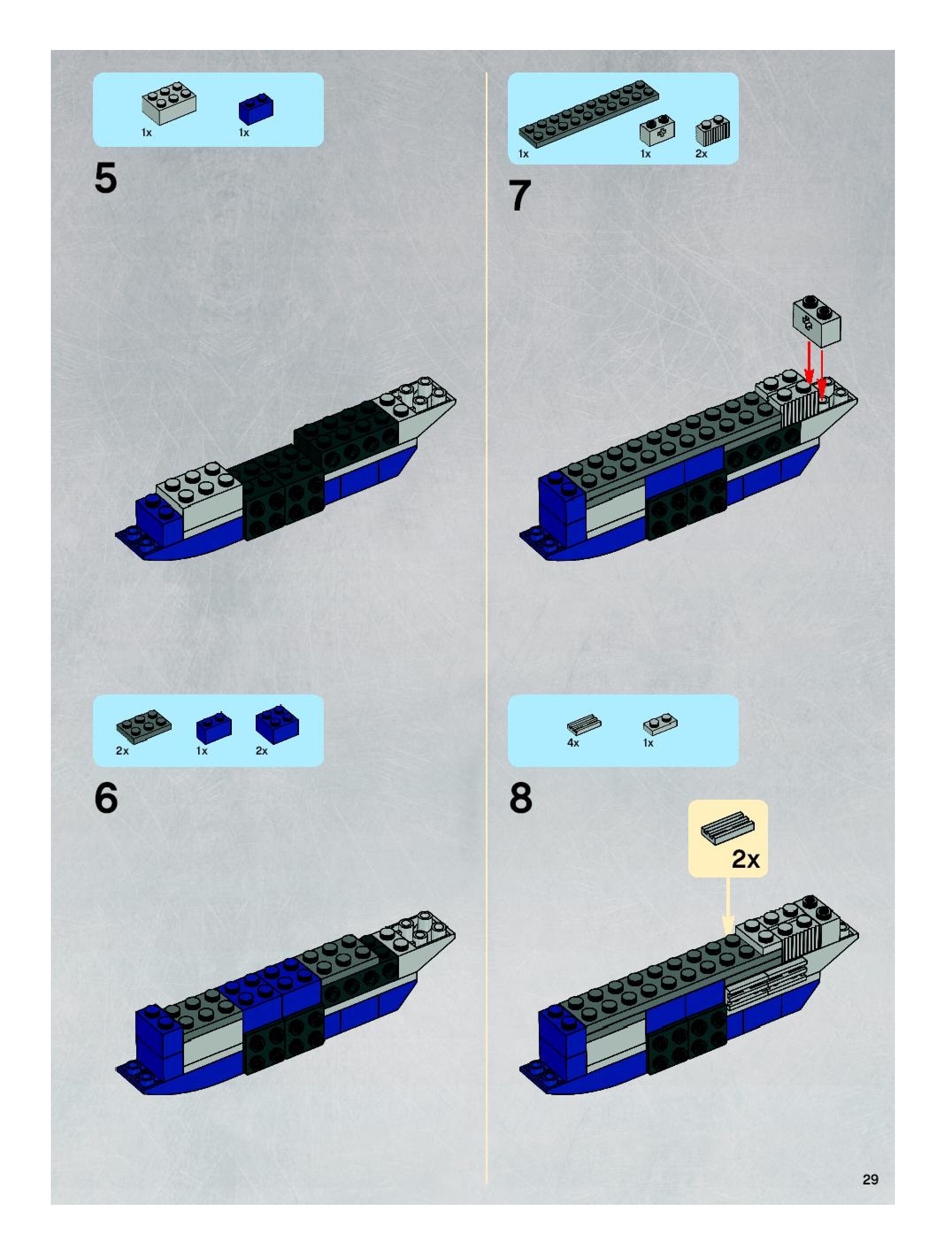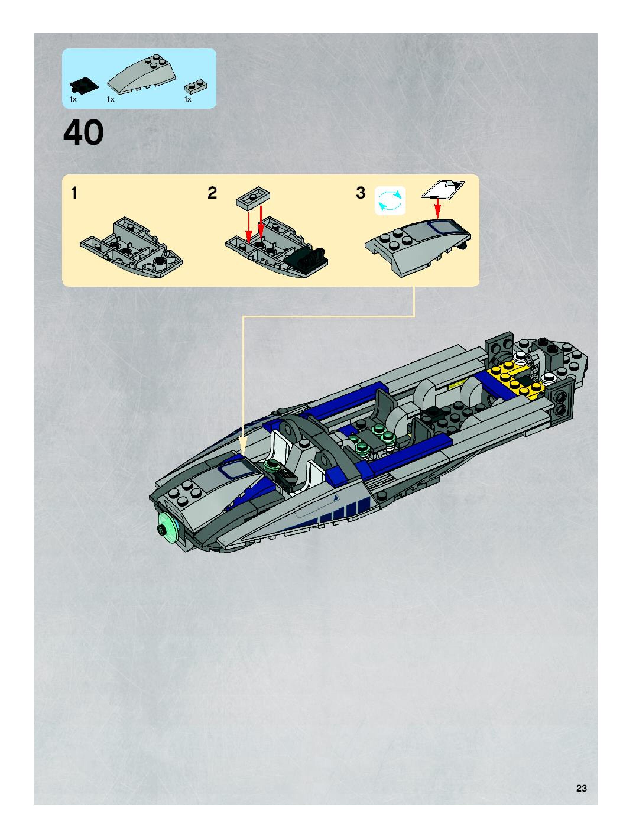 The assembly guide is prepared in a very understandable way for children and adult LEGO enthusiasts. A total of 40 picture galleries are shown, explaining the step-by-step construction stages for 1 different structures.