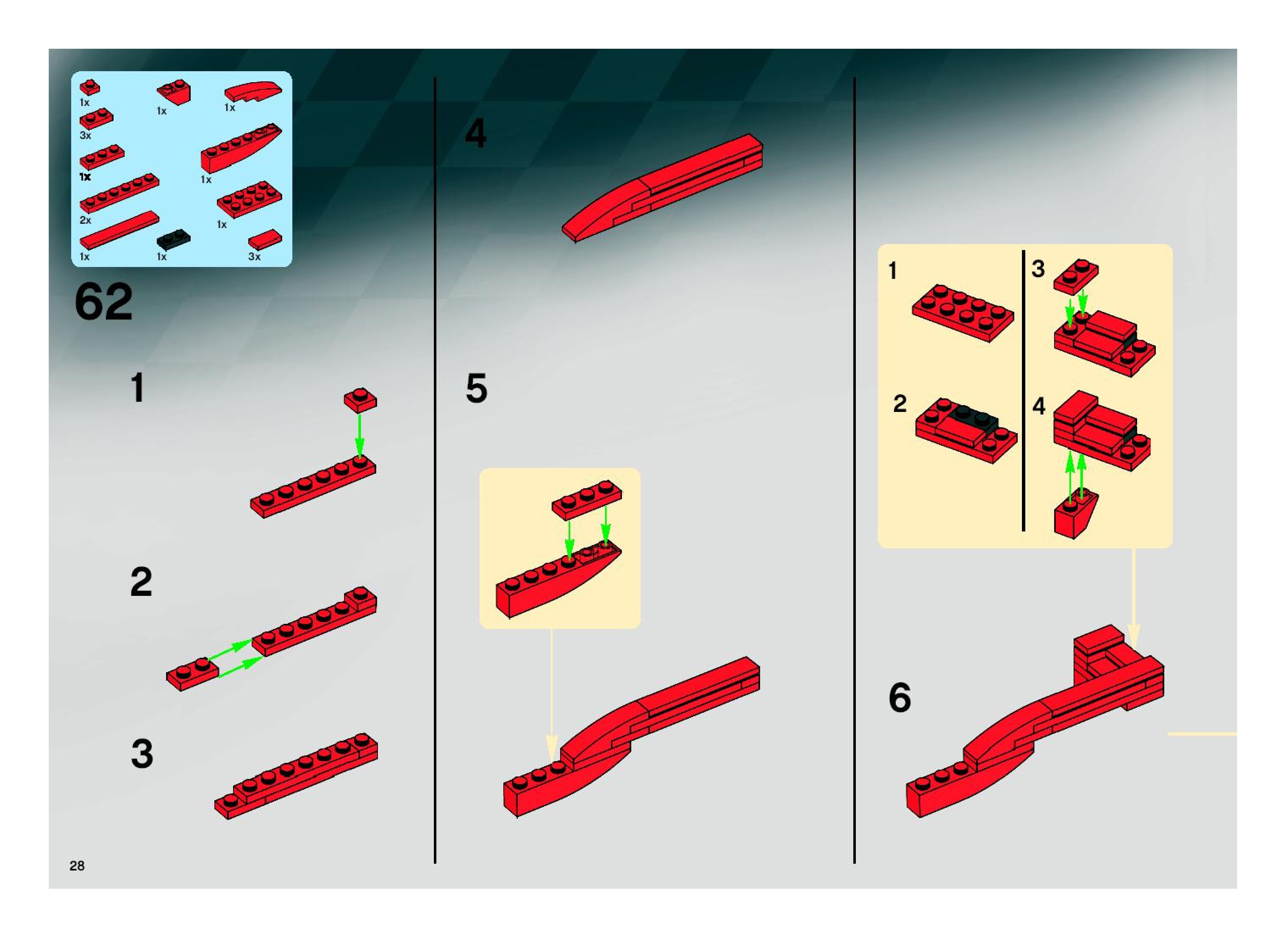 The assembly guide is prepared in a very understandable way for children and adult LEGO enthusiasts. A total of 672 picture galleries are shown, explaining the step-by-step construction stages for 2 different structures.