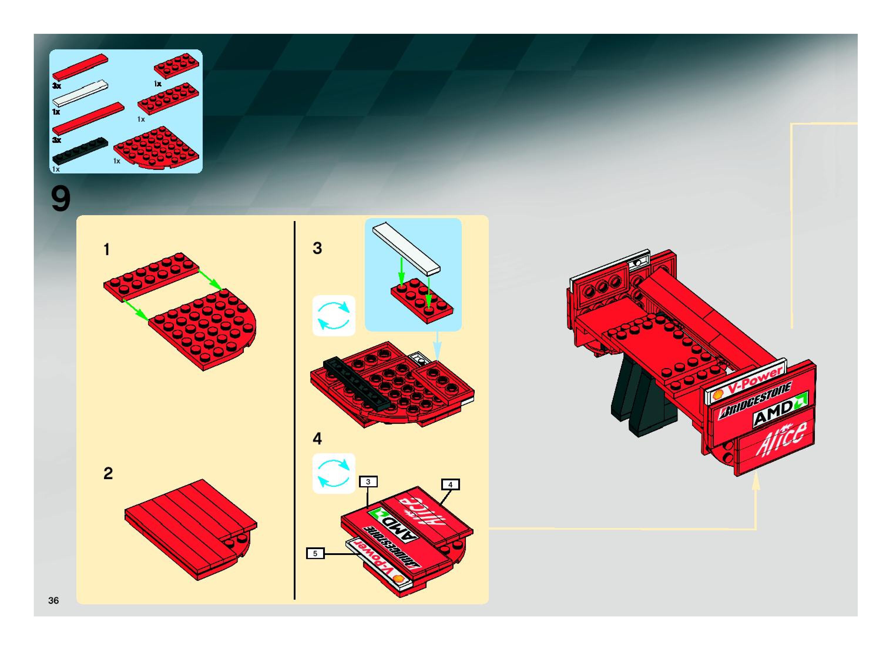 On this page you can find the original construction manual for the LEGO 8157 set. With the assembly manual you can easily learn how to build the 8157 Ferrari F1 1:9 step by step. The set was released in 2008.