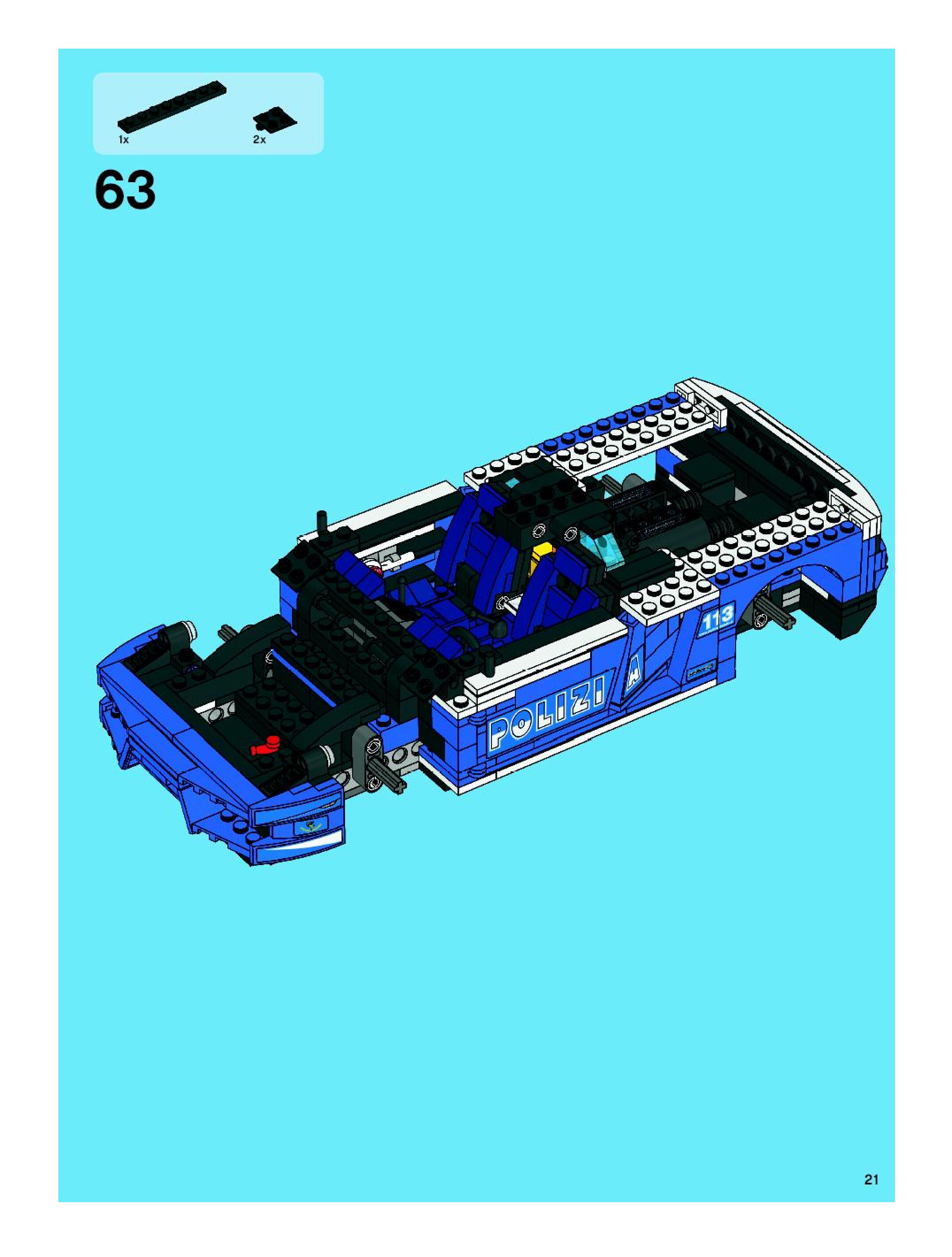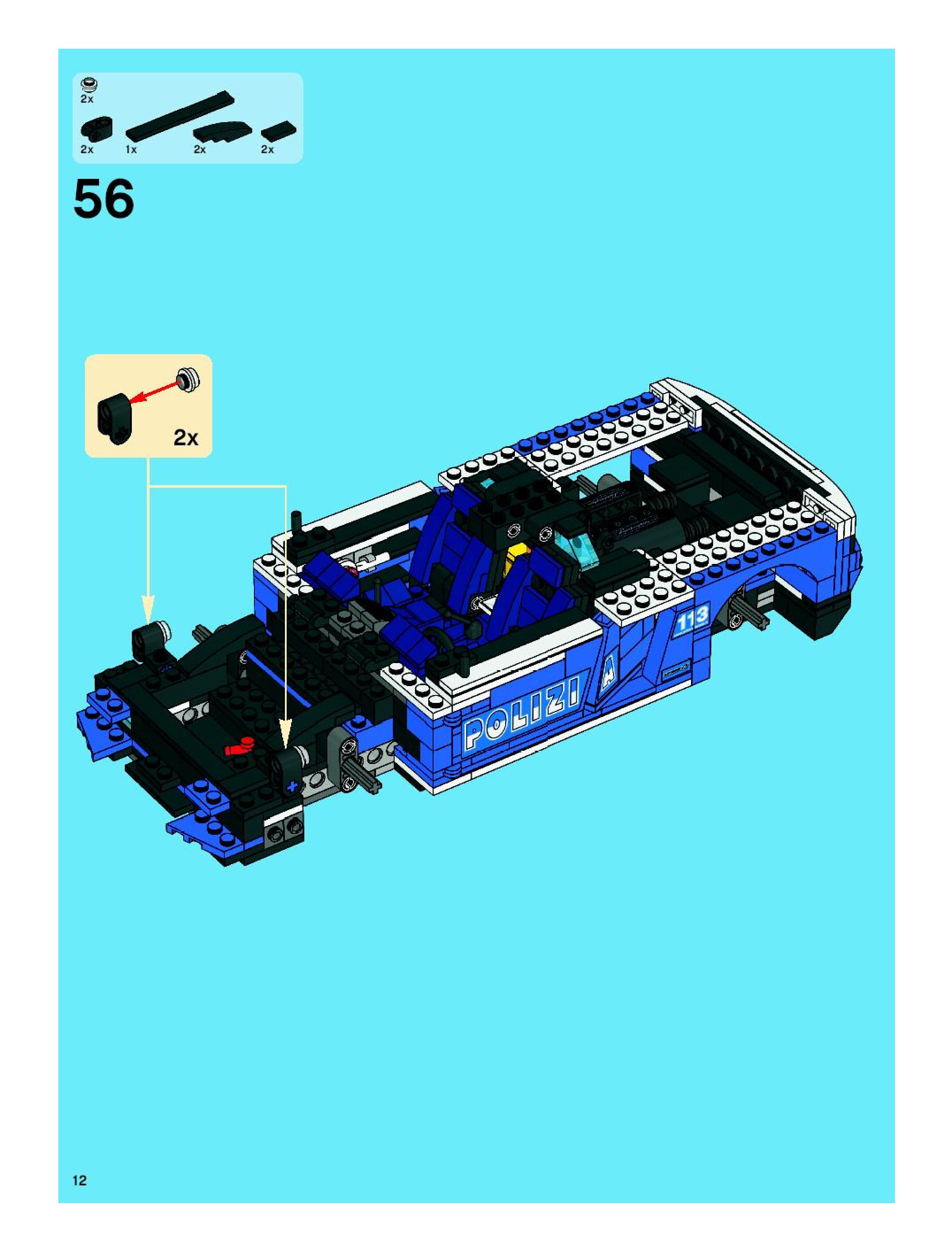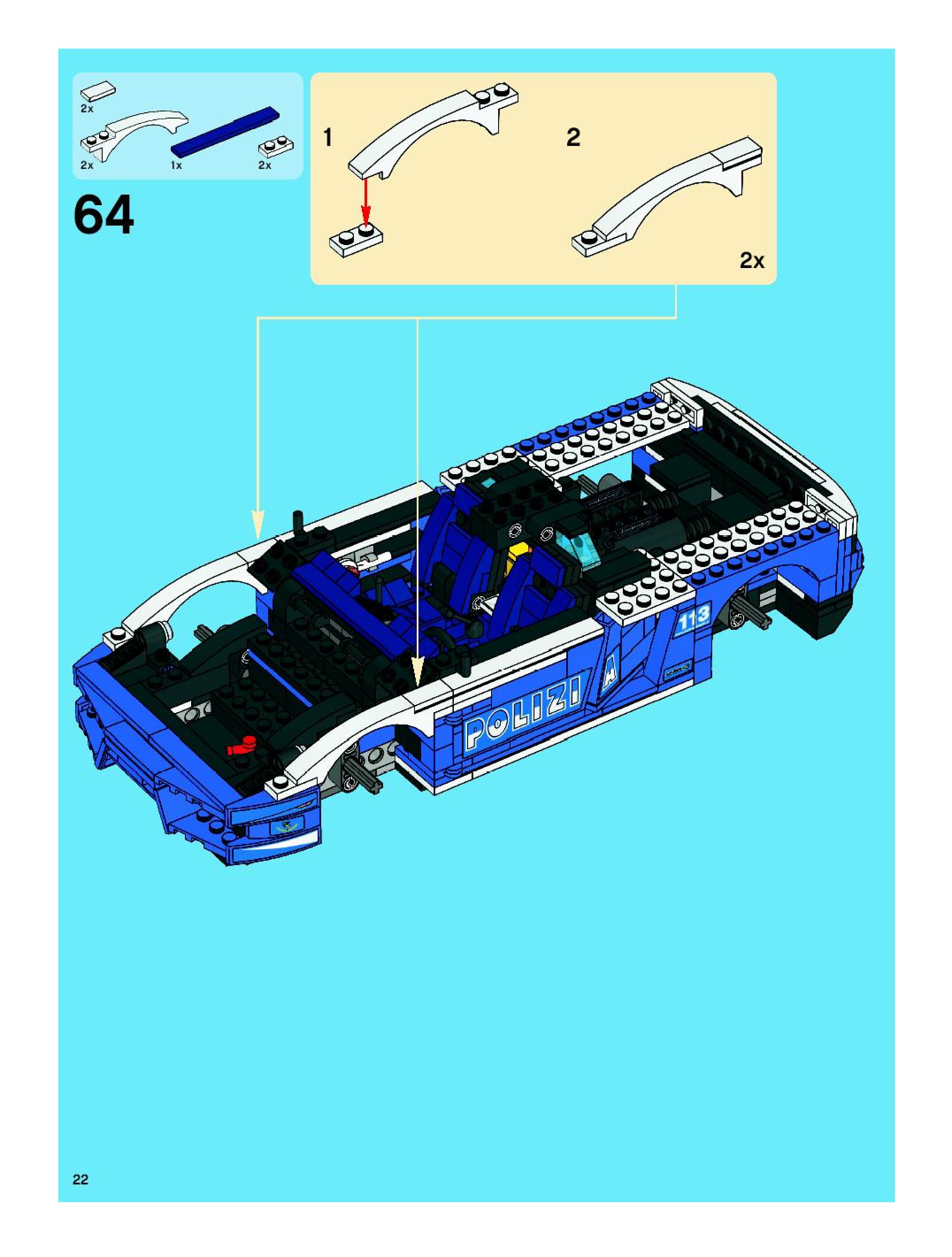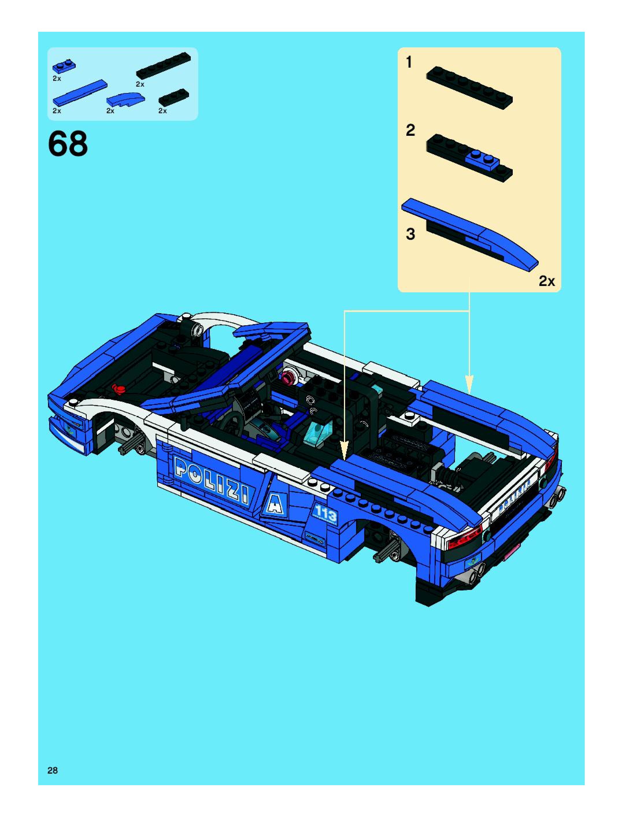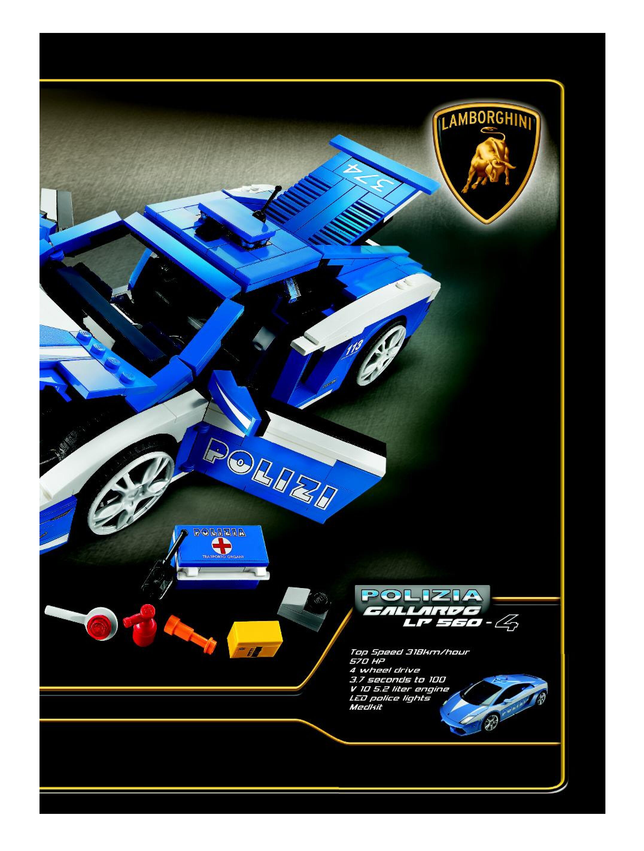 On this page you can find the original construction manual for the LEGO 8214 set. With the assembly manual you can easily learn how to build the 8214 Gallardo LP 560-4 Polizia step by step. The set was released in 2010.