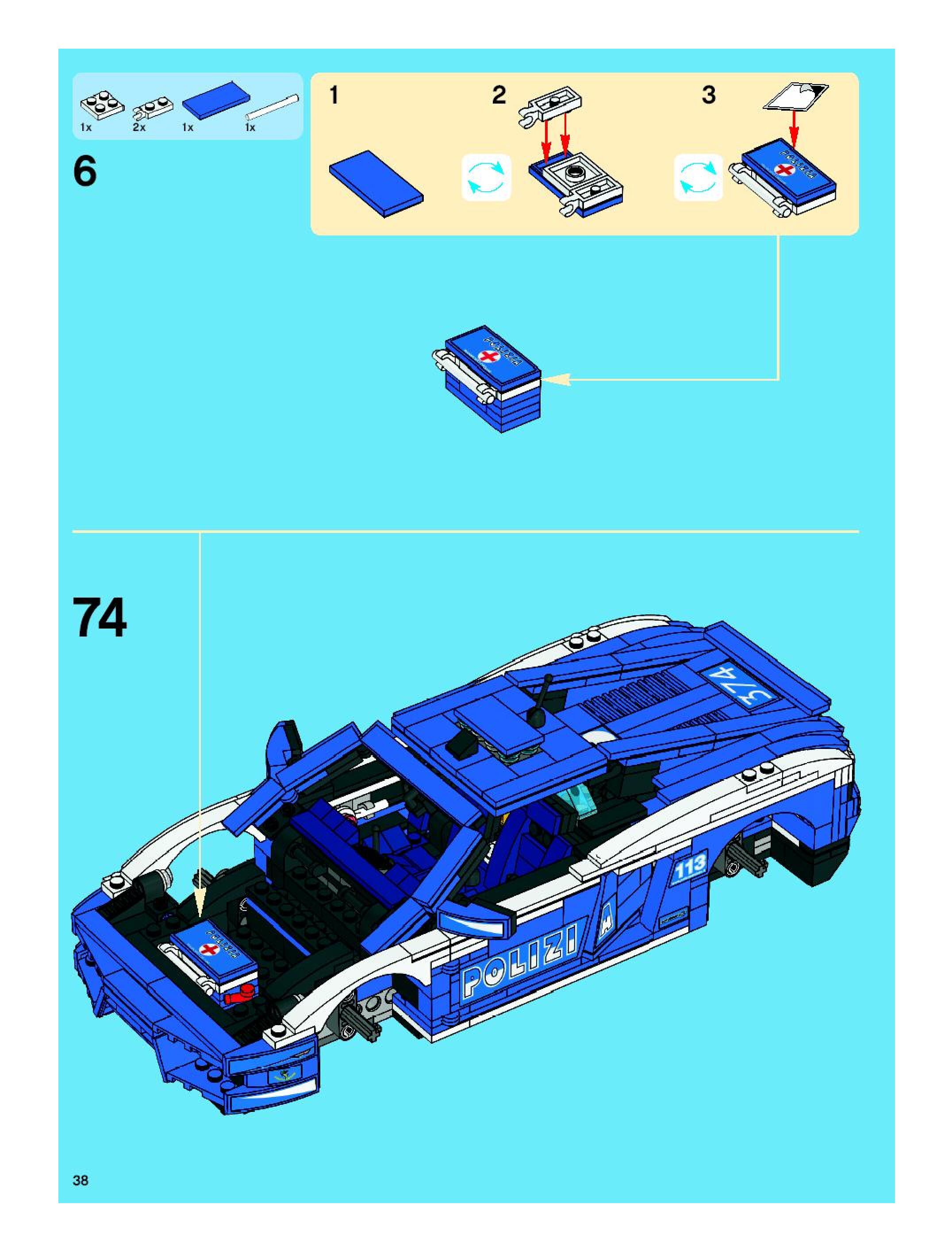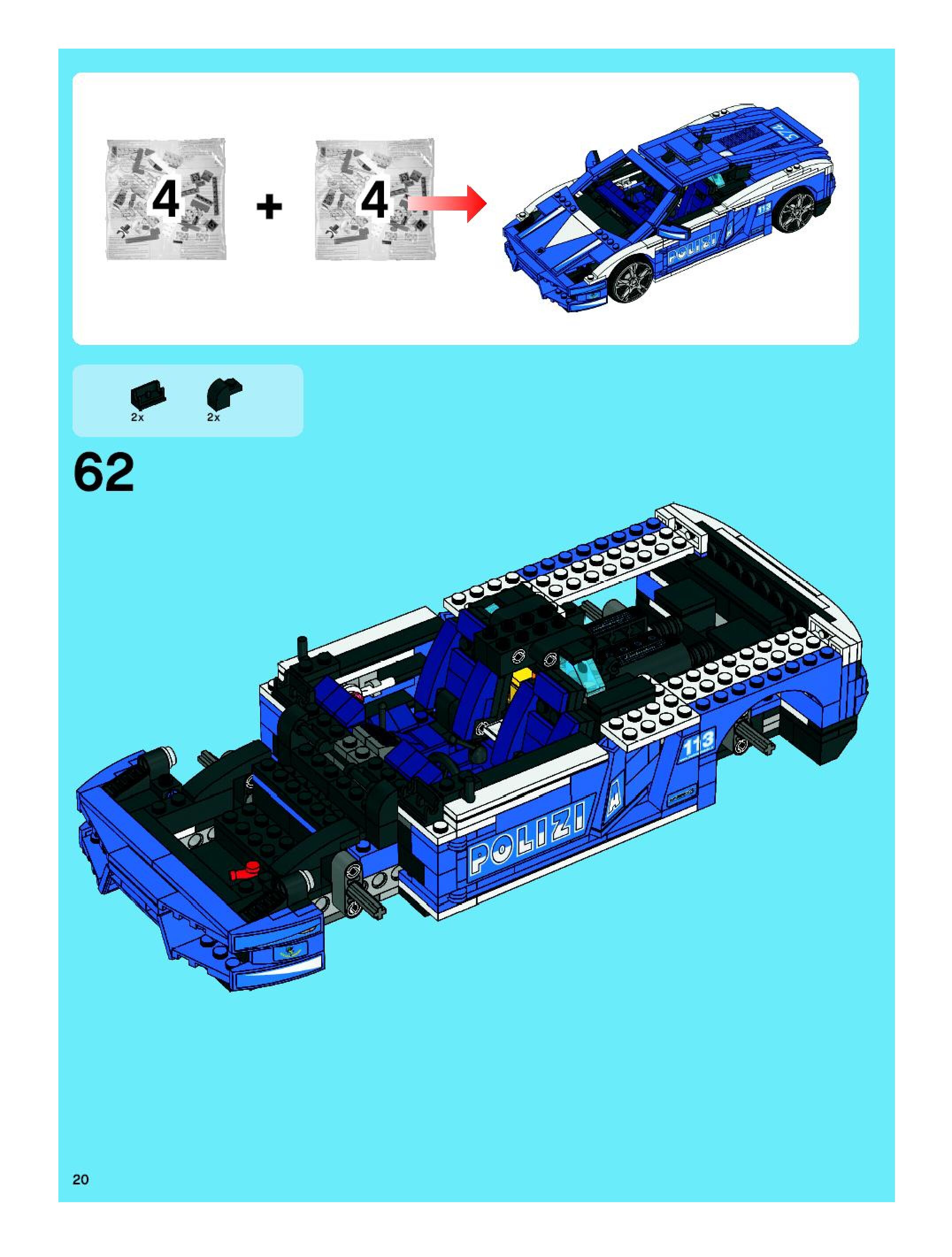This page shares information about LEGO 8214 Gallardo LP 560-4 Polizia manual, LEGO 8214 PDF instructions, LEGO 8214 Gallardo LP 560-4 Polizia building guide online, How to build 8214 Gallardo LP 560-4 Polizia LEGO.