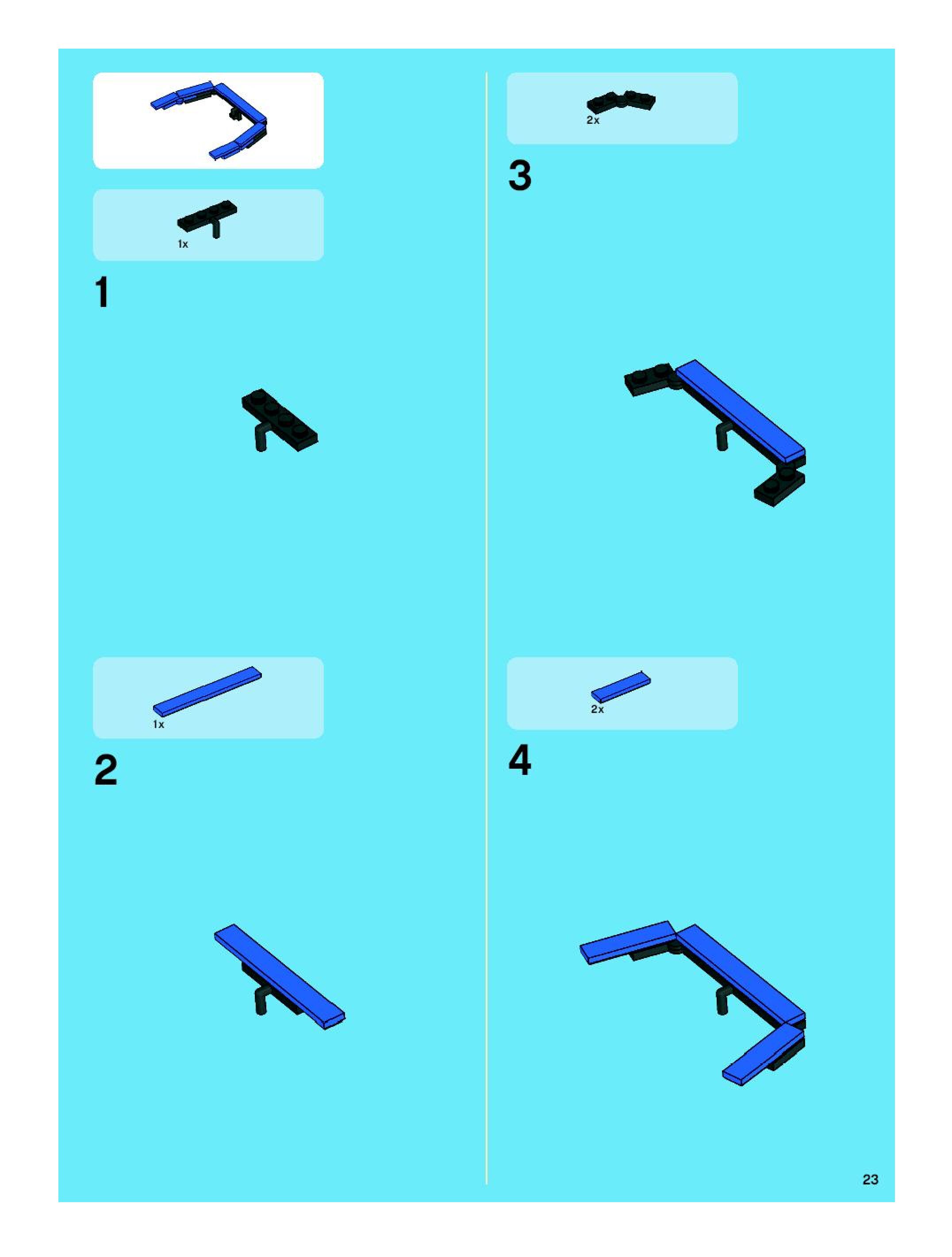 The assembly guide is prepared in a very understandable way for children and adult LEGO enthusiasts. A total of 112 picture galleries are shown, explaining the step-by-step construction stages for 2 different structures.