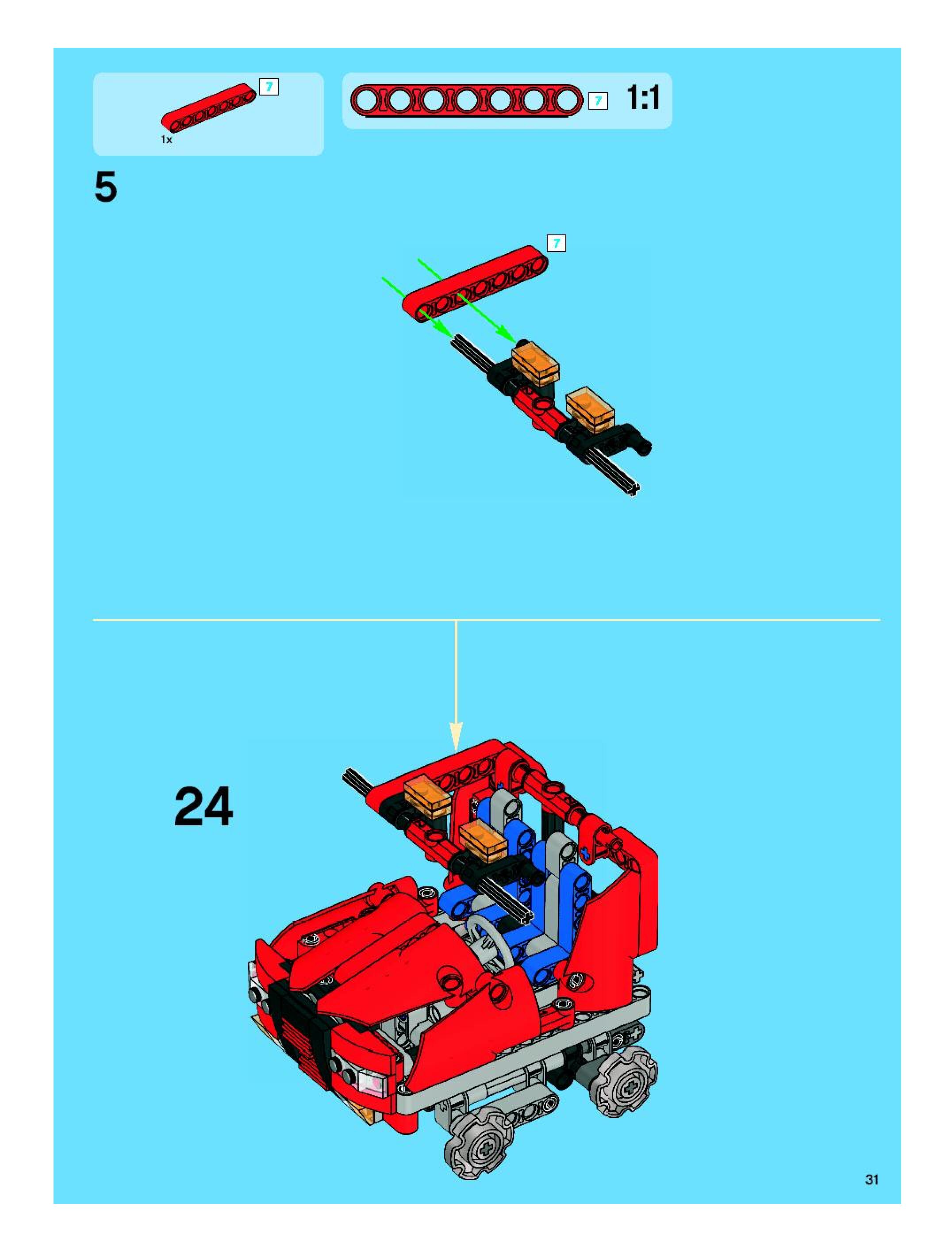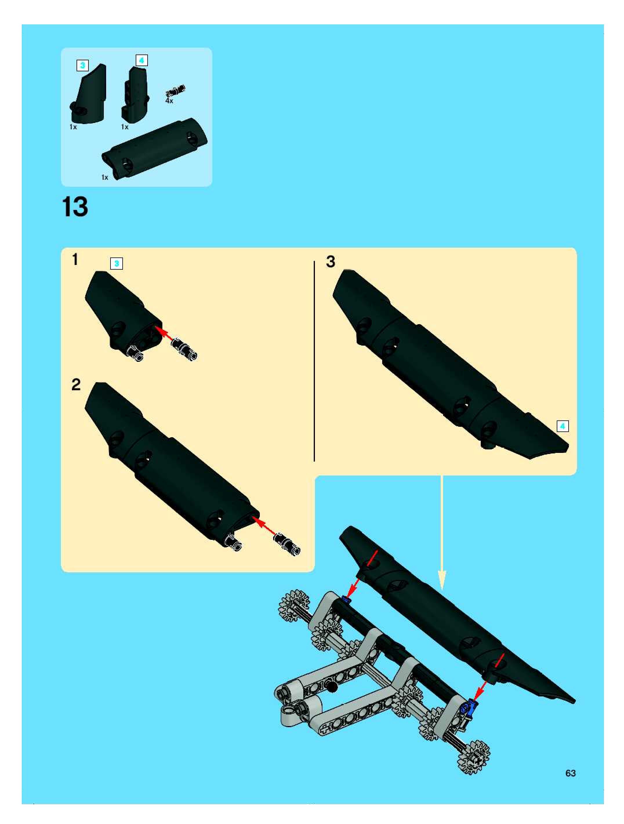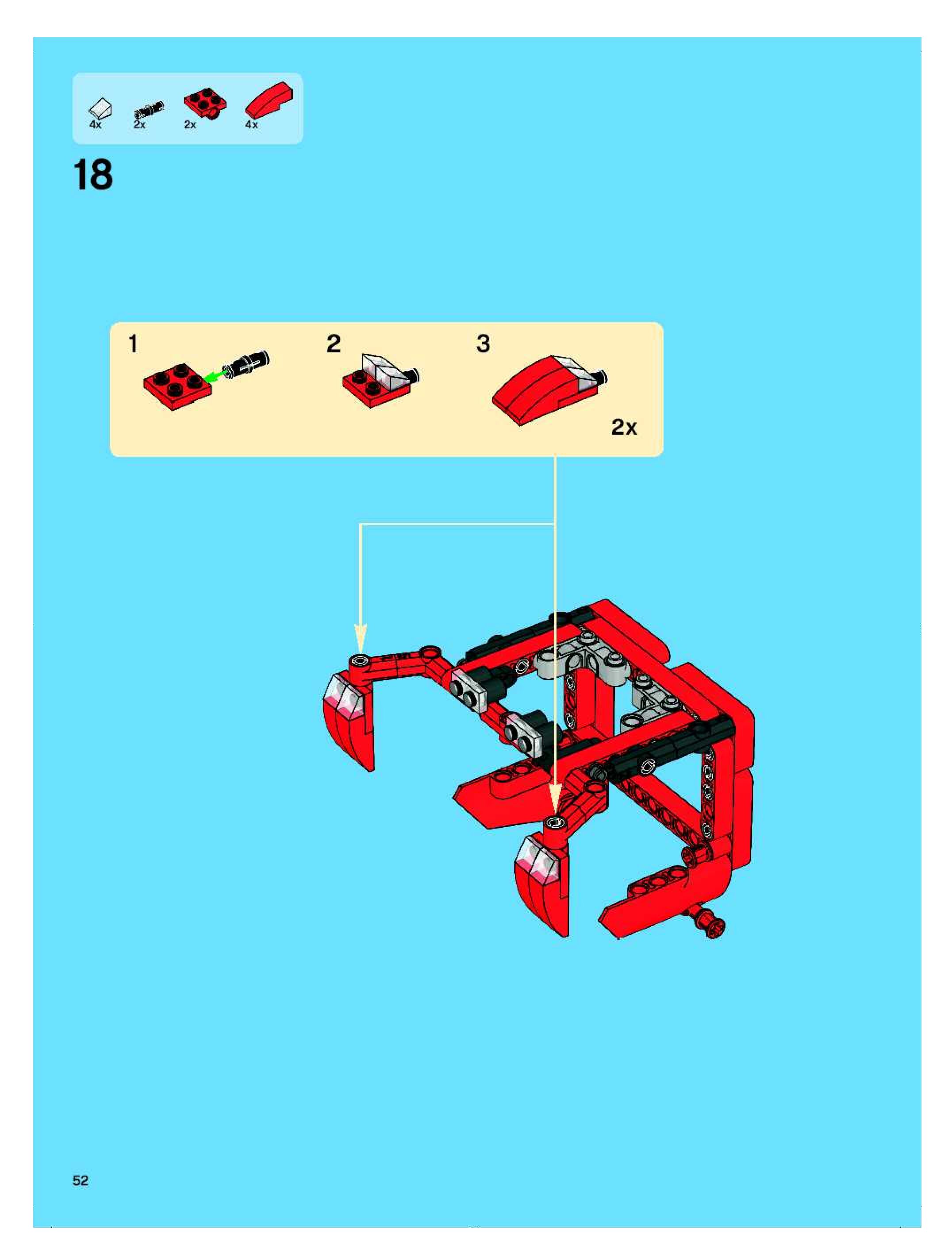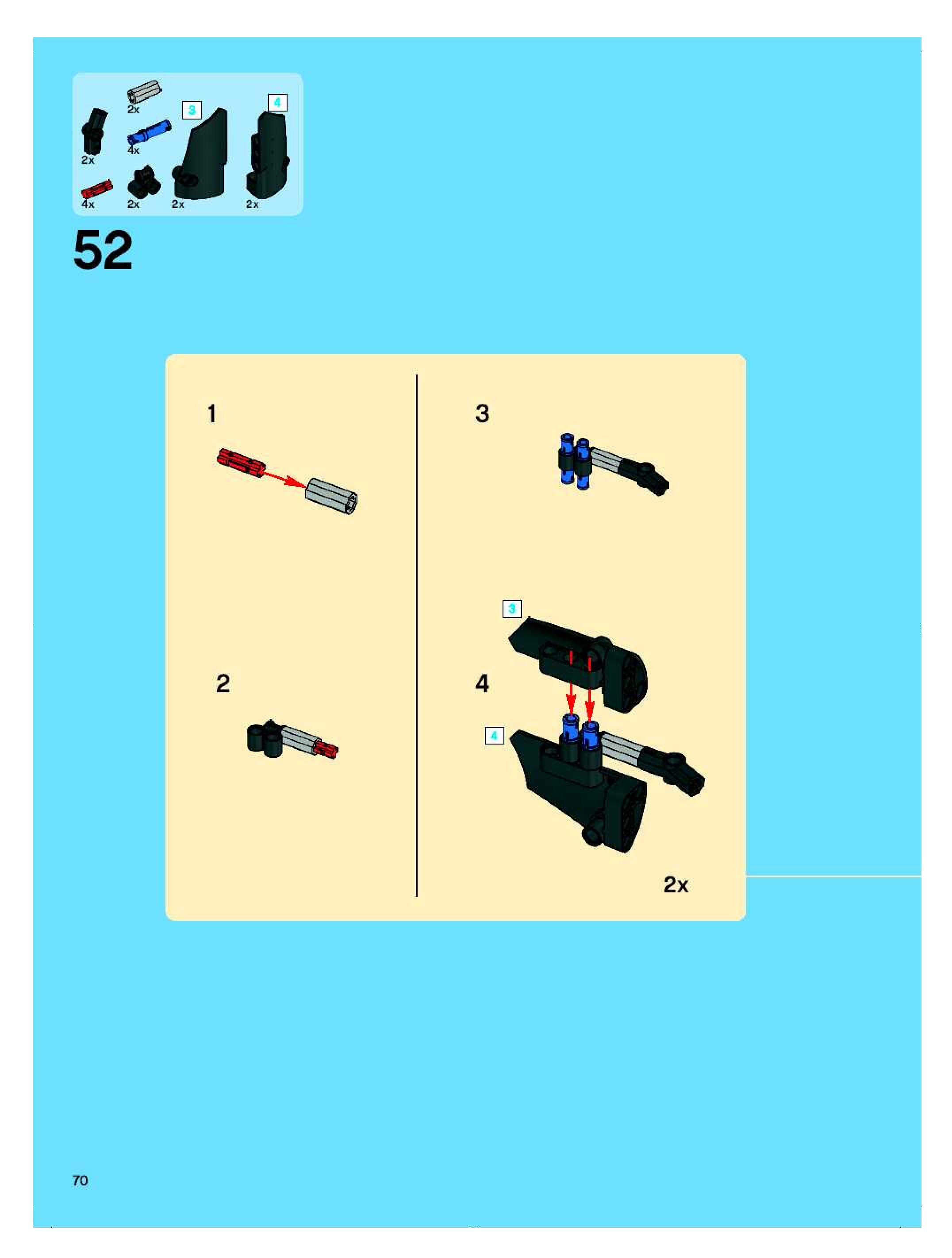 The assembly guide is prepared in a very understandable way for children and adult LEGO enthusiasts. A total of 140 picture galleries are shown, explaining the step-by-step construction stages for 2 different structures.