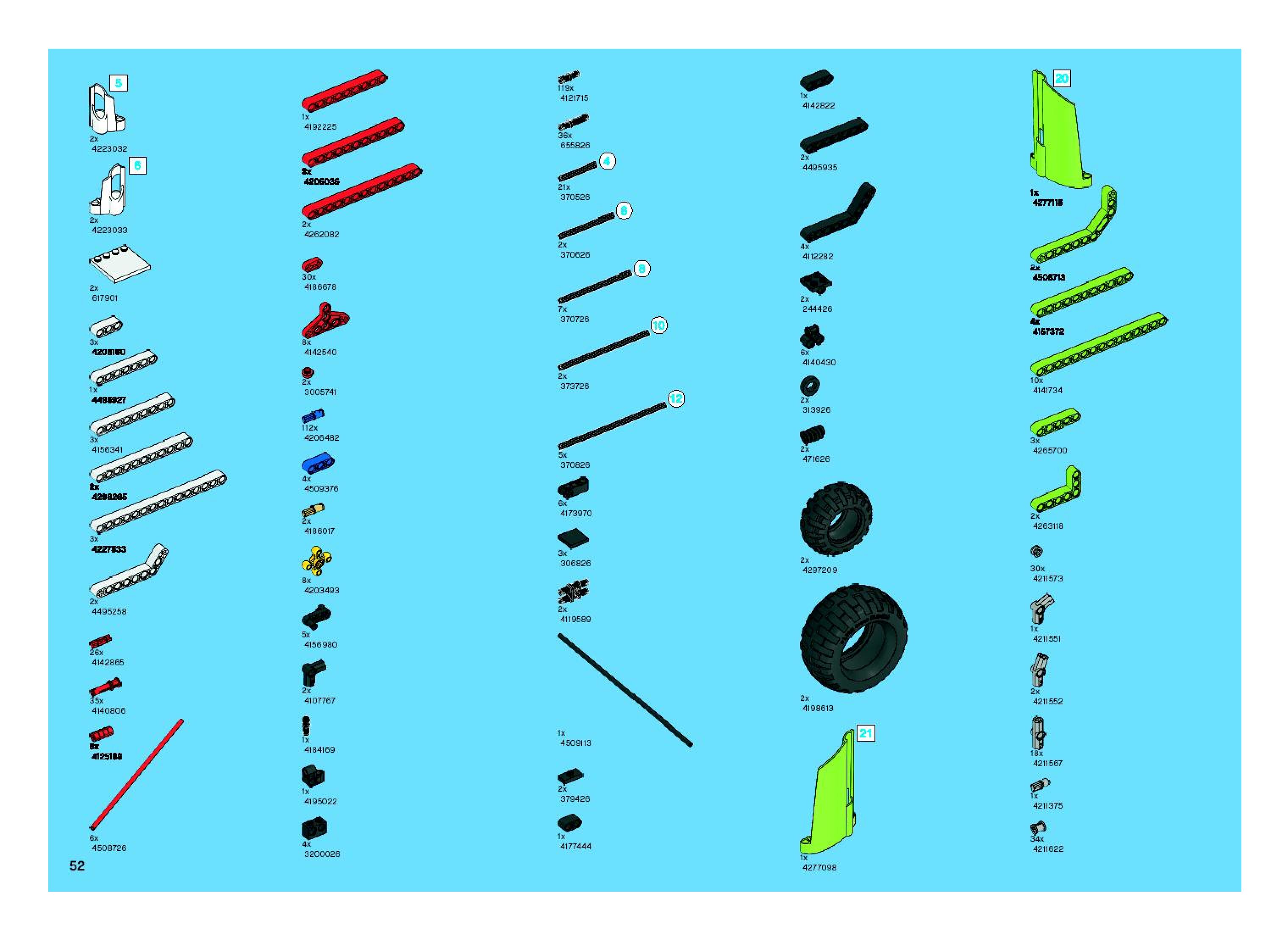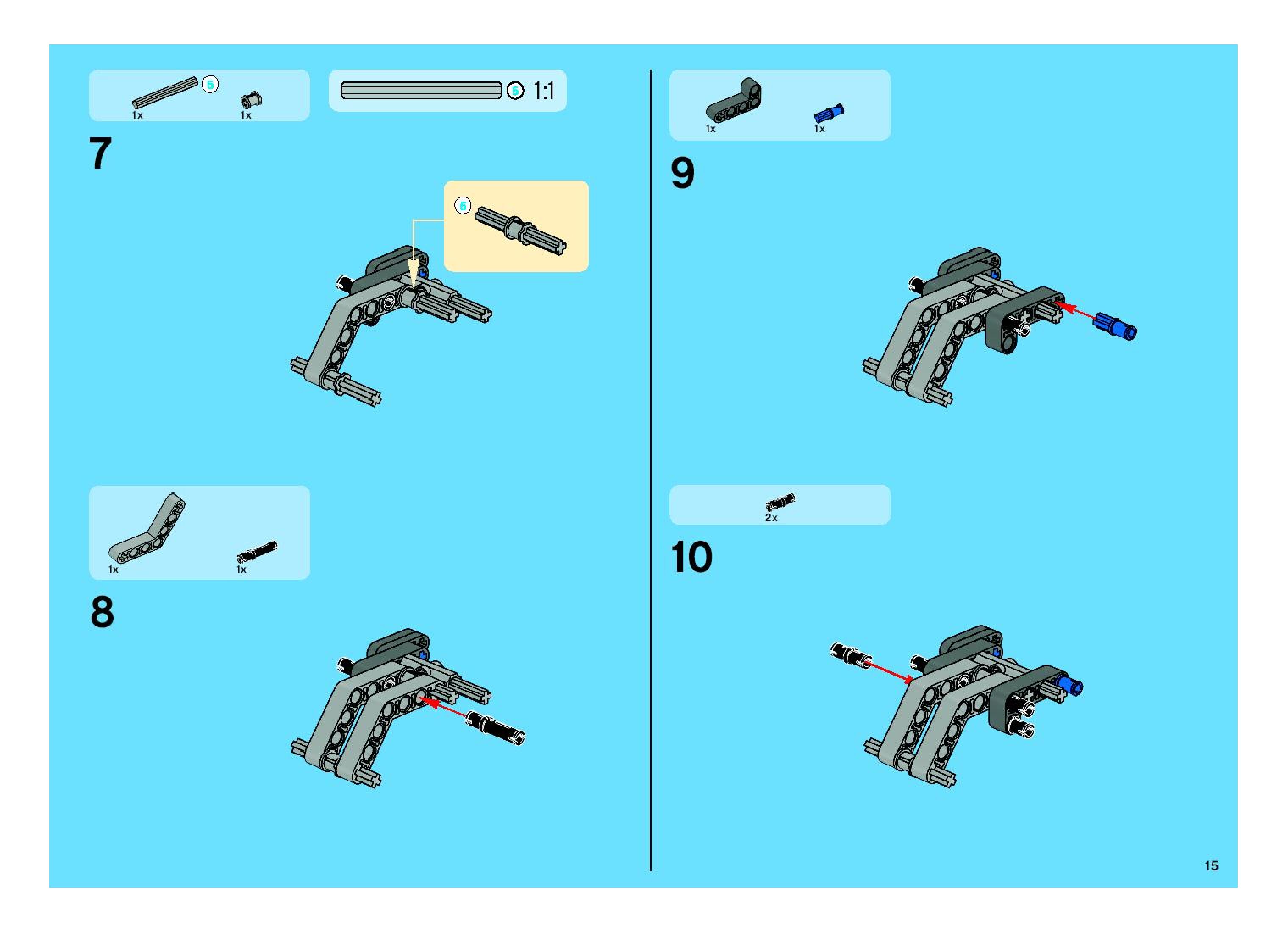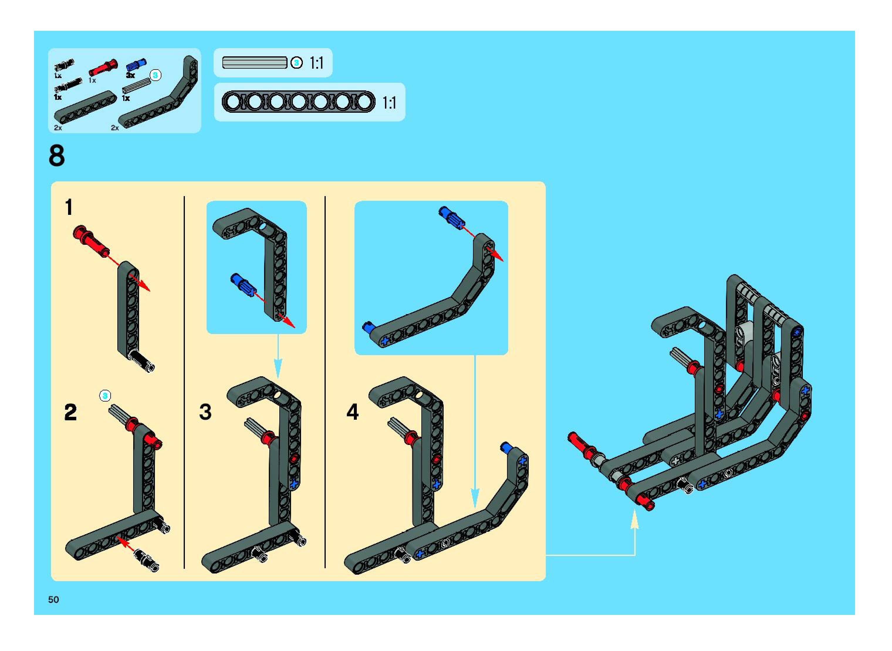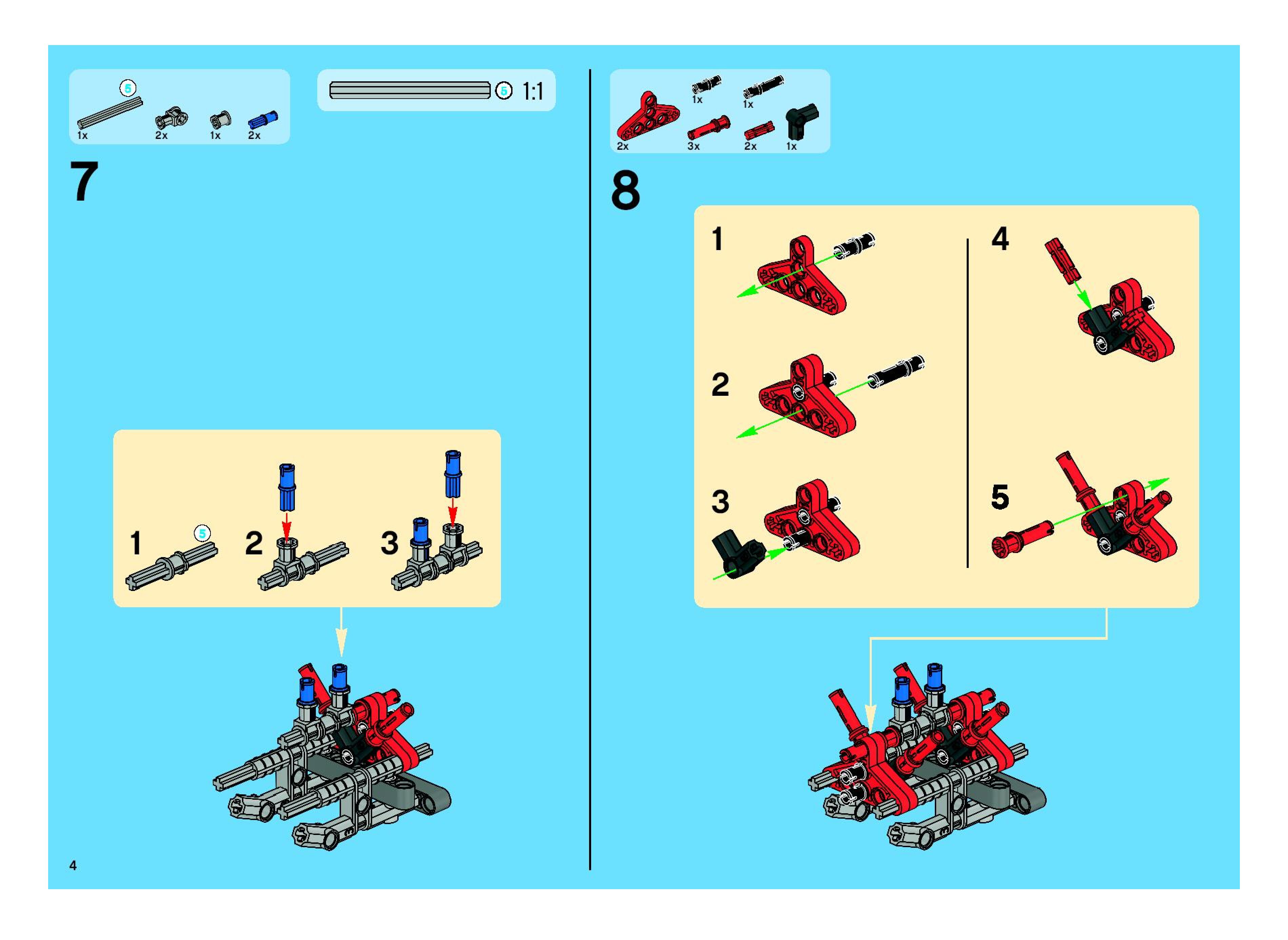 The assembly guide is prepared in a very understandable way for children and adult LEGO enthusiasts. A total of 208 picture galleries are shown, explaining the step-by-step construction stages for 4 different structures.