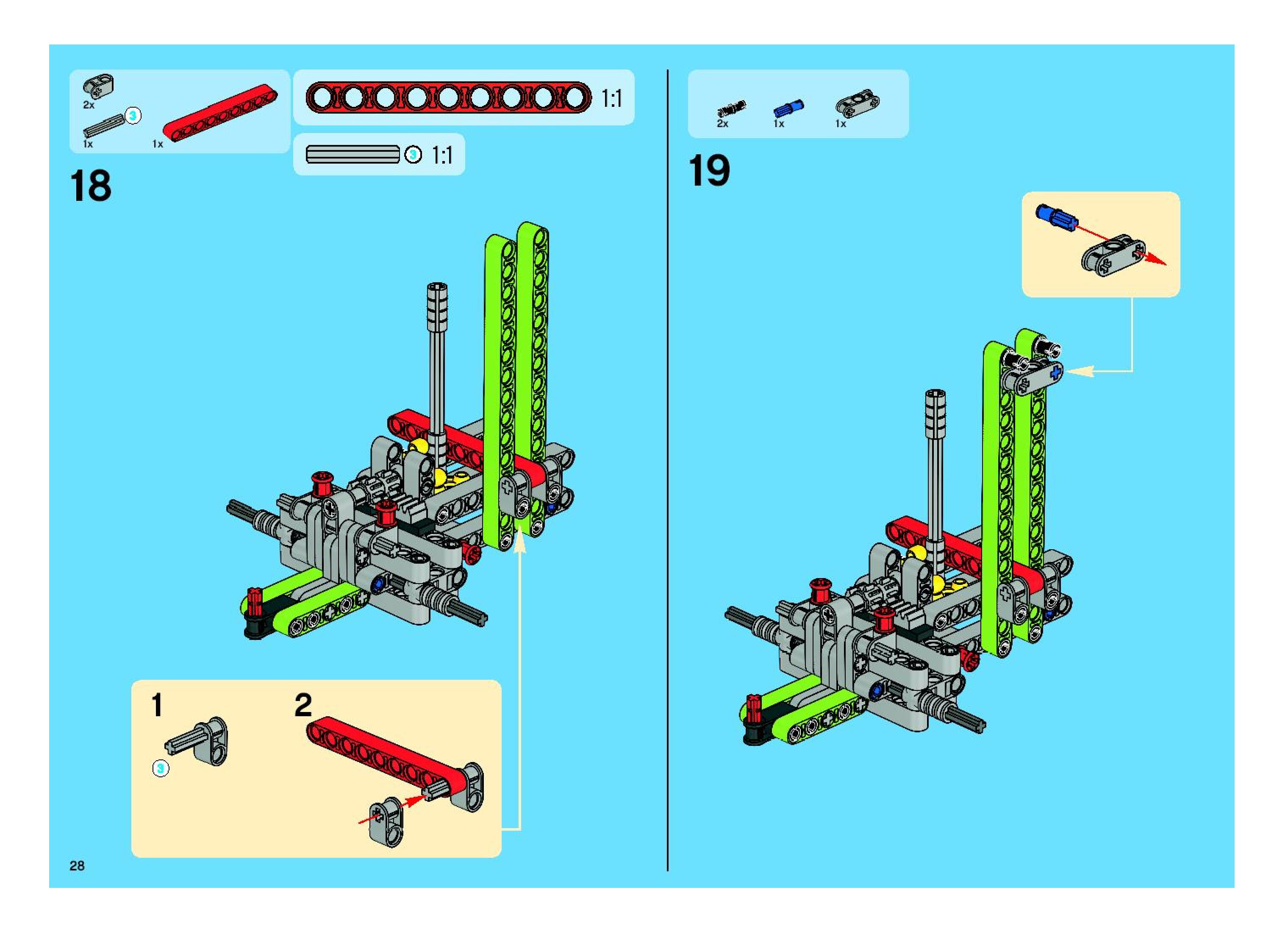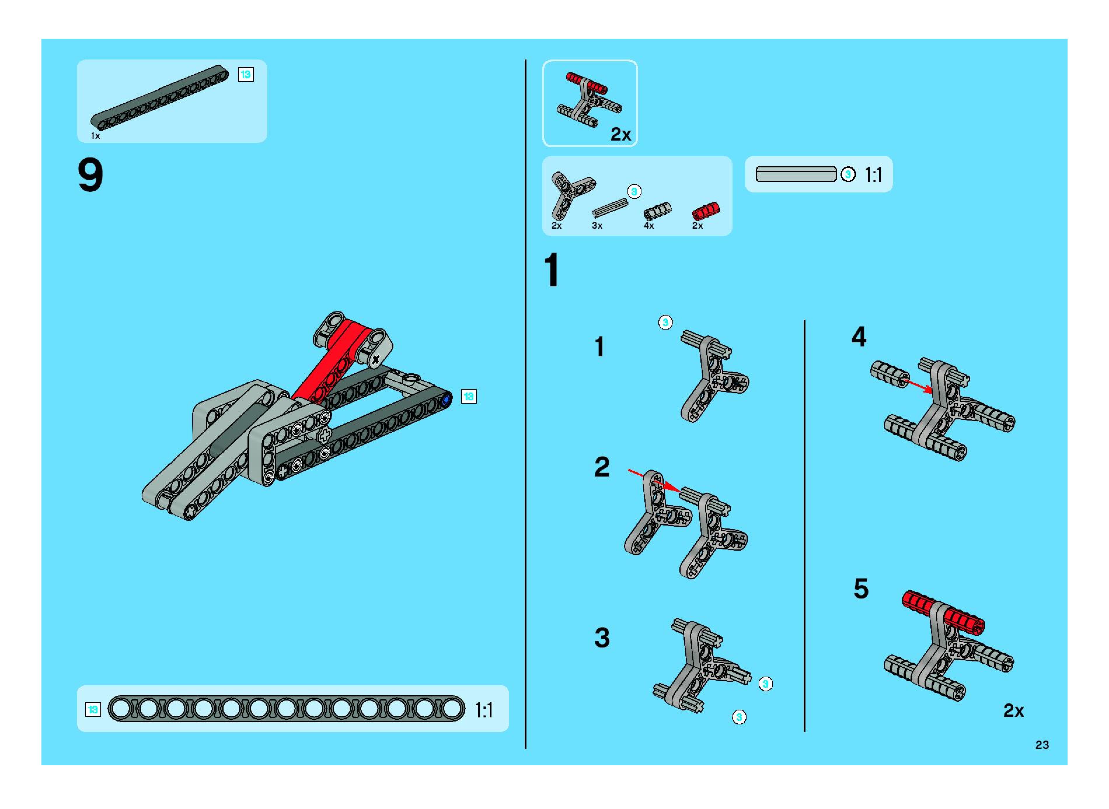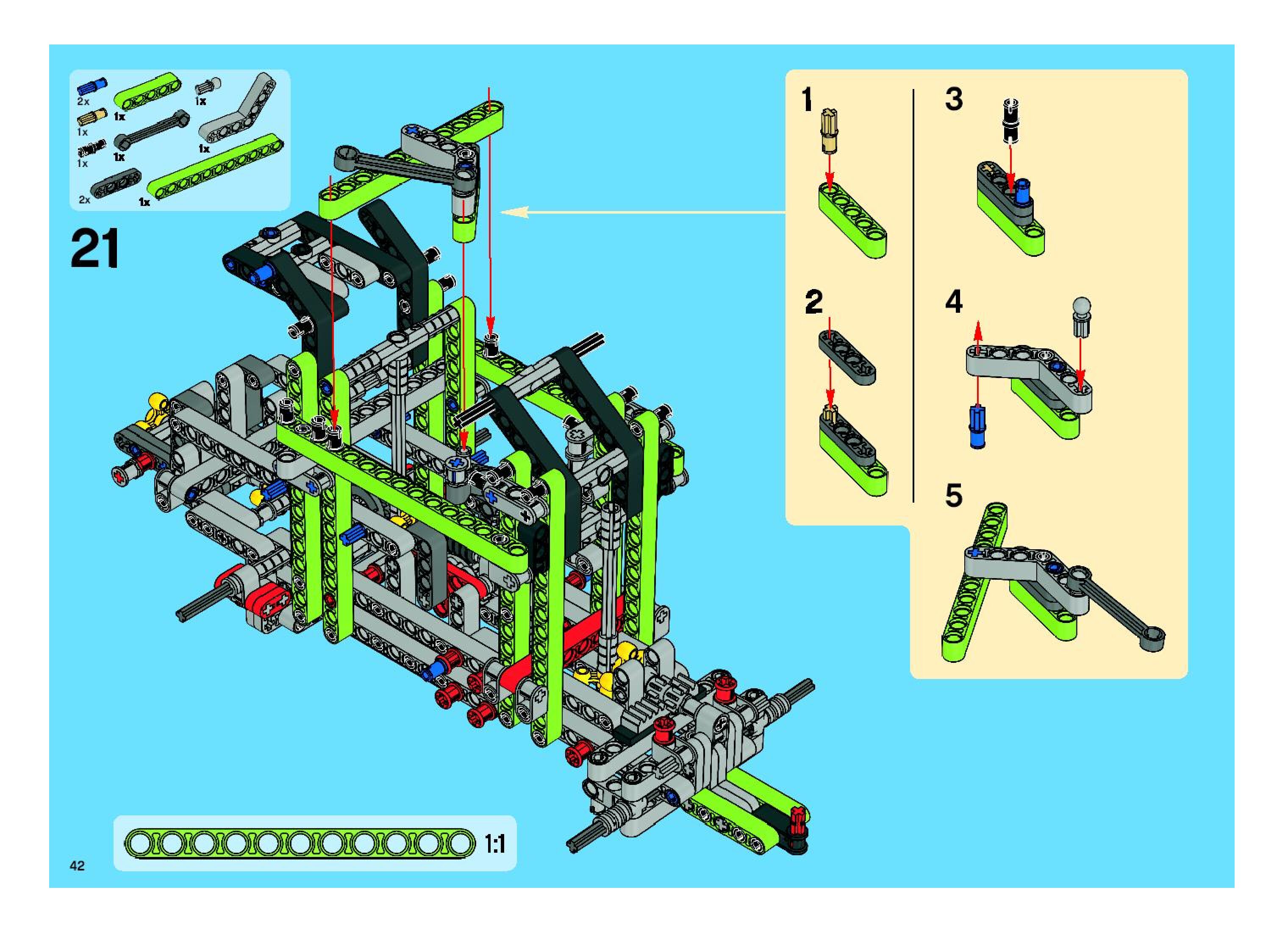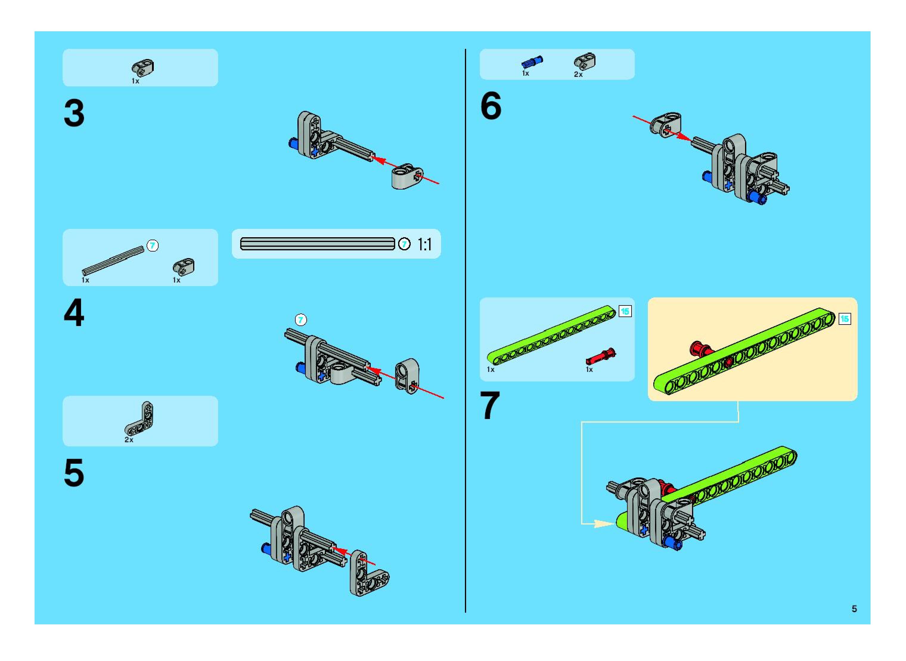 The assembly guide is prepared in a very understandable way for children and adult LEGO enthusiasts. A total of 208 picture galleries are shown, explaining the step-by-step construction stages for 4 different structures.