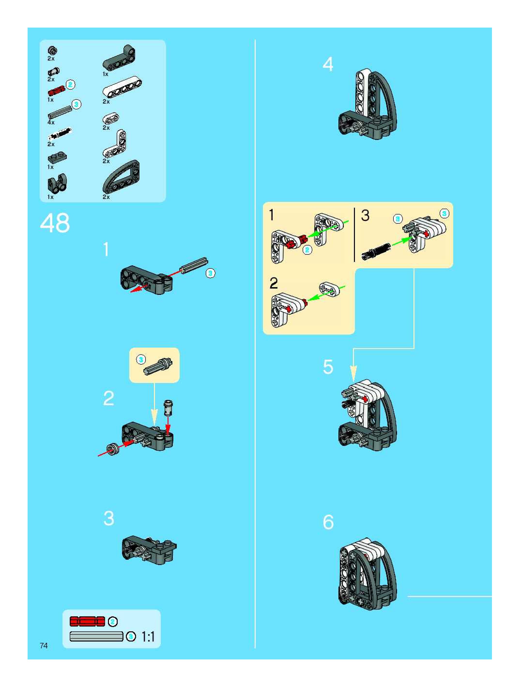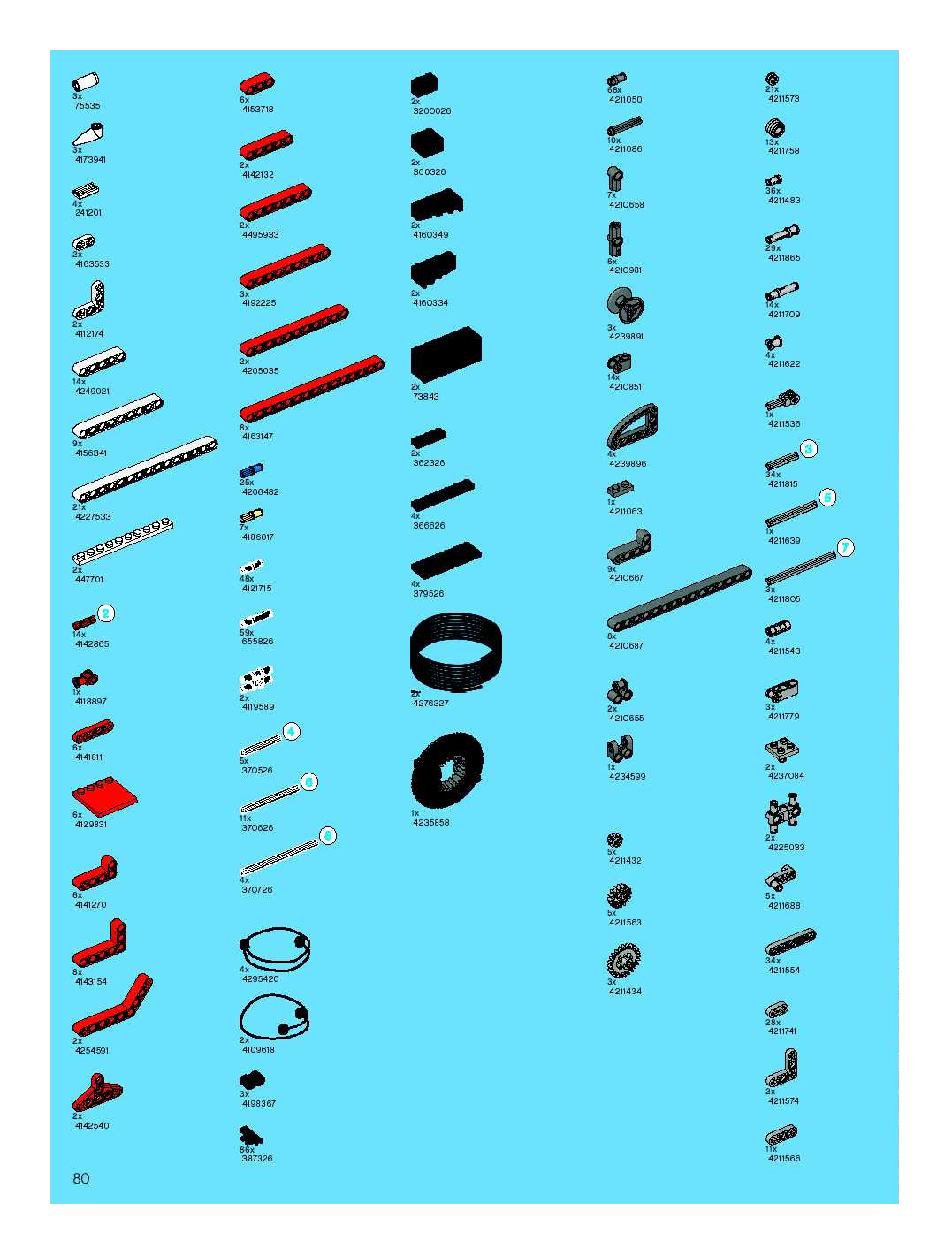 The assembly guide is prepared in a very understandable way for children and adult LEGO enthusiasts. A total of 108 picture galleries are shown, explaining the step-by-step construction stages for 2 different structures.