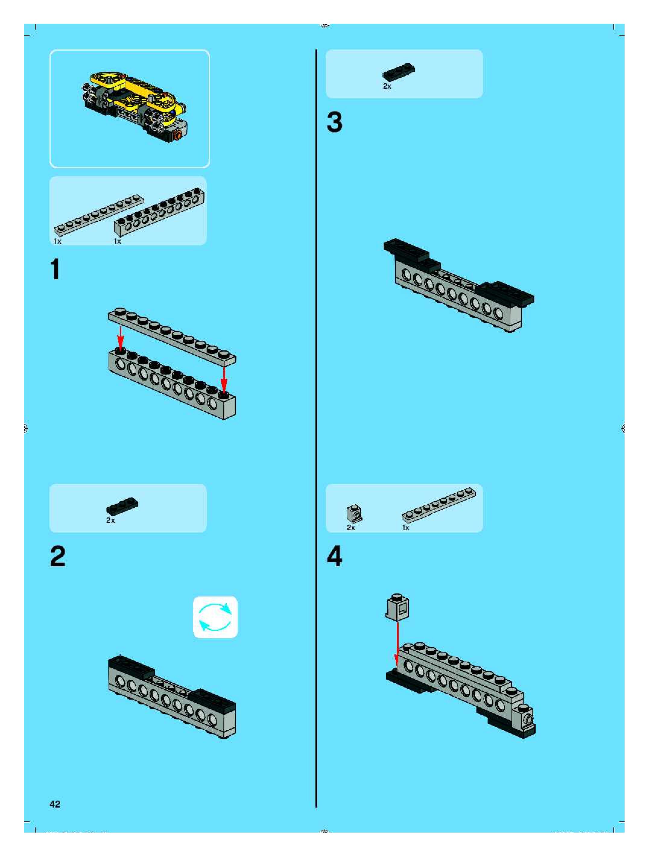 The assembly guide is prepared in a very understandable way for children and adult LEGO enthusiasts. A total of 384 picture galleries are shown, explaining the step-by-step construction stages for 4 different structures.