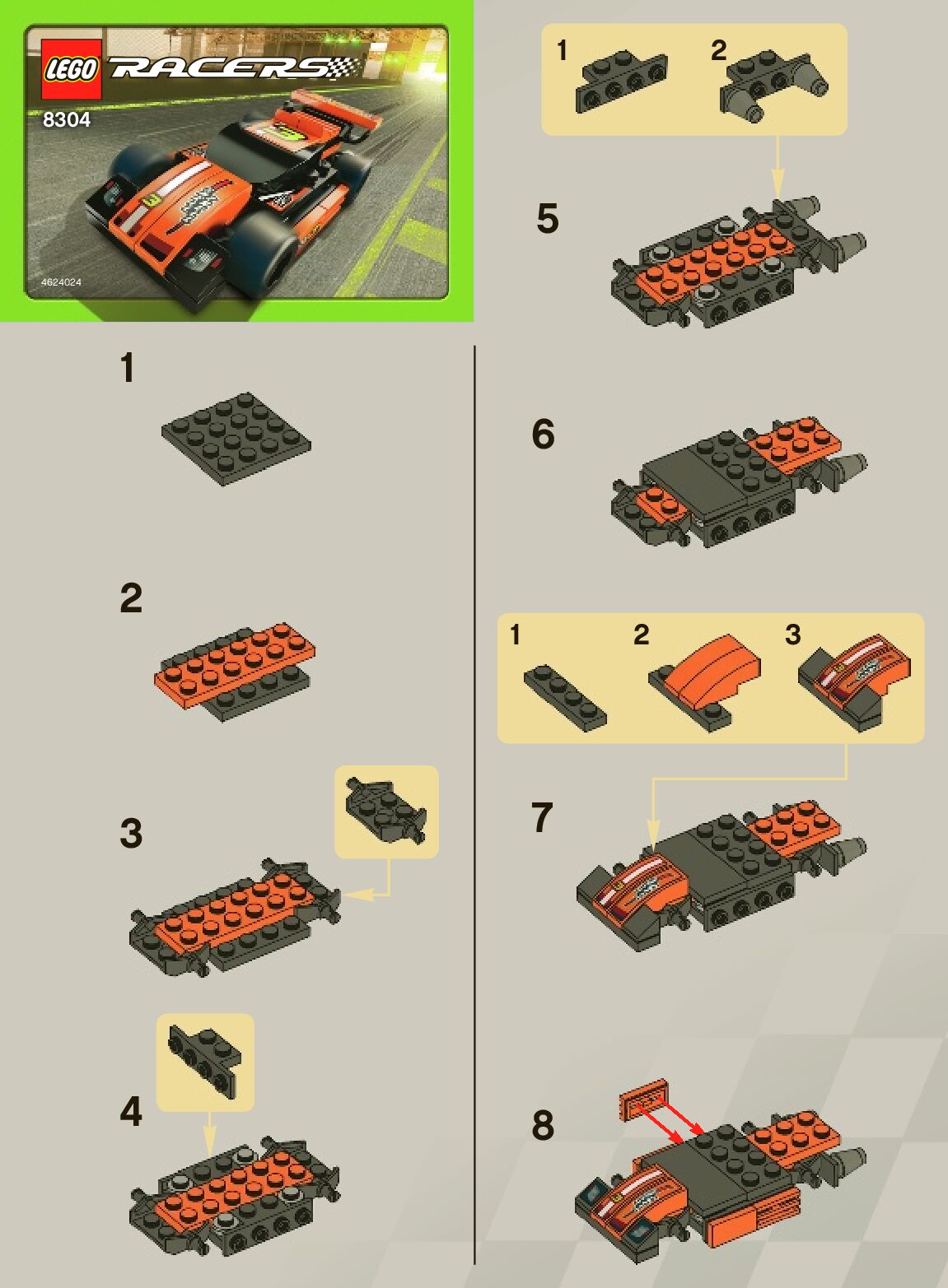 This page shares information about LEGO 8304 Smokin' Slickster manual, LEGO 8304 PDF instructions, LEGO 8304 Smokin' Slickster building guide online, How to build 8304 Smokin' Slickster LEGO.