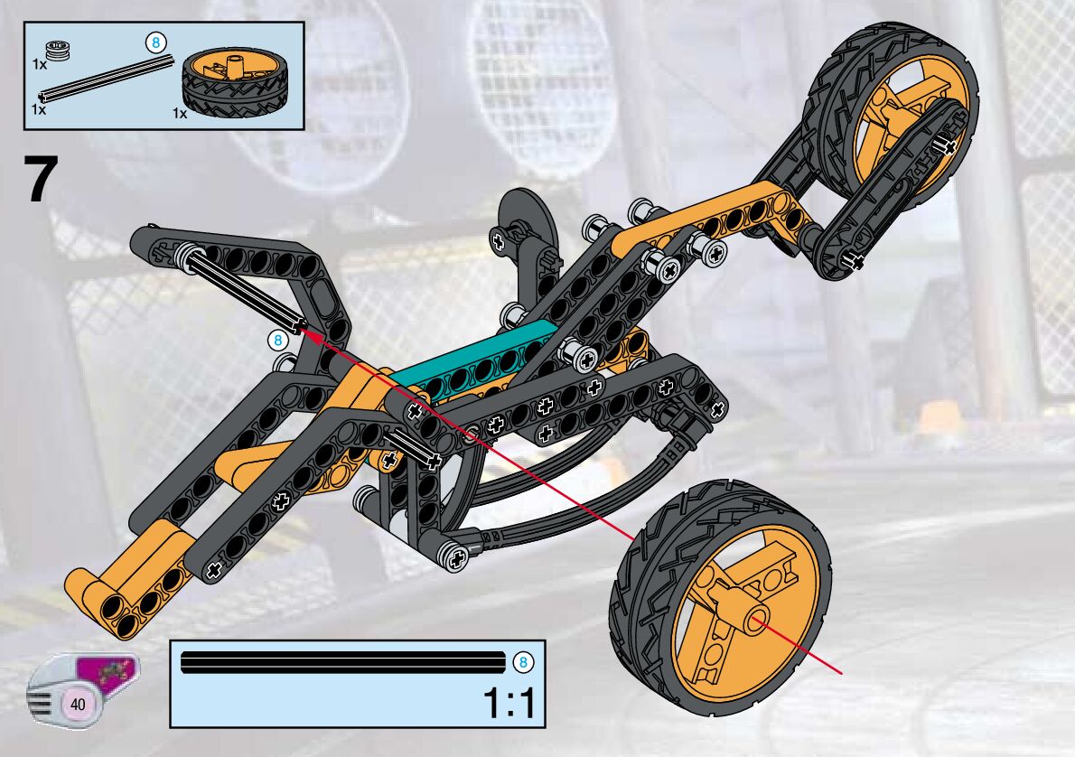 This page shares information about LEGO 8305 Duel Bikes manual, LEGO 8305 PDF instructions, LEGO 8305 Duel Bikes building guide online, How to build 8305 Duel Bikes LEGO.