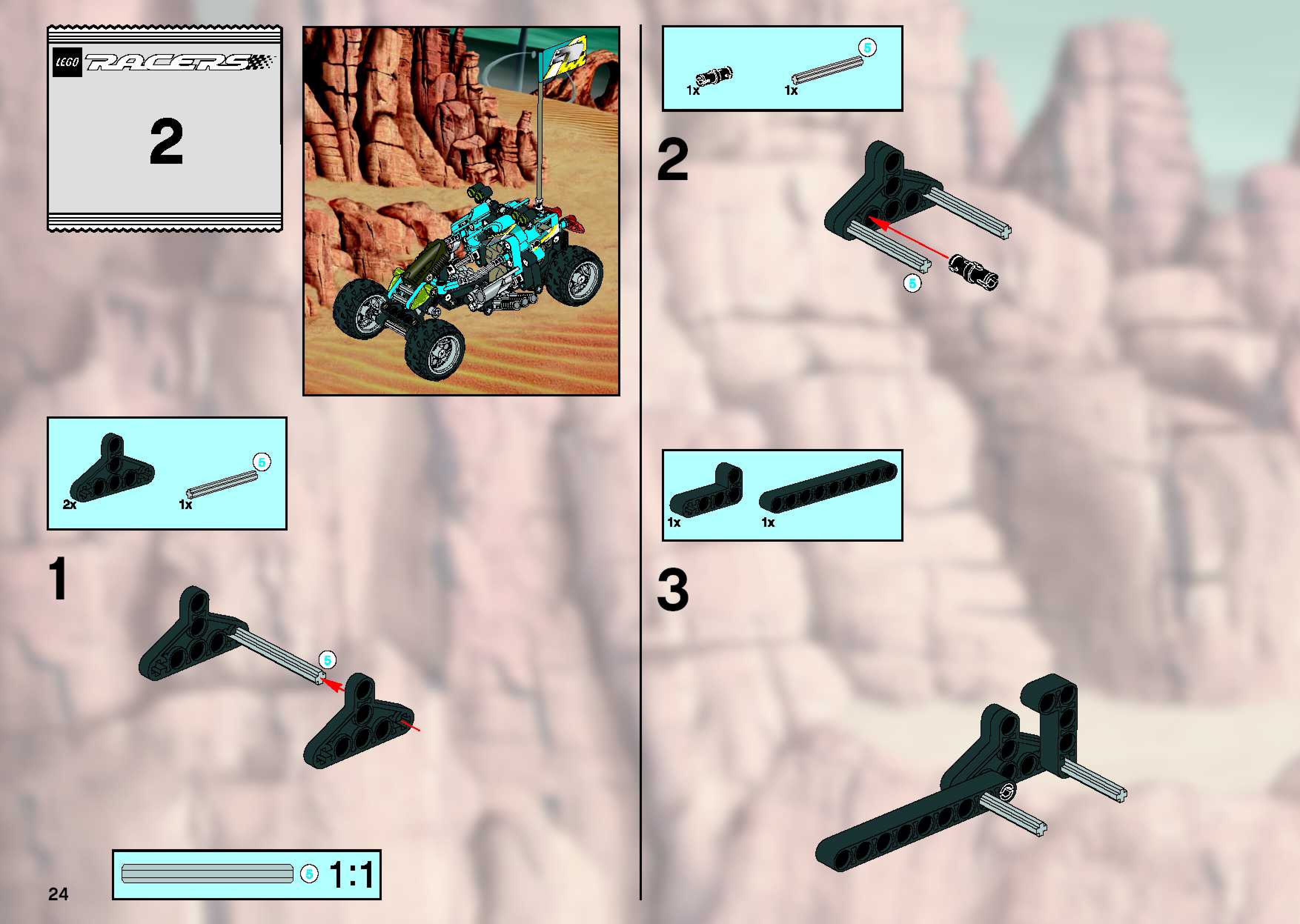 On this page you can find the original construction manual for the LEGO 8363 set. With the assembly manual you can easily learn how to build the 8363 Baja Desert Racers step by step. The set was released in 2003.
