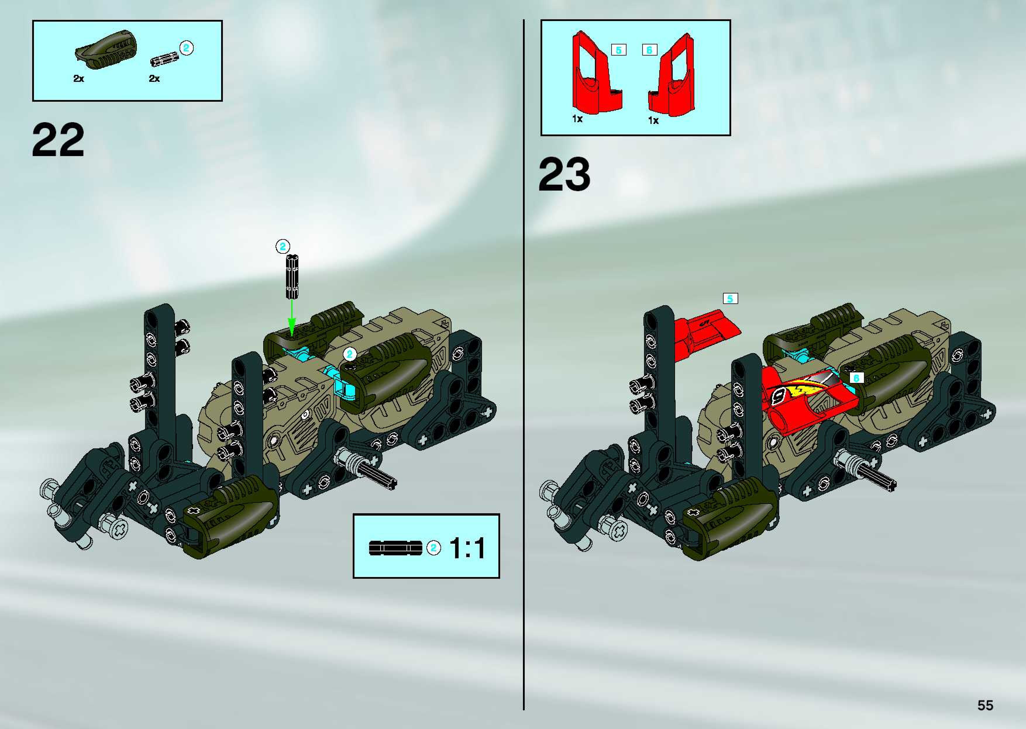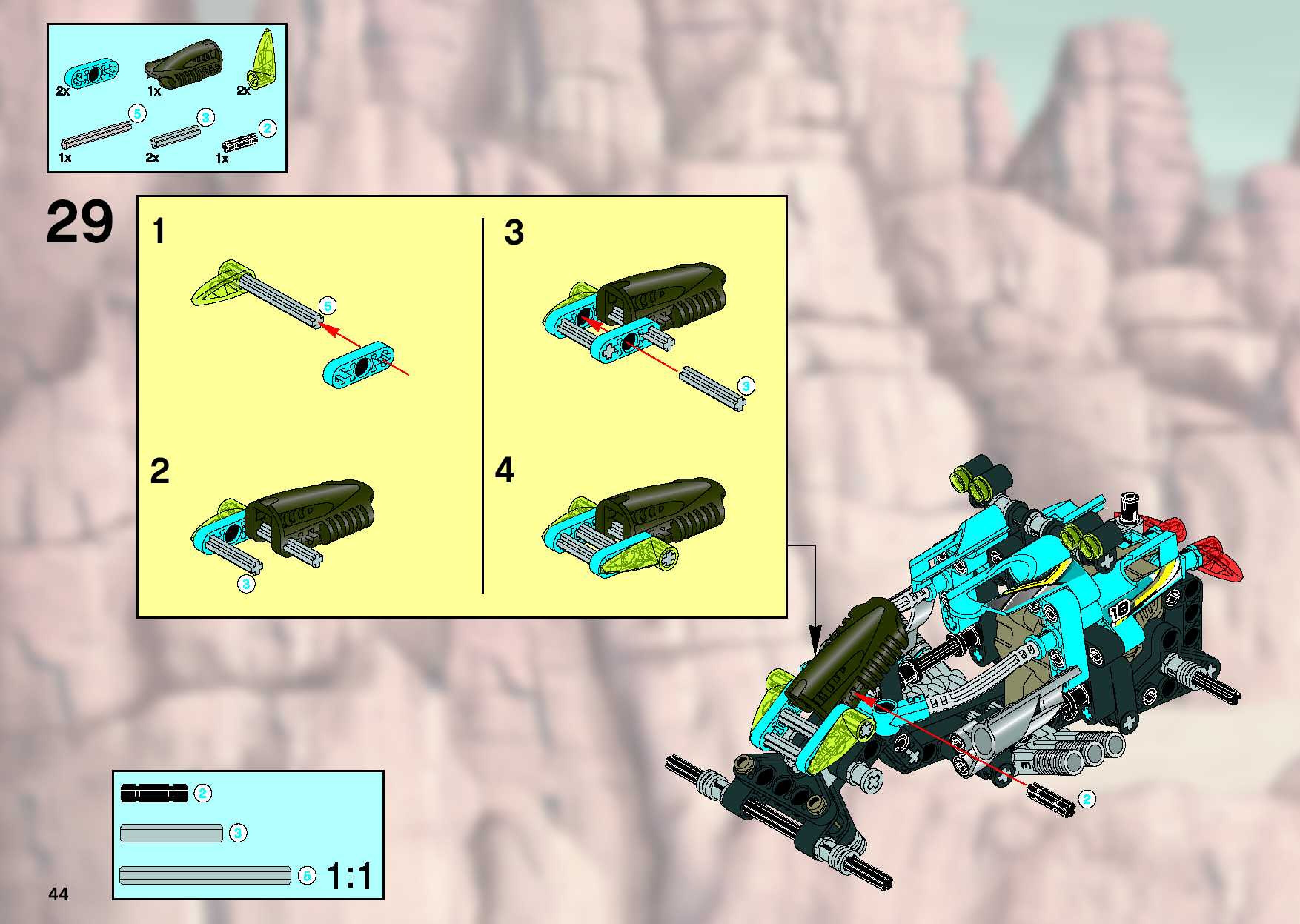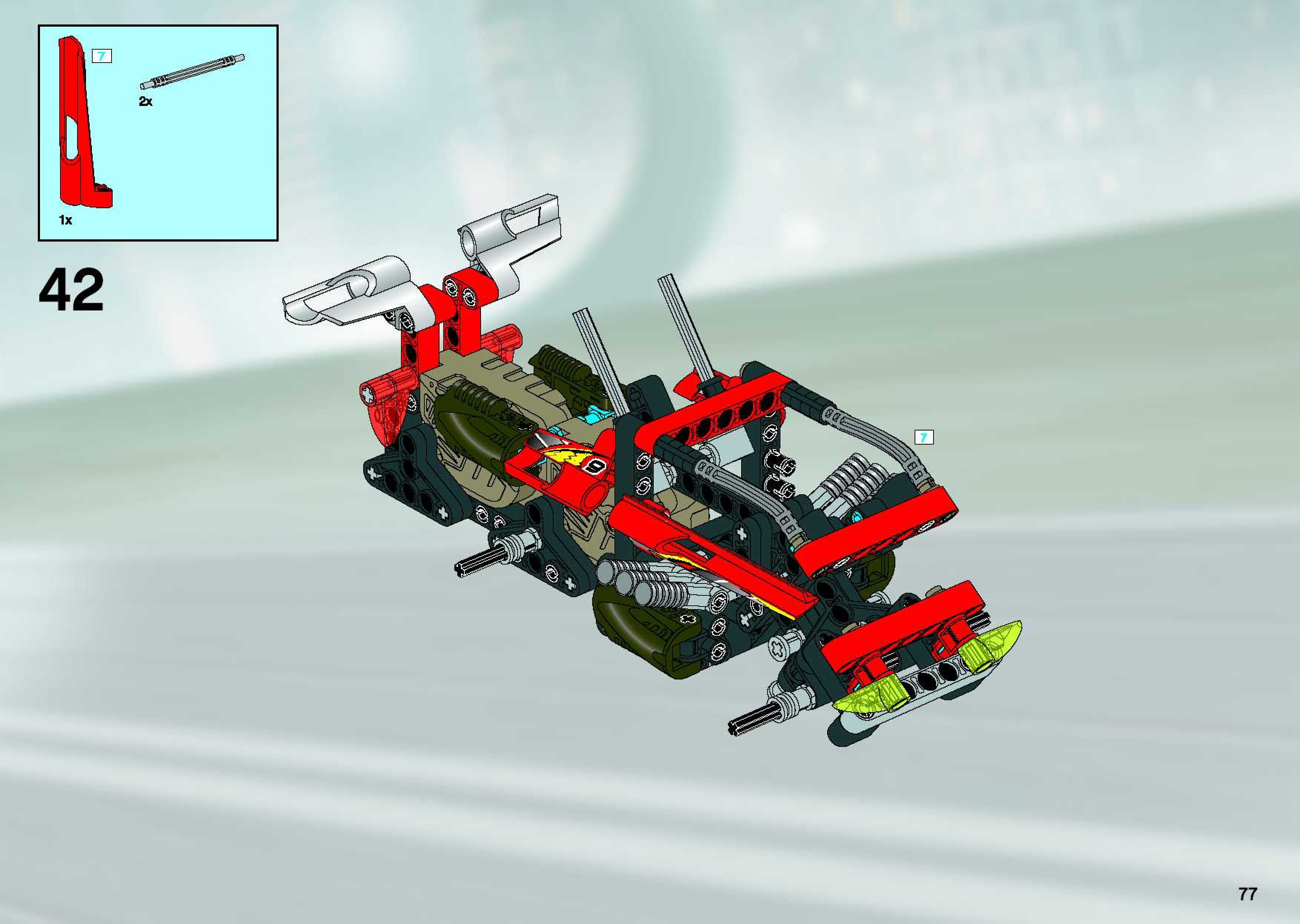 The assembly guide is prepared in a very understandable way for children and adult LEGO enthusiasts. A total of 84 picture galleries are shown, explaining the step-by-step construction stages for 1 different structures.