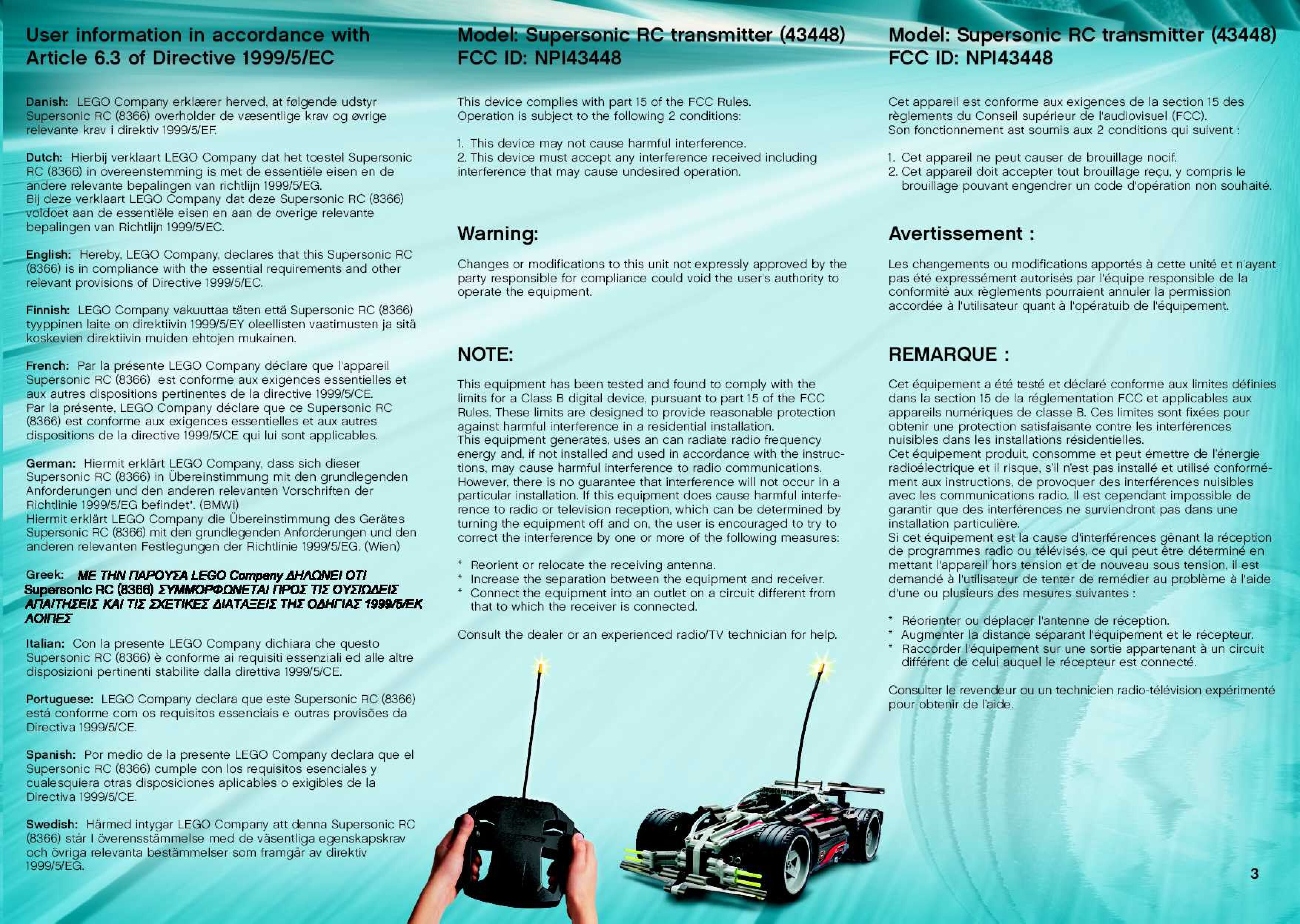 This page shares information about LEGO 8366 Supersonic RC manual, LEGO 8366 PDF instructions, LEGO 8366 Supersonic RC building guide online, How to build 8366 Supersonic RC LEGO.