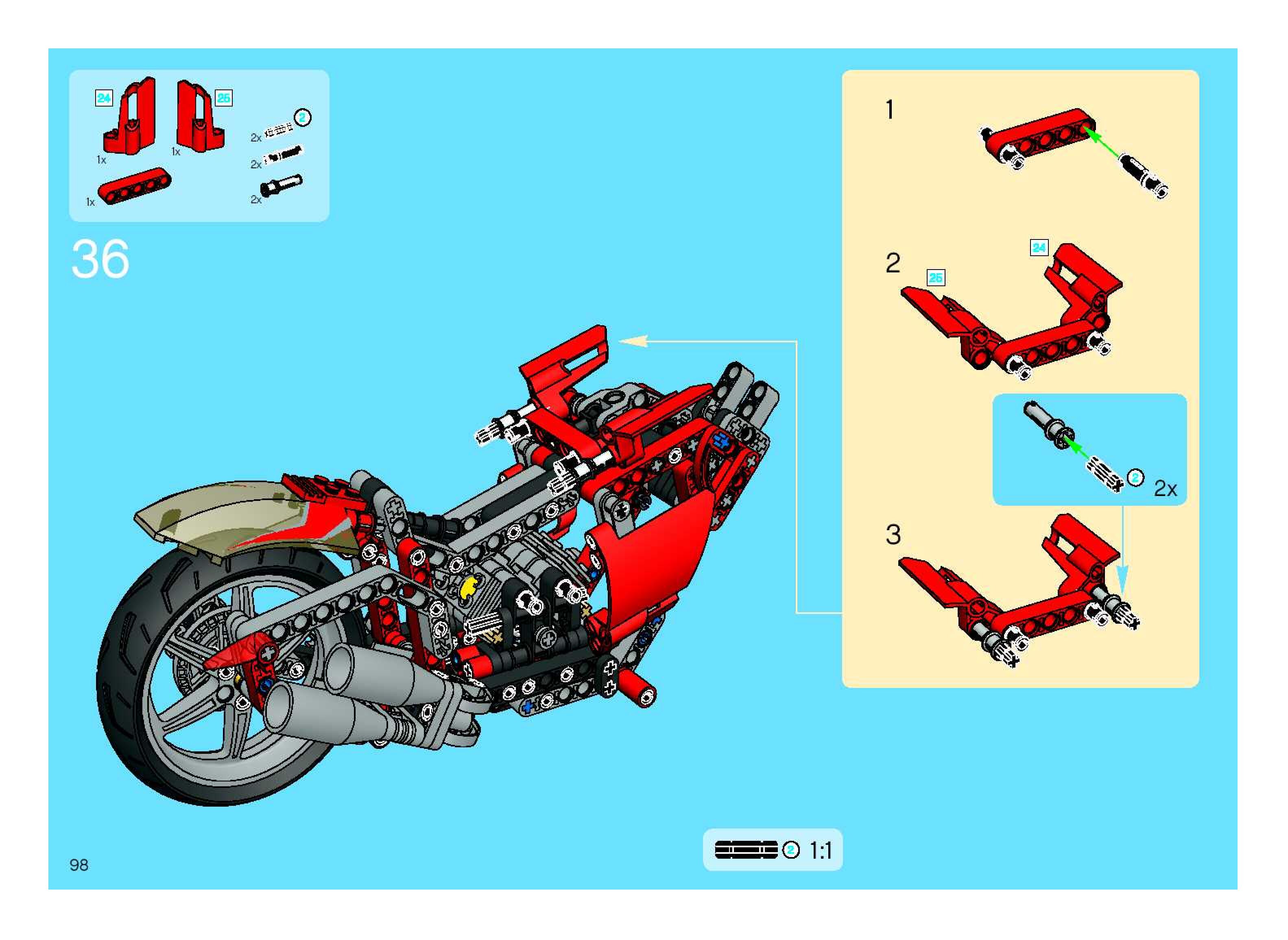 On this page you can find the original construction manual for the LEGO 8420 set. With the assembly manual you can easily learn how to build the 8420 Street Bike step by step. The set was released in 2005.