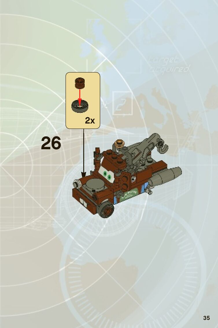 This page shares information about LEGO 8424 Mater’s Spy Zone manual, LEGO 8424 PDF instructions, LEGO 8424 Mater’s Spy Zone building guide online, How to build 8424 Mater’s Spy Zone LEGO.