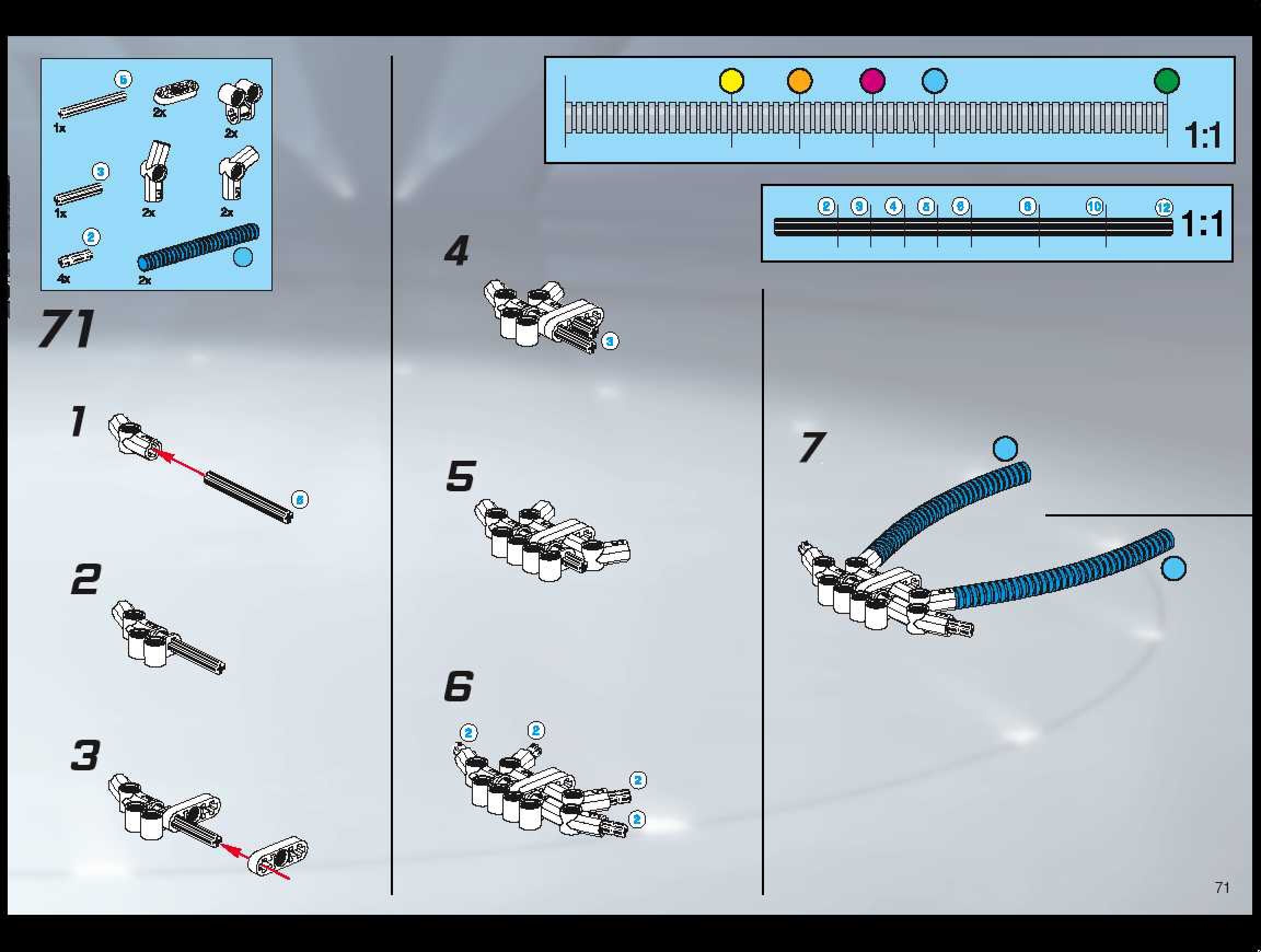 The assembly guide is prepared in a very understandable way for children and adult LEGO enthusiasts. A total of 128 picture galleries are shown, explaining the step-by-step construction stages for 1 different structures.