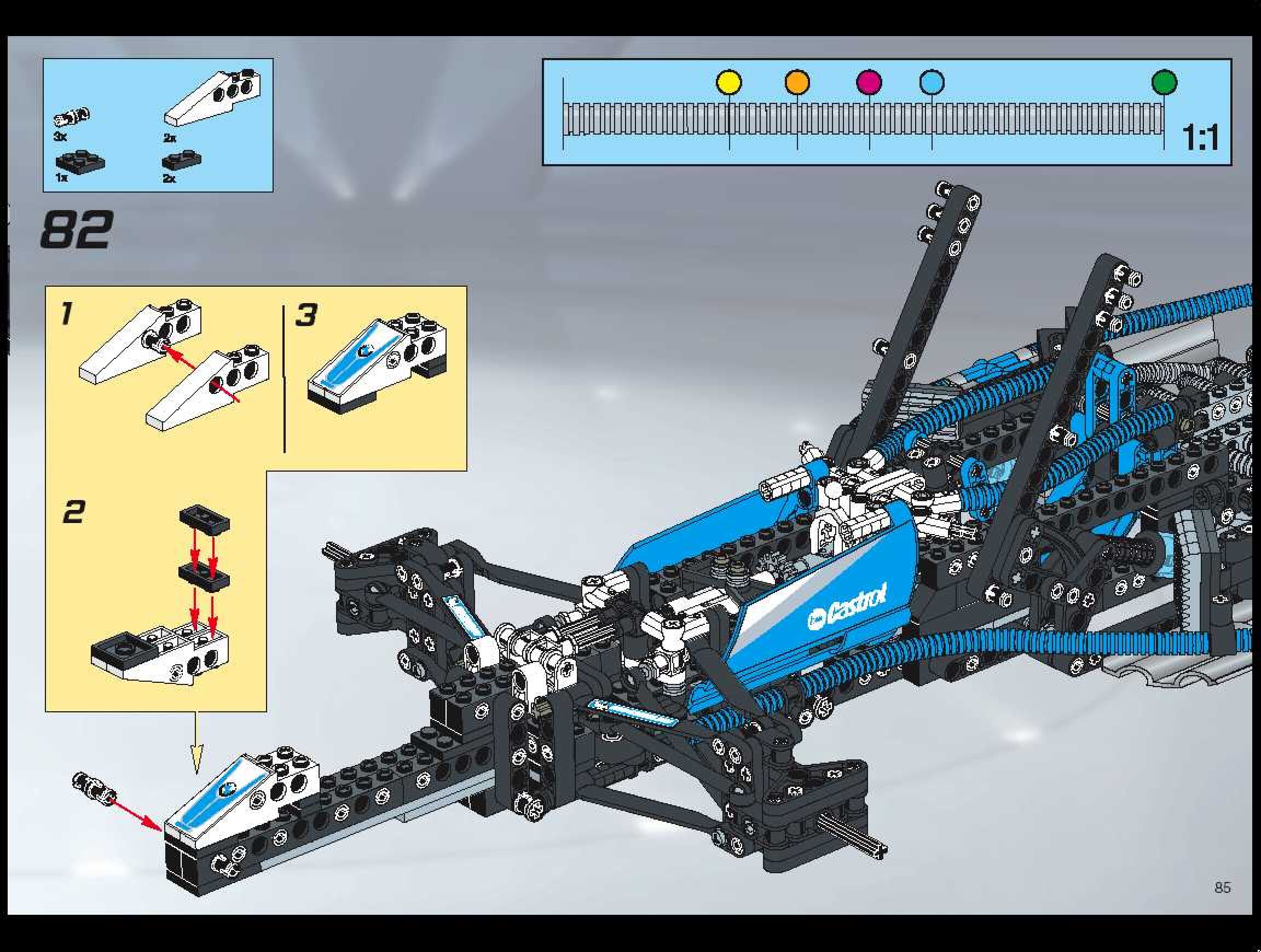On this page you can find the original construction manual for the LEGO 8461 set. With the assembly manual you can easily learn how to build the 8461 WilliamsF1 Team Racer step by step. The set was released in 2002.