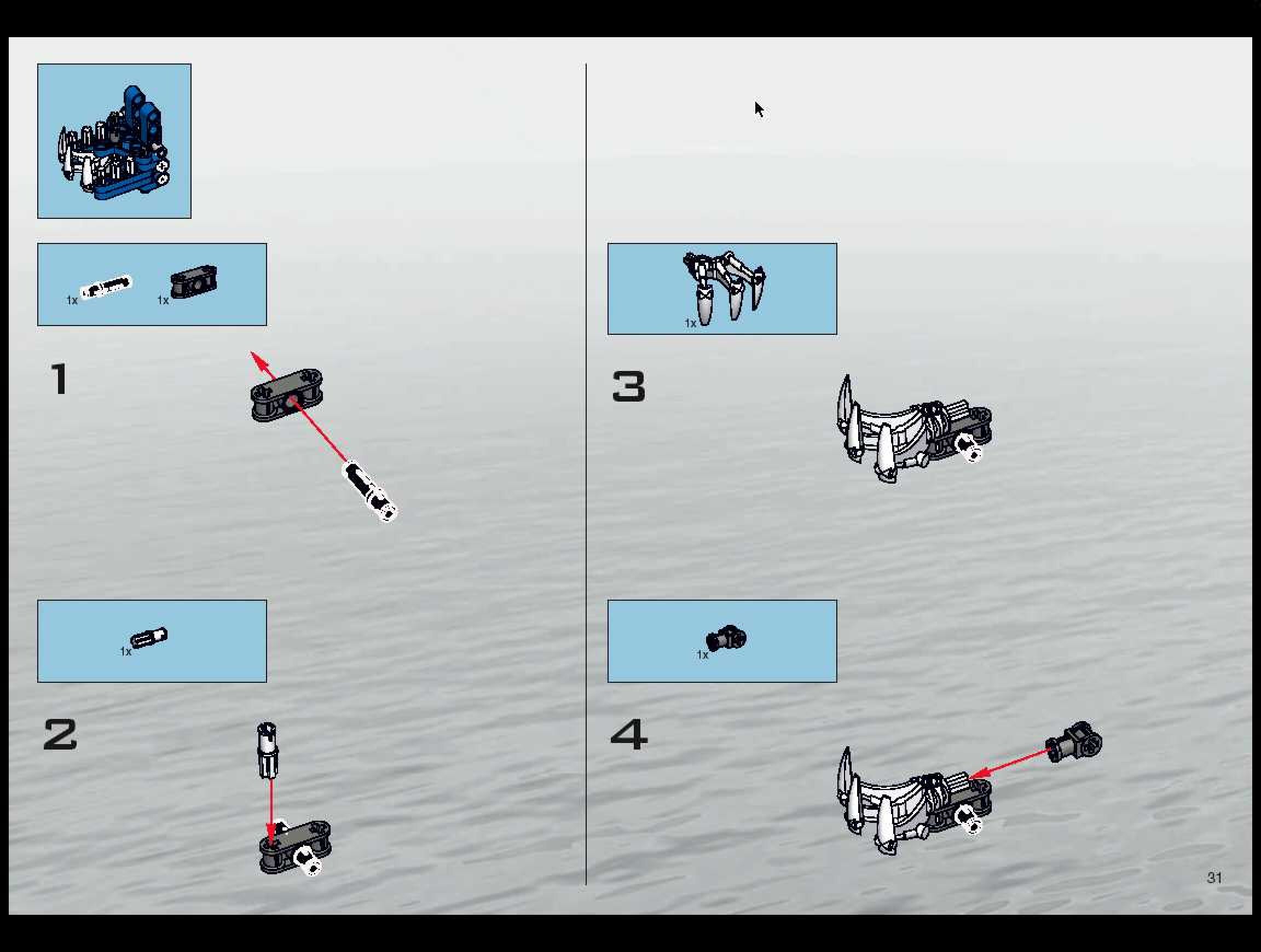The assembly guide is prepared in a very understandable way for children and adult LEGO enthusiasts. A total of 398 picture galleries are shown, explaining the step-by-step construction stages for 2 different structures.