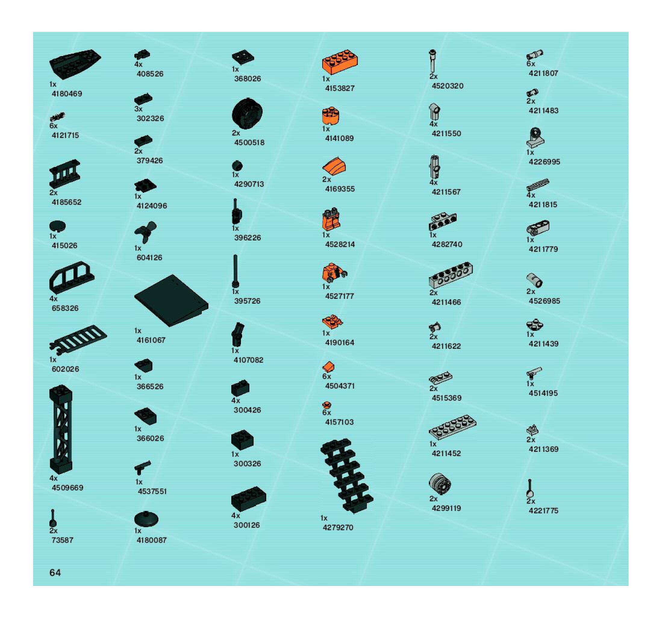 The assembly guide is prepared in a very understandable way for children and adult LEGO enthusiasts. A total of 76 picture galleries are shown, explaining the step-by-step construction stages for 1 different structures.